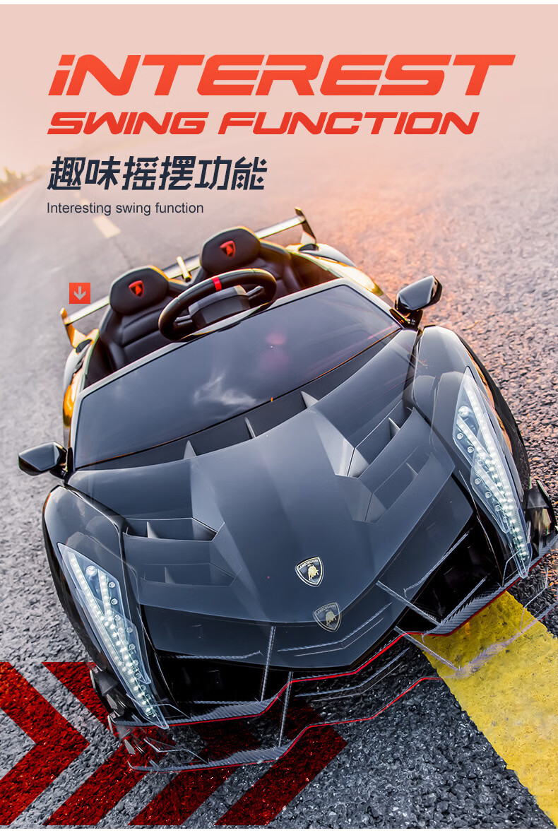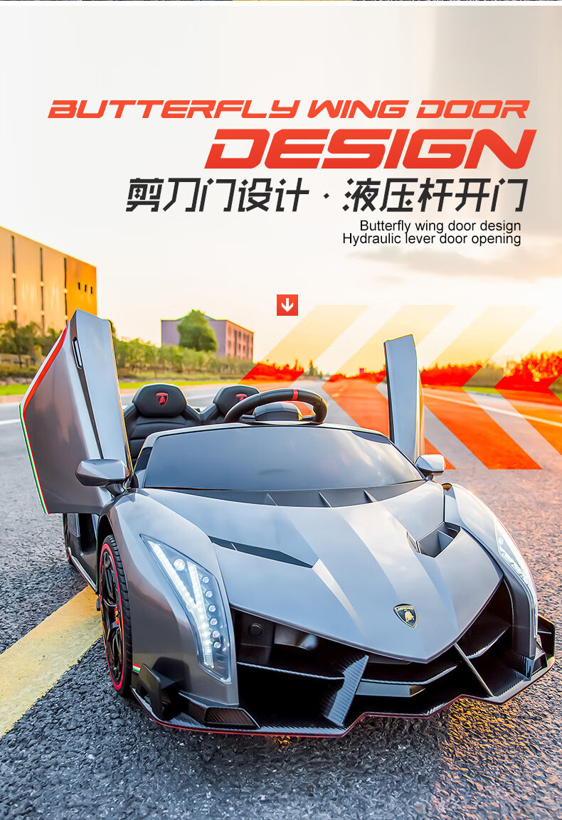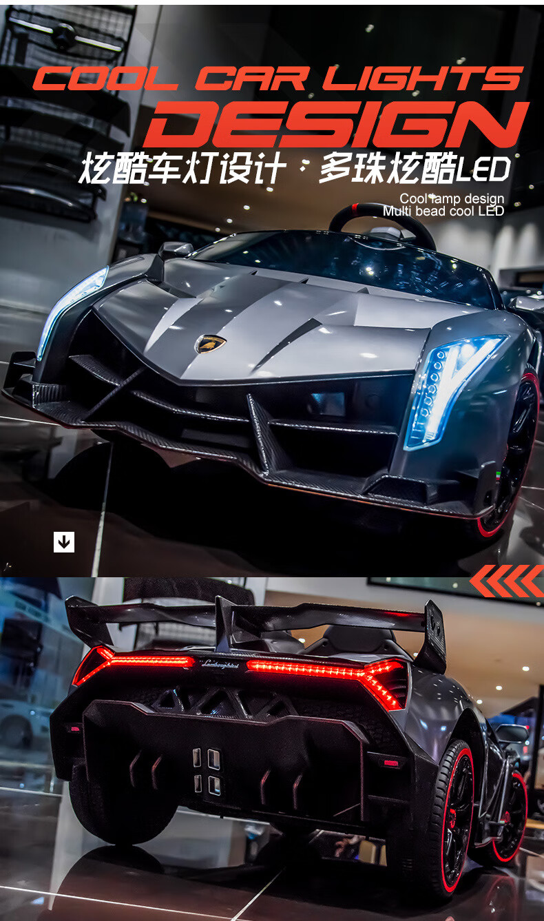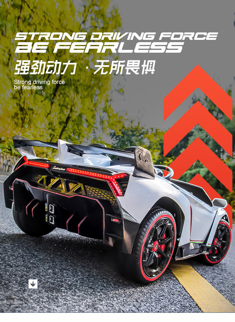 Agulun's new trendy Lambo children's car can be driven by four-wheeled two-seater children's sports car electric remote control toy car polished white MP3 four-wheel drive