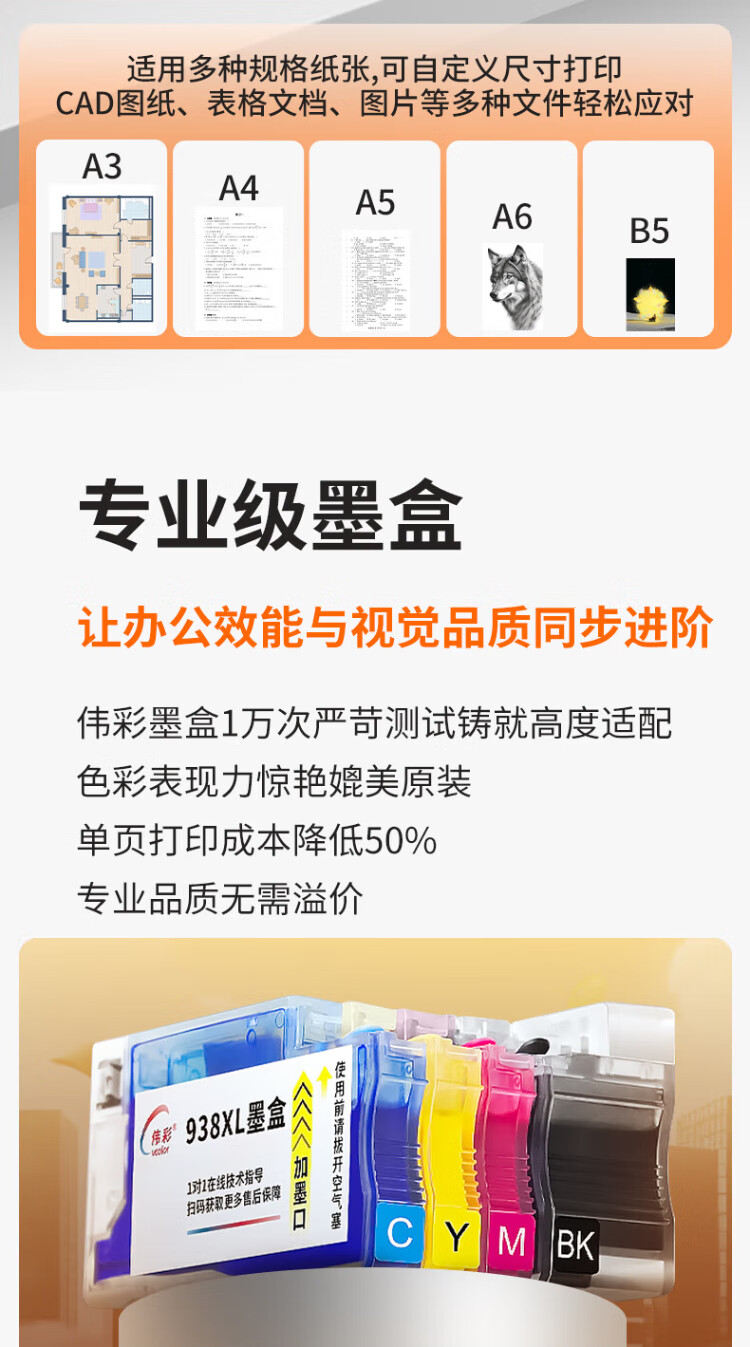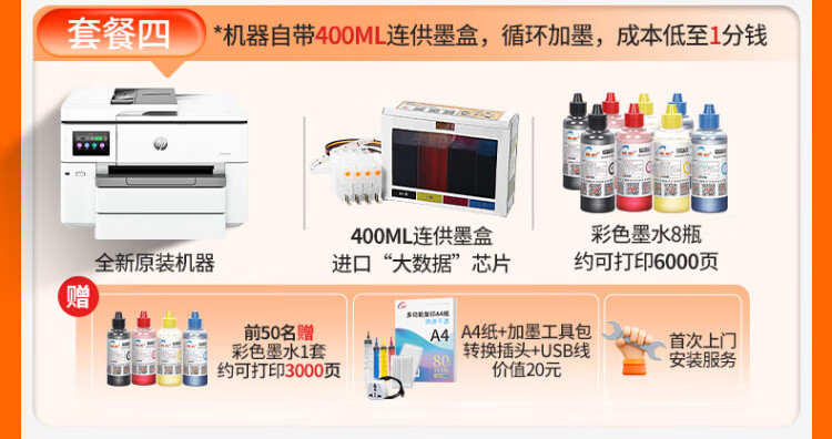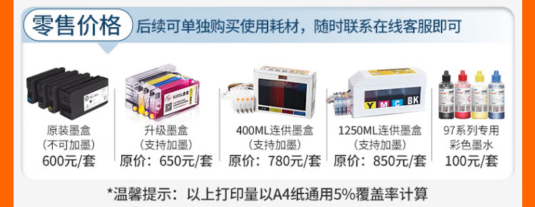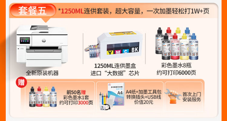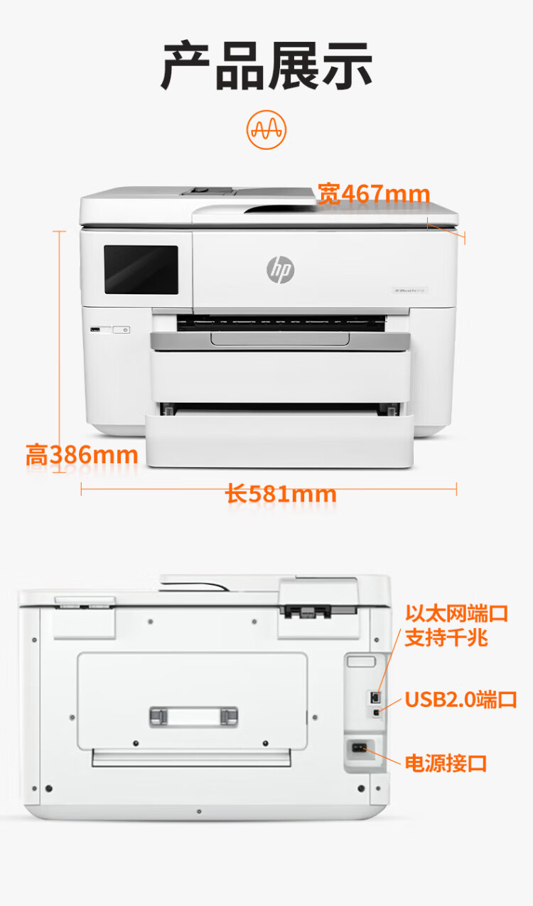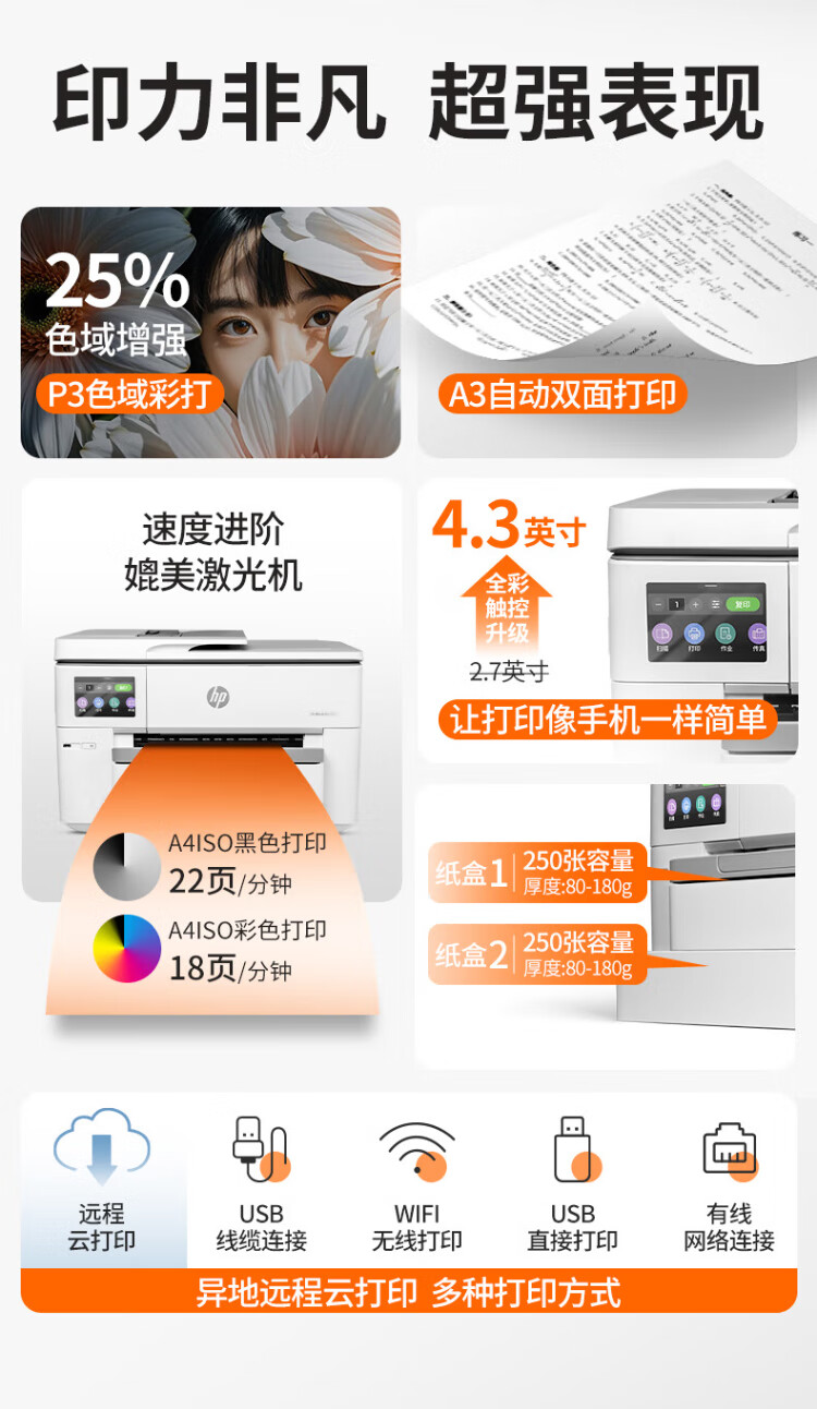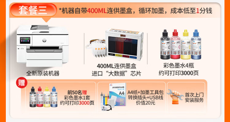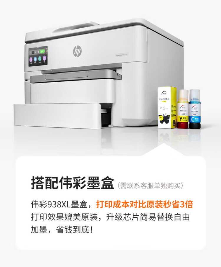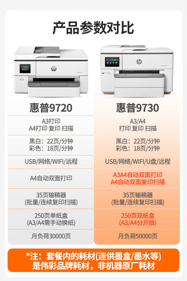 HP (HP) 9730/9720 a3/A4 color printer inkjet office wireless automatic double-sided multi-function machine 9730 A3/A4 printing copy scanning/dual paper box package 1 large capacity ink cartridge 1 set can add ink