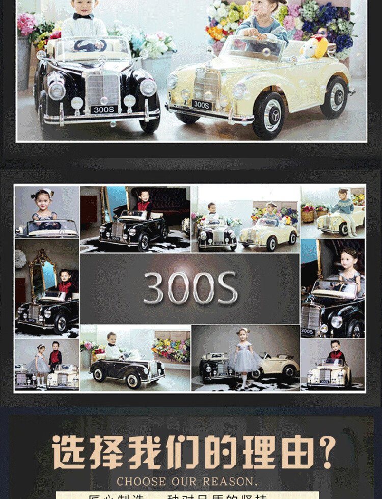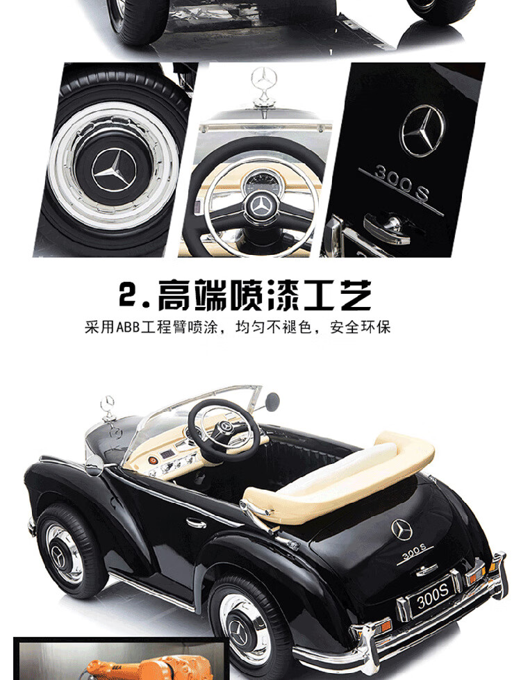 Harley Bella Mercedes-Benz classic car remote control car children's electric car four-wheel walking artifact child baby toy car can sit on ivory rice