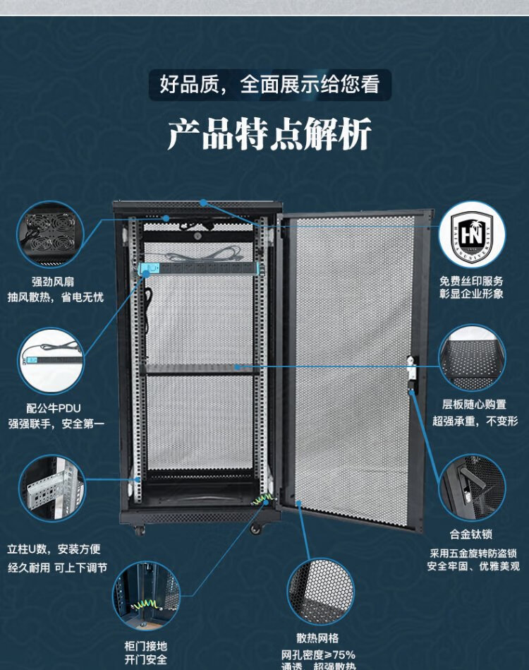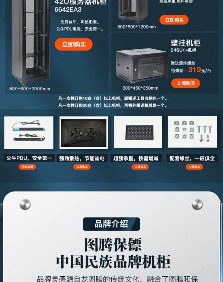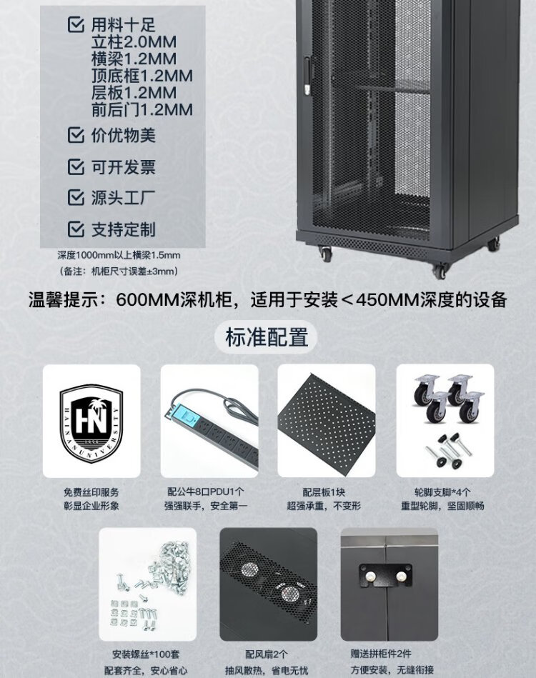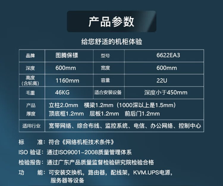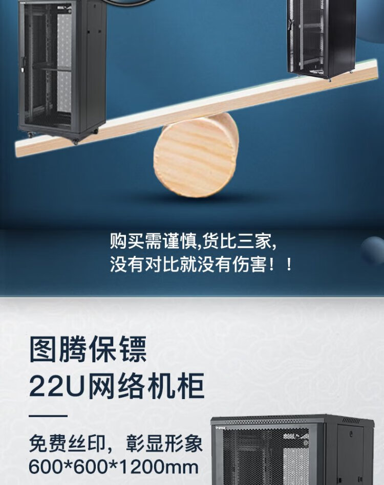 Totem Bodyguard 22U network server cabinet G3.6622.EA thickened steel 19-inch government and enterprise projects send Bull 8-port PDU free silk screen G3.6822 (600 width * 800 depth) 1.2 meters 24U
