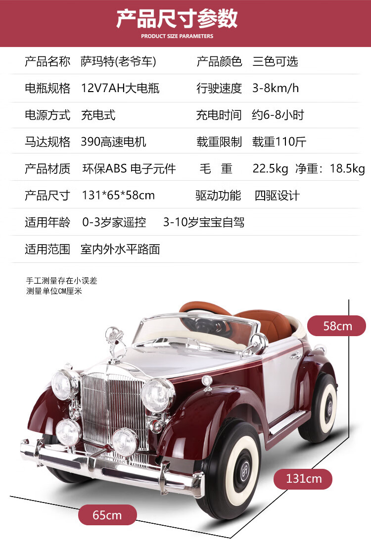 Samat remote control car children's electric car four-wheeled Rolls-Royce classic car for boys and girls rocking toy car can sit on white