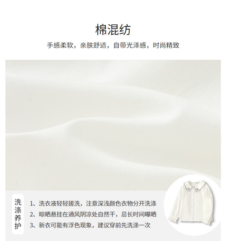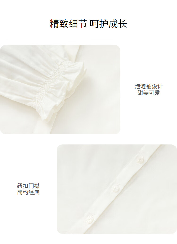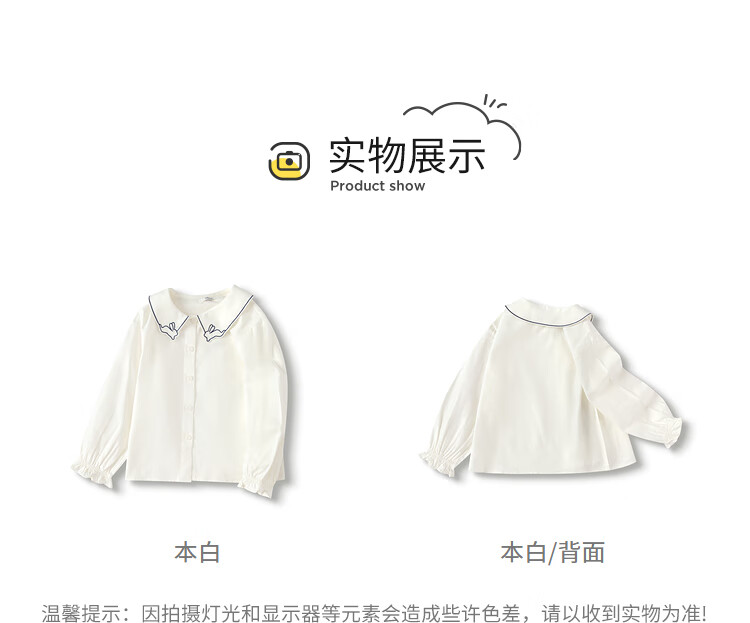 Balabala Children's Long Sleeve Shirt White Shirt Girls Clothing Autumn Cute Embroidered Lapel Top Fashionable and Versatile White 10101 100cm