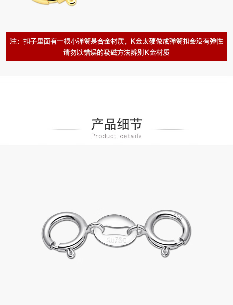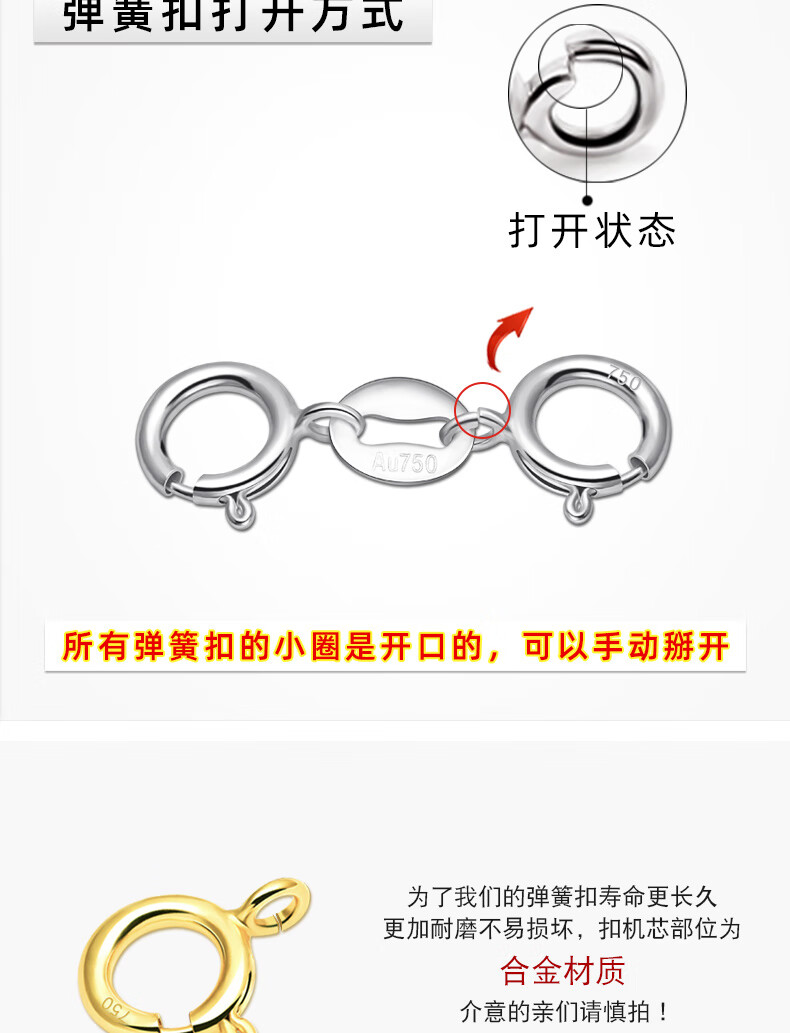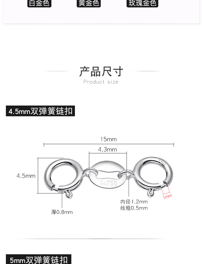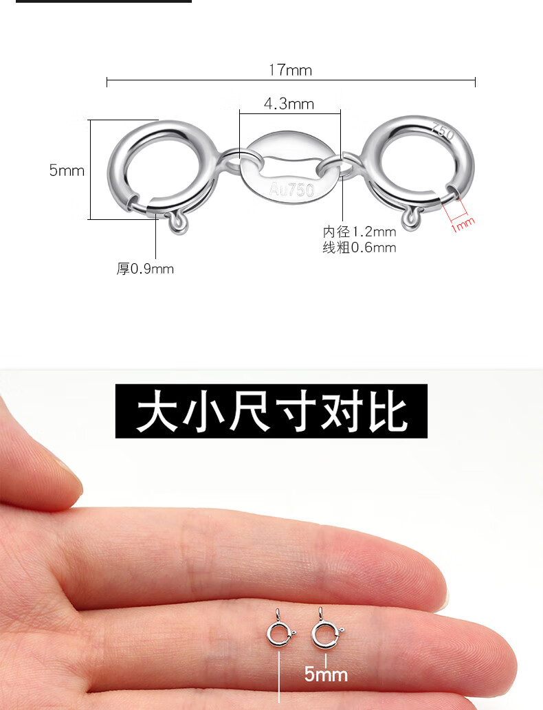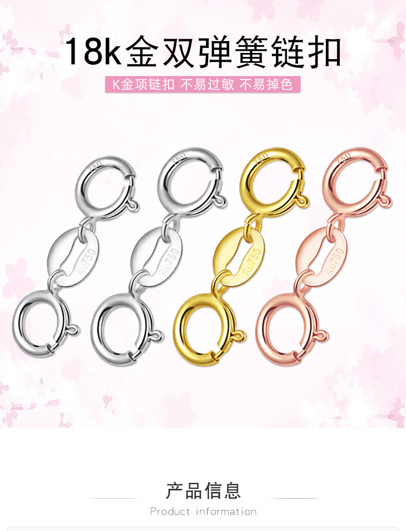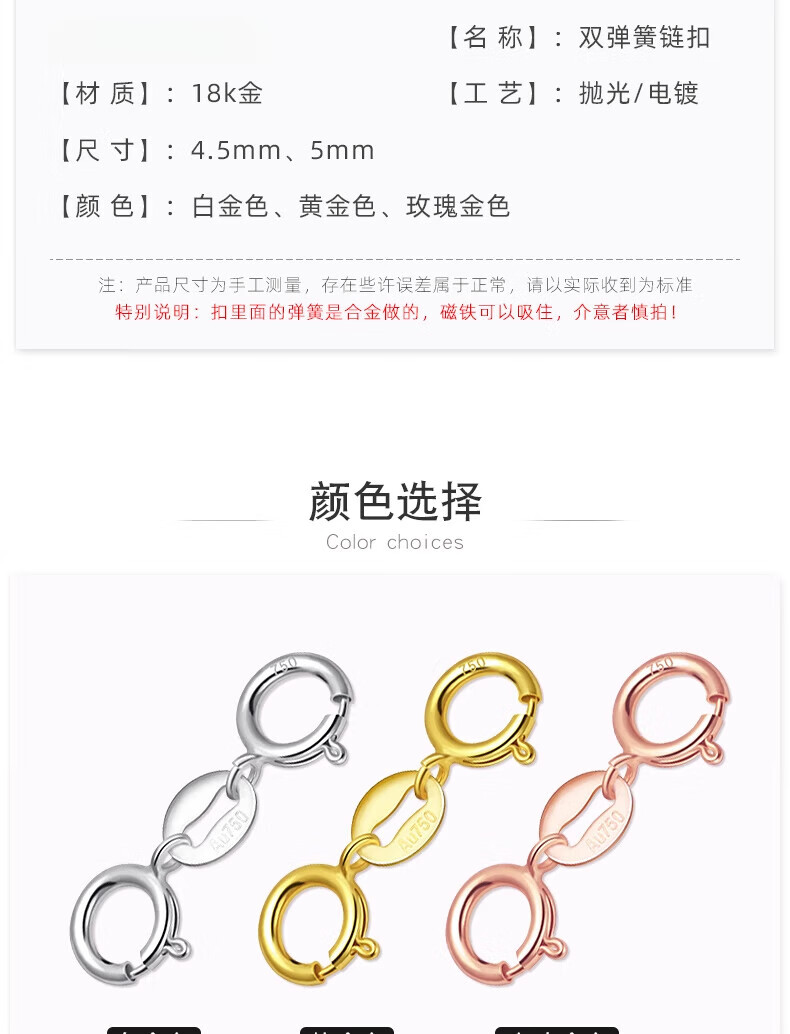 Fat Donglai same style platinum necklace buckle 18K gold double-ended buckle bracelet head buckle connector jewelry buckle 4.5mm double spring buckle (white gold)