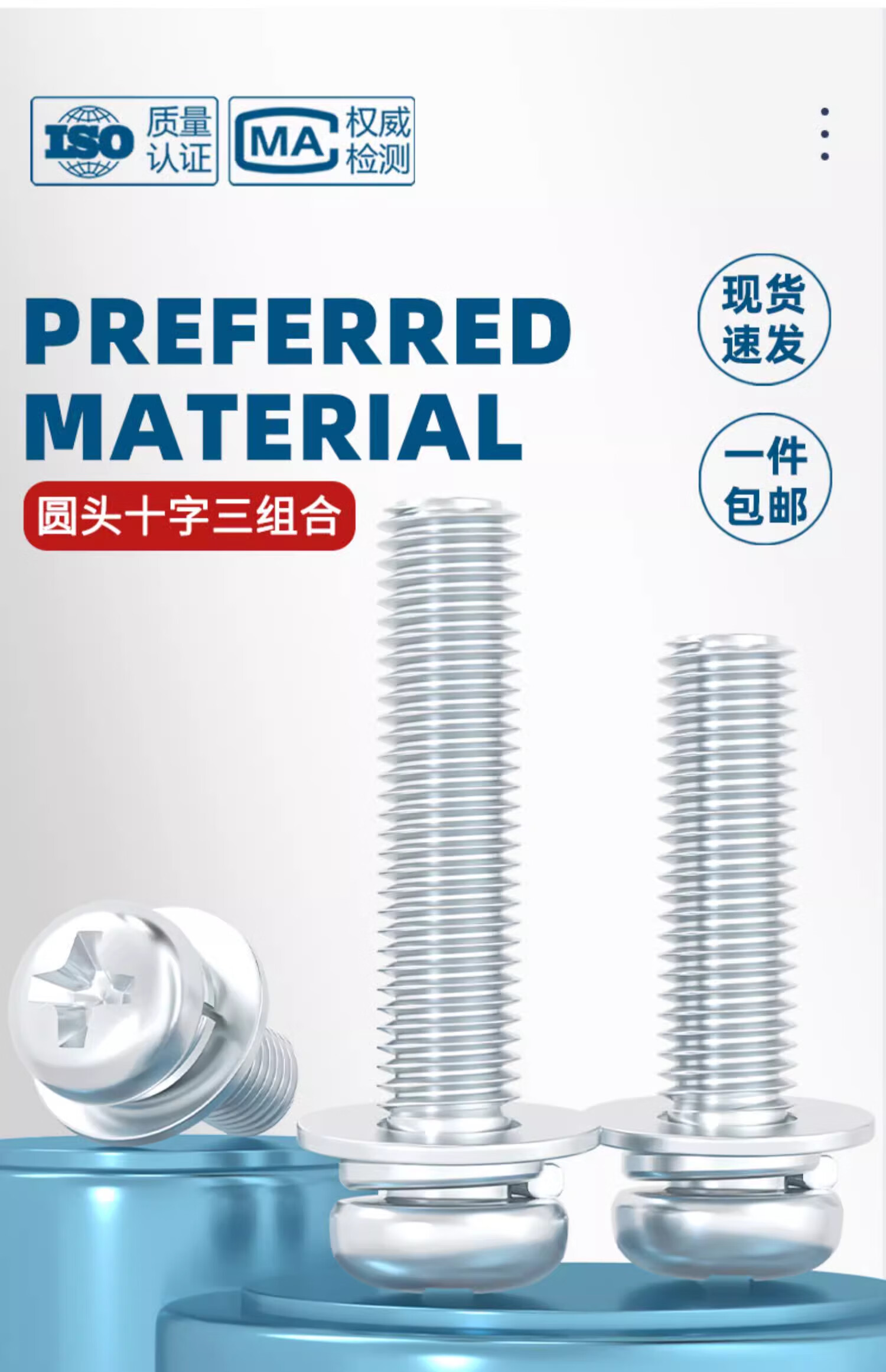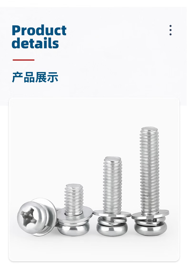 Tianzhuo Hardware galvanized round head cross three combination screw pan head with flat elastic washer combination screw M2M2.5M3M4M5M6mm M5*8 50 pieces