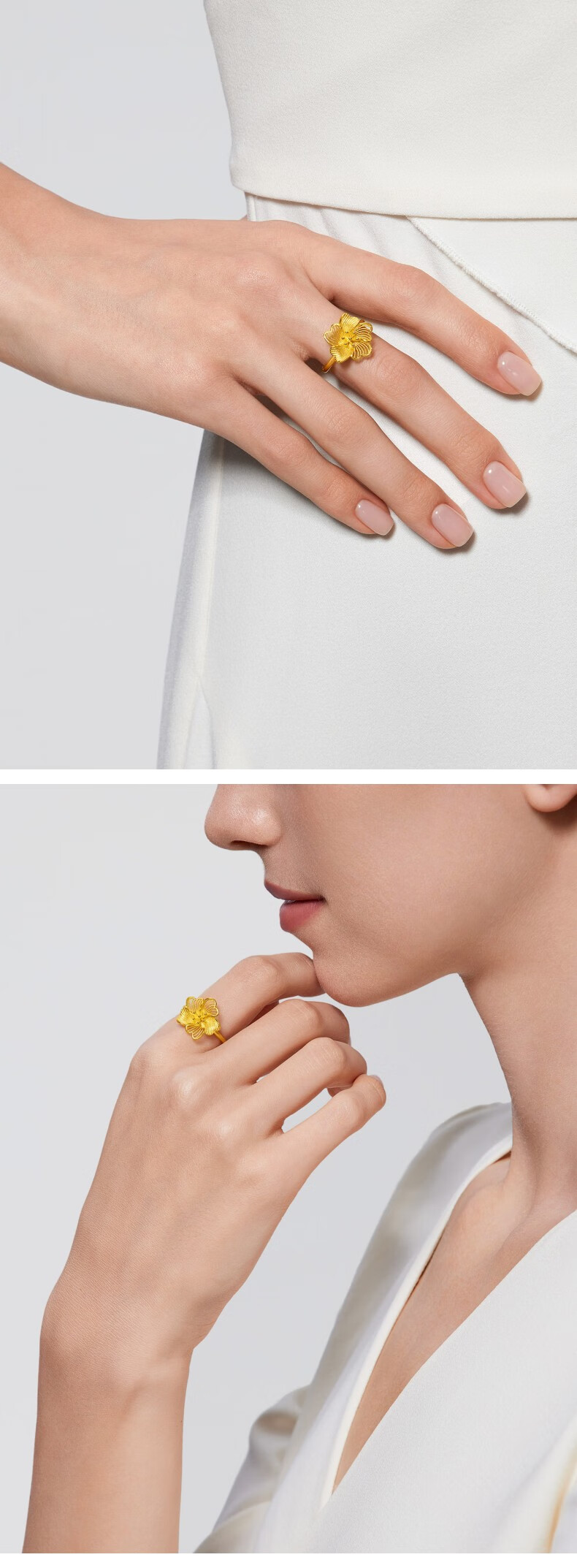 Chow Sang Sang's human fairy flower gold living mouth ring pure gold living flower stamen ring 95305R pricing