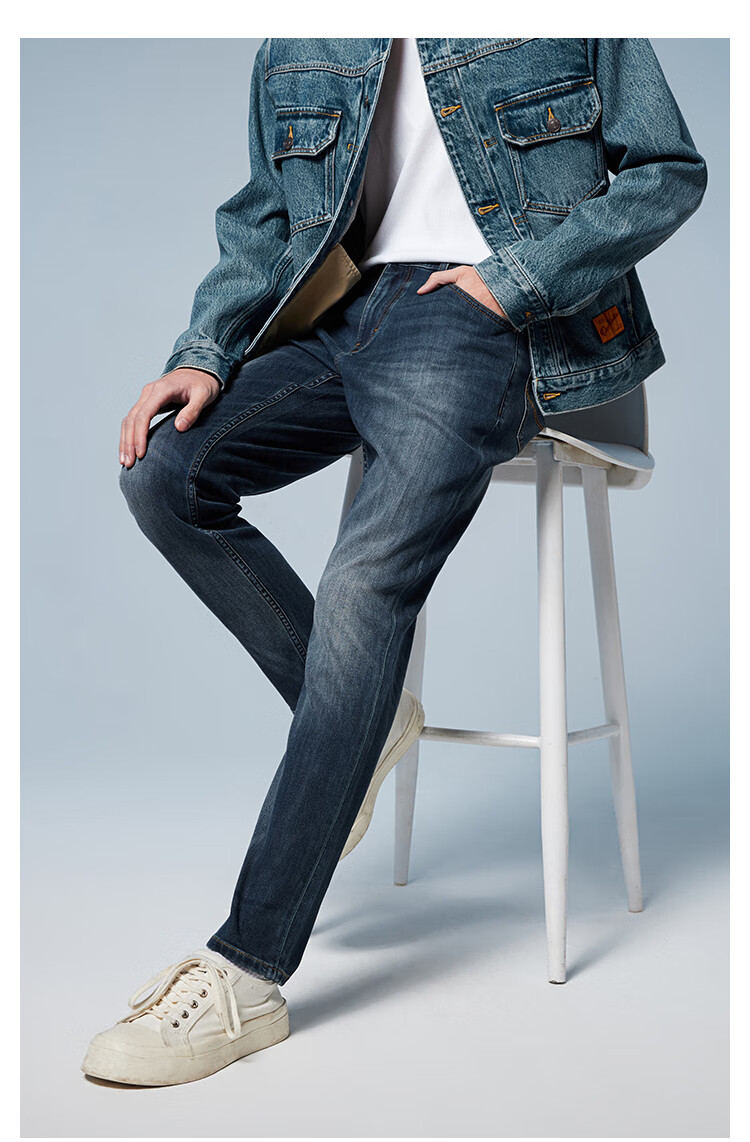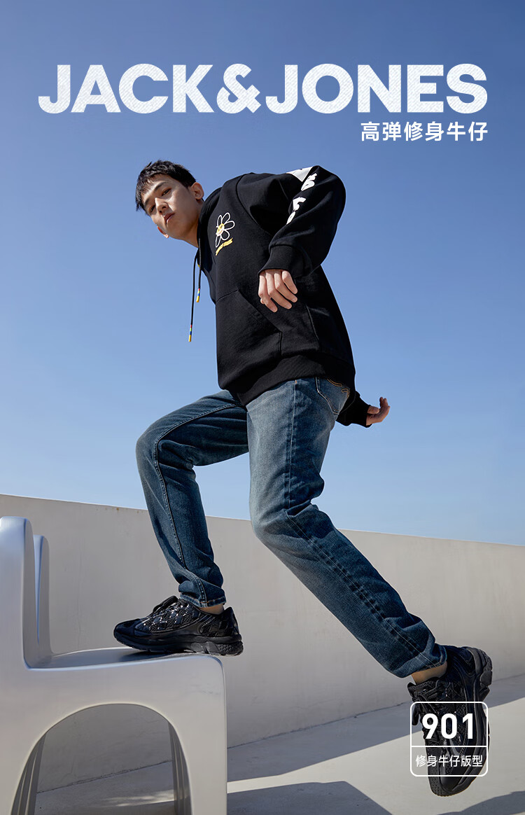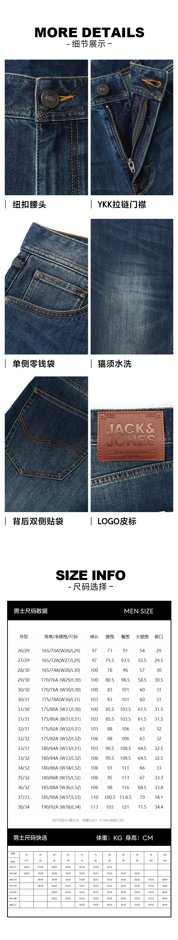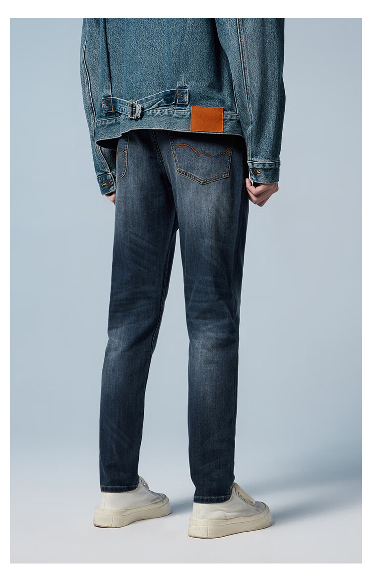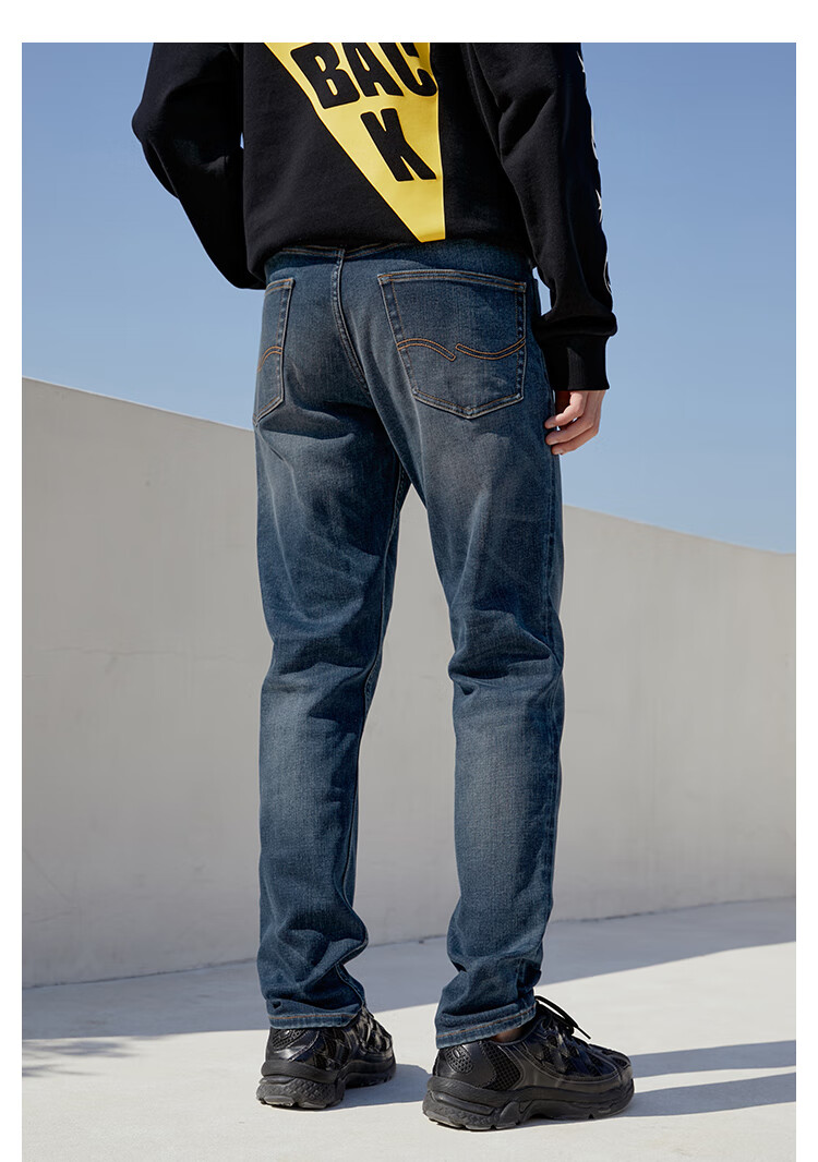 JACK&JONES 25 years of men's fashion trend slim straight elastic casual versatile dark jeans long pants men's trousers for all seasons dark denim blue 120 first batch 31 175/80A (W31/L30) pre-sale