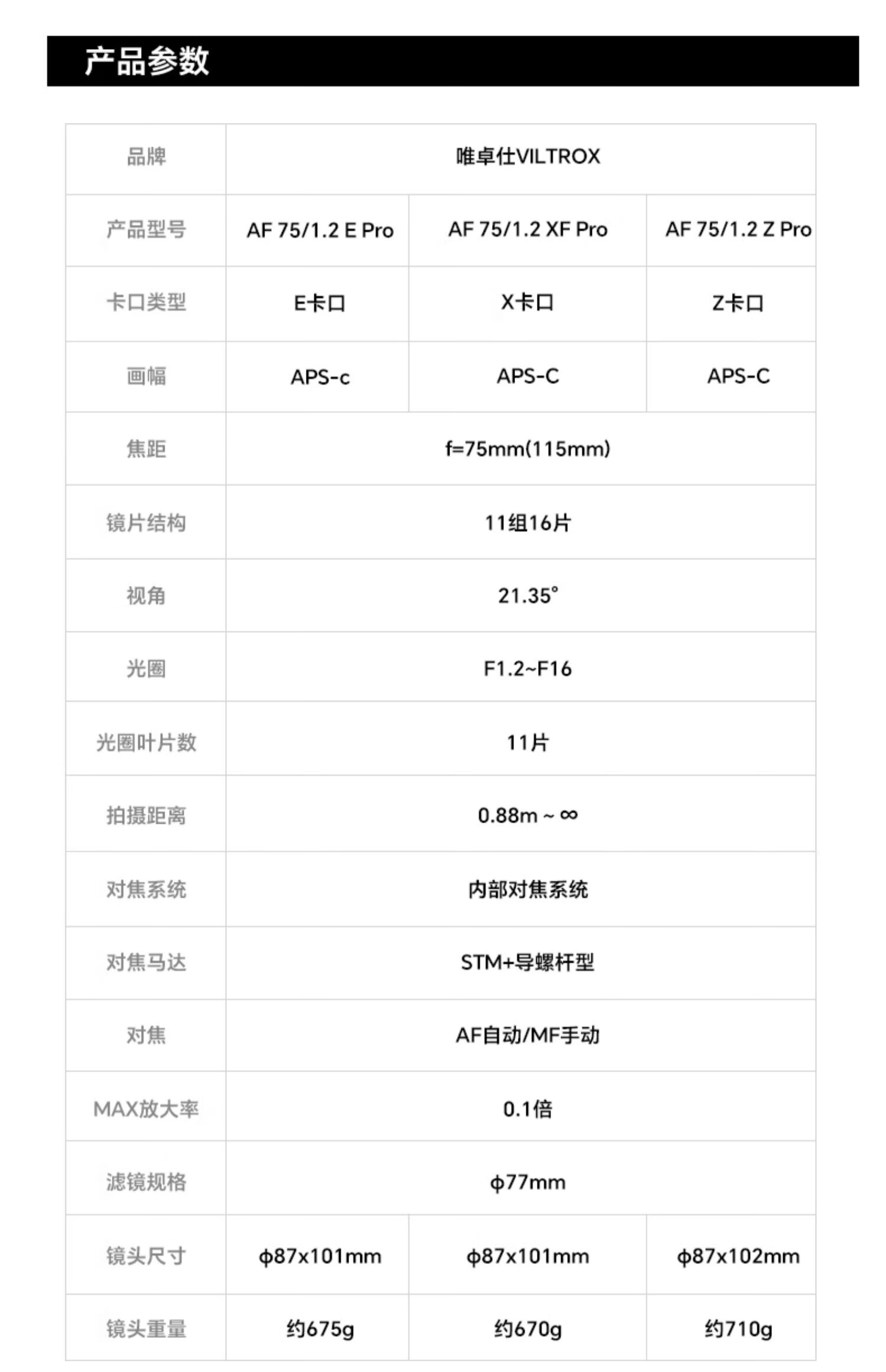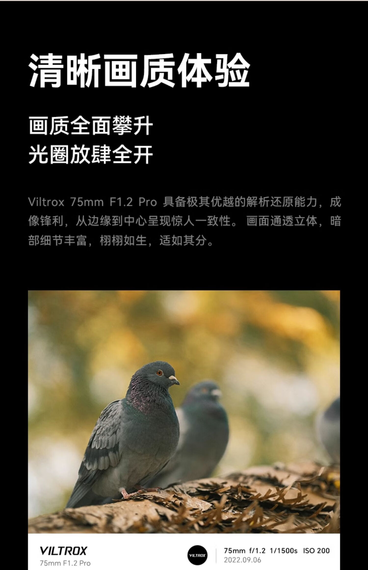 VILTROX 75mm f1.2 Pro fixed focus lens XF/Z/E mount mirrorless camera lens autofocus VILTROX large aperture portrait lens 75 1.2 imaging store Fuji X mount
