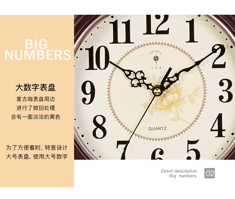 Polaris Classical European-style Table Clock Living Room Home Retro Creative Wall Clock Study Silent Stand-Hanging Dual-Purpose Clock 72214-Kamu Luminous Style (Dual-Purpose Stand-hanging)