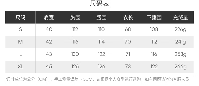China (cm) 165 / 88-90 170 / 96-98 175 / 108-110 180 / 118-122 185 / 126-130