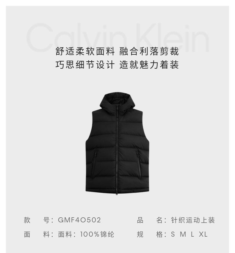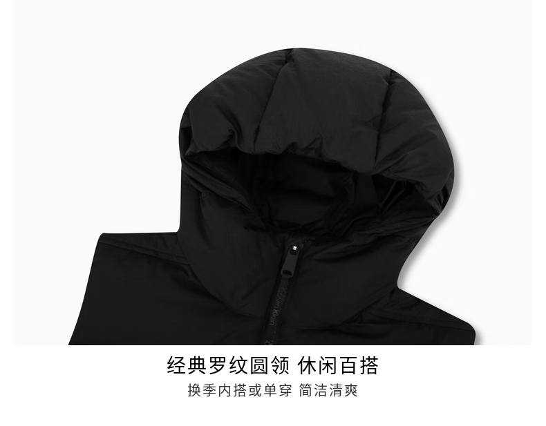 Calvin Klein sports outdoor waterproof autumn and winter men's simple ck embroidered duck down quilted hooded down vest jacket BAE-space black L