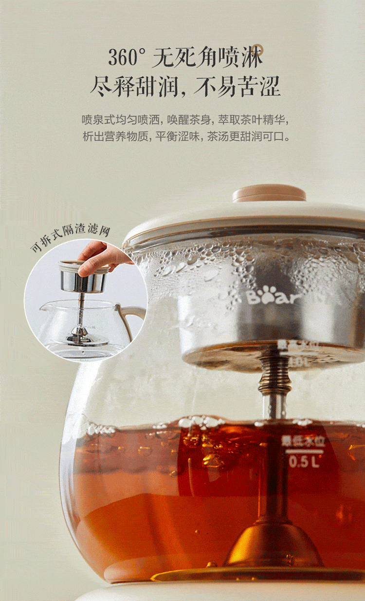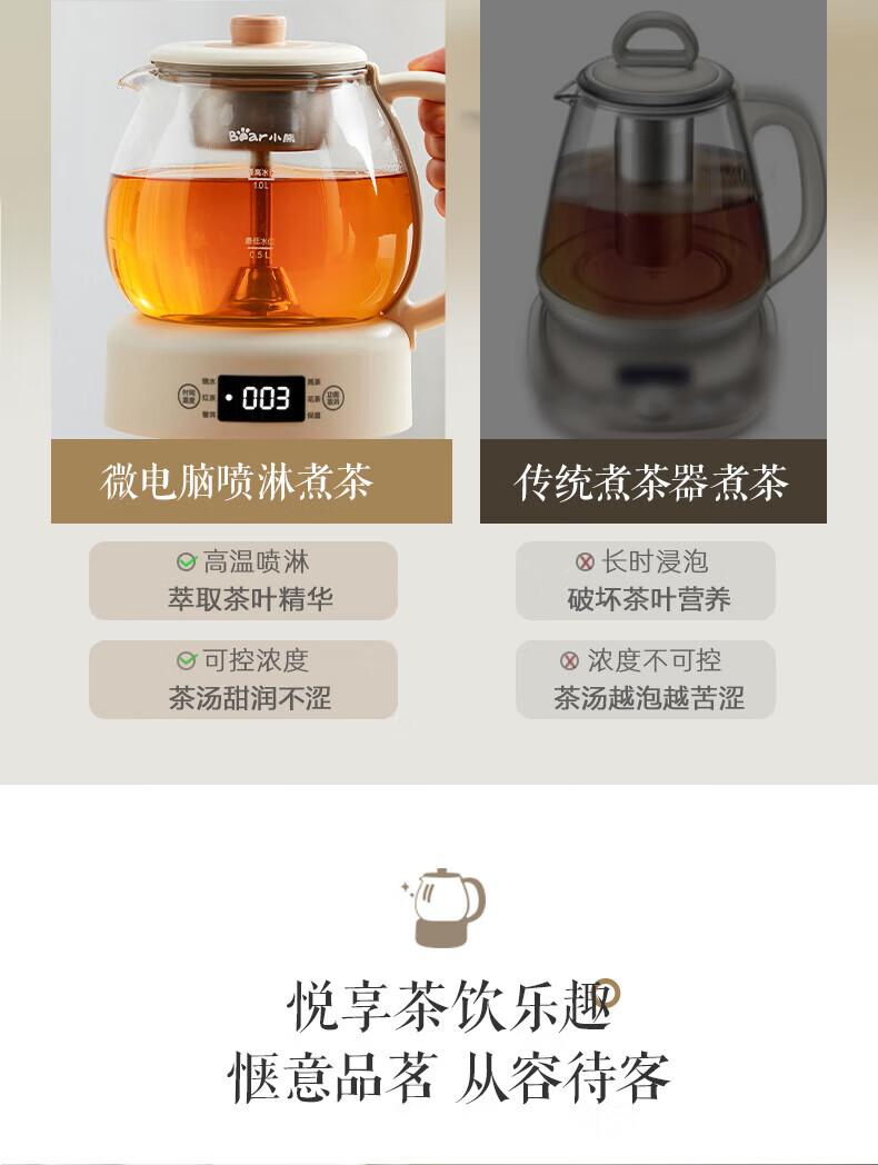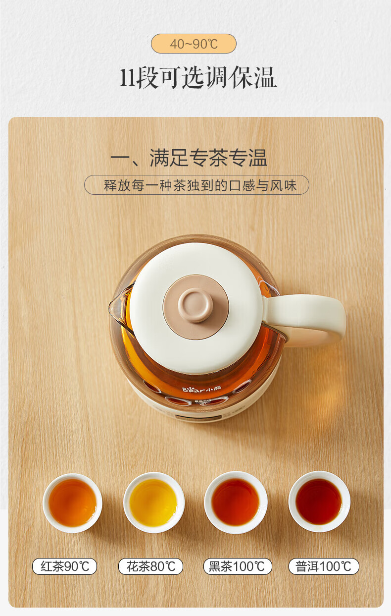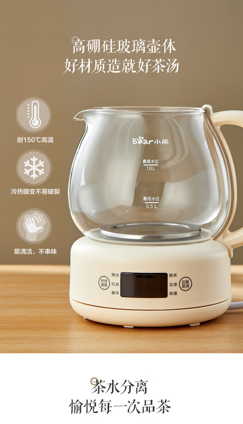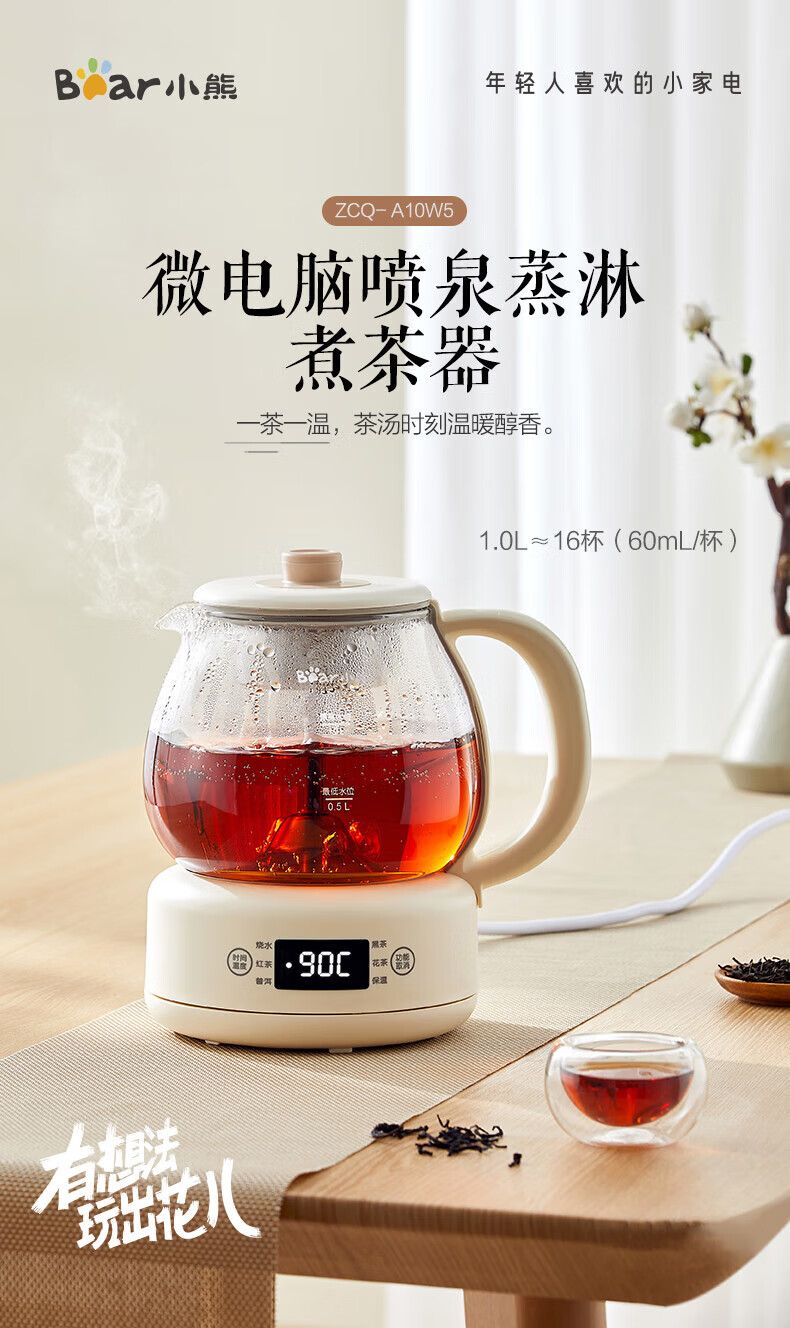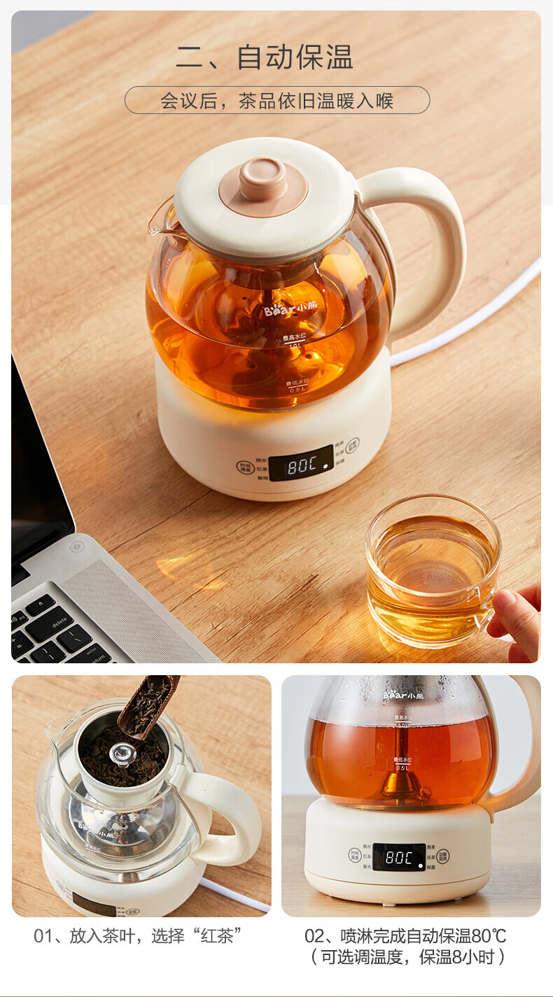 Bear Tea Maker, Tea Maker, Flower Teapot, Health Pot, Mini Constant Temperature Electric Kettle, Kettle, Tea Steamer, Spray Type Stainless Steel 1L Black Tea Set ZCQ-A10W5 Basic Microcomputer 1L