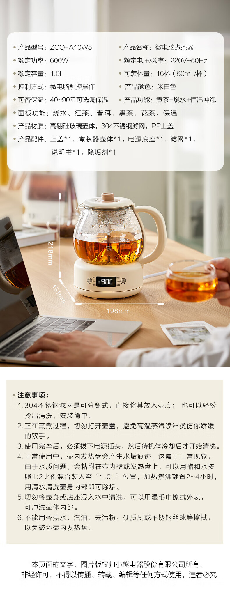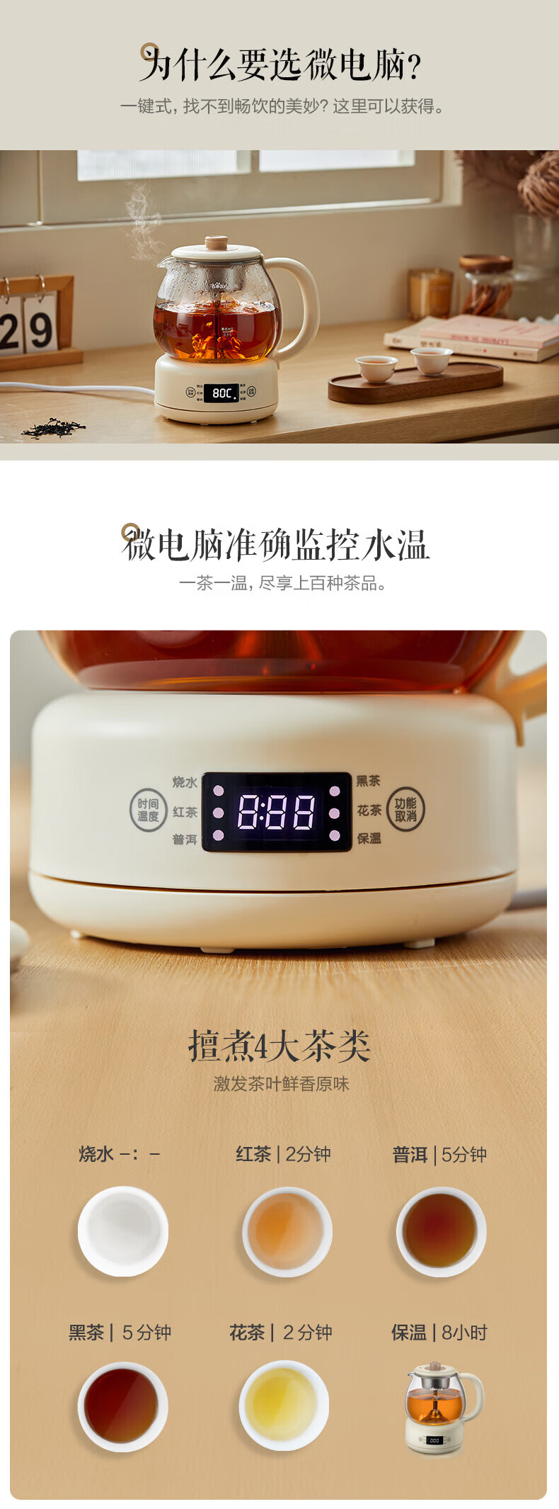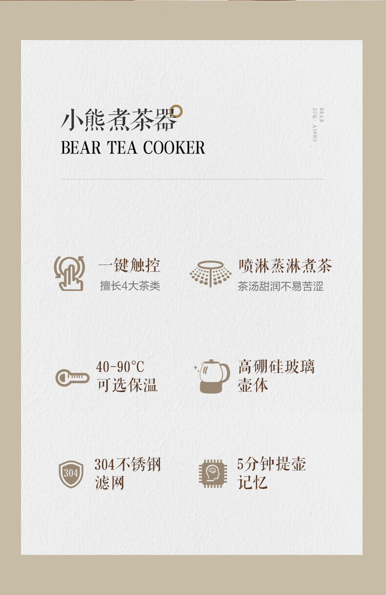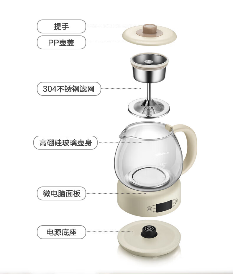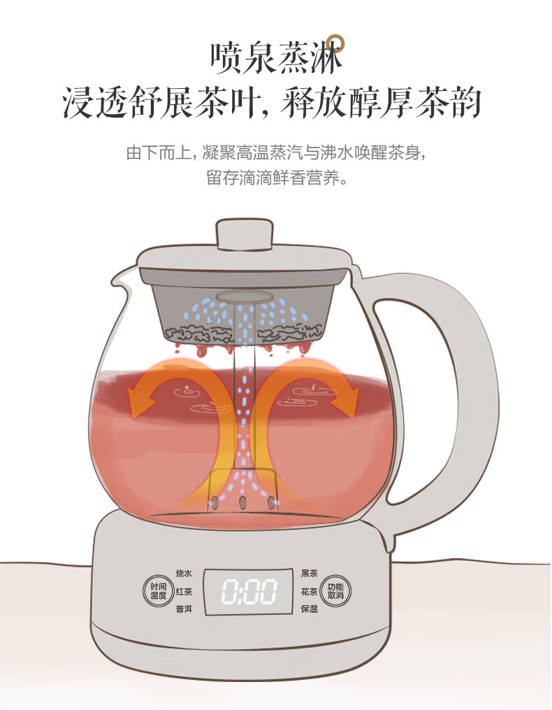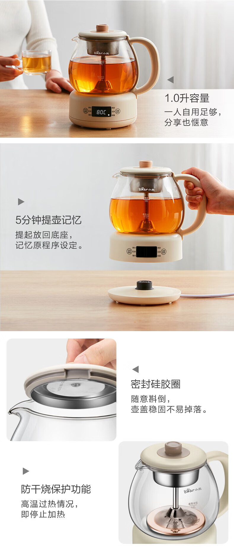 Bear Tea Maker, Tea Maker, Flower Teapot, Health Pot, Mini Constant Temperature Electric Kettle, Kettle, Tea Steamer, Spray Type Stainless Steel 1L Black Tea Set ZCQ-A10W5 Basic Microcomputer 1L