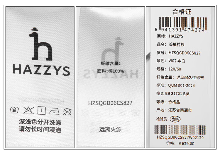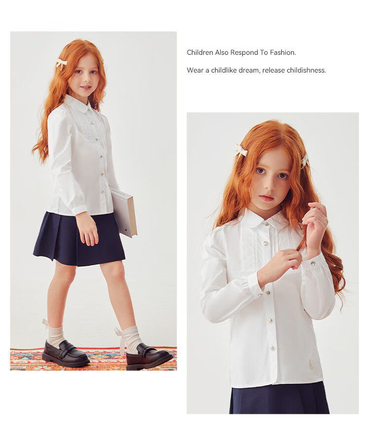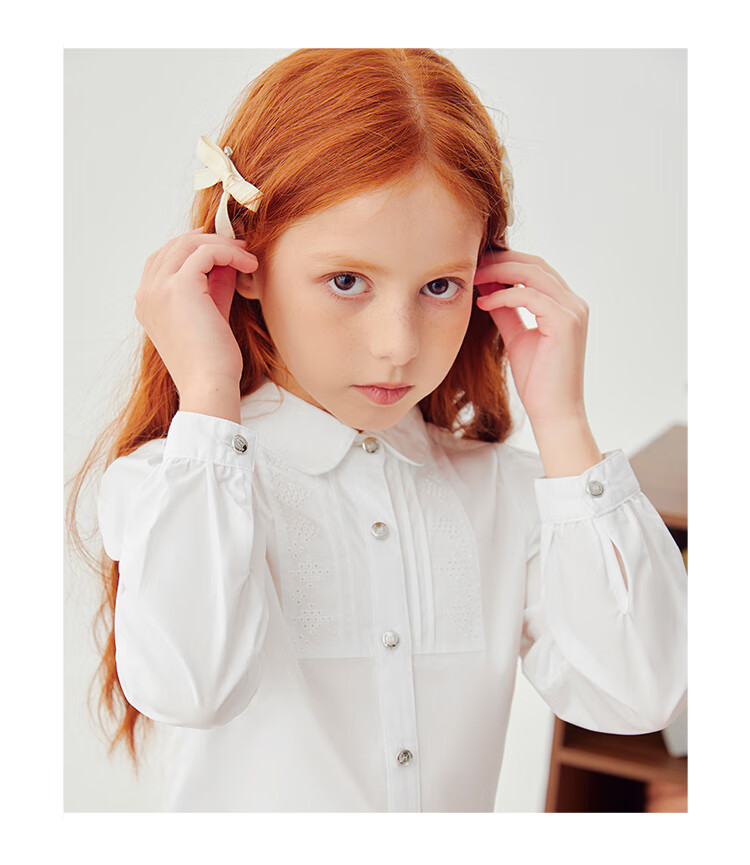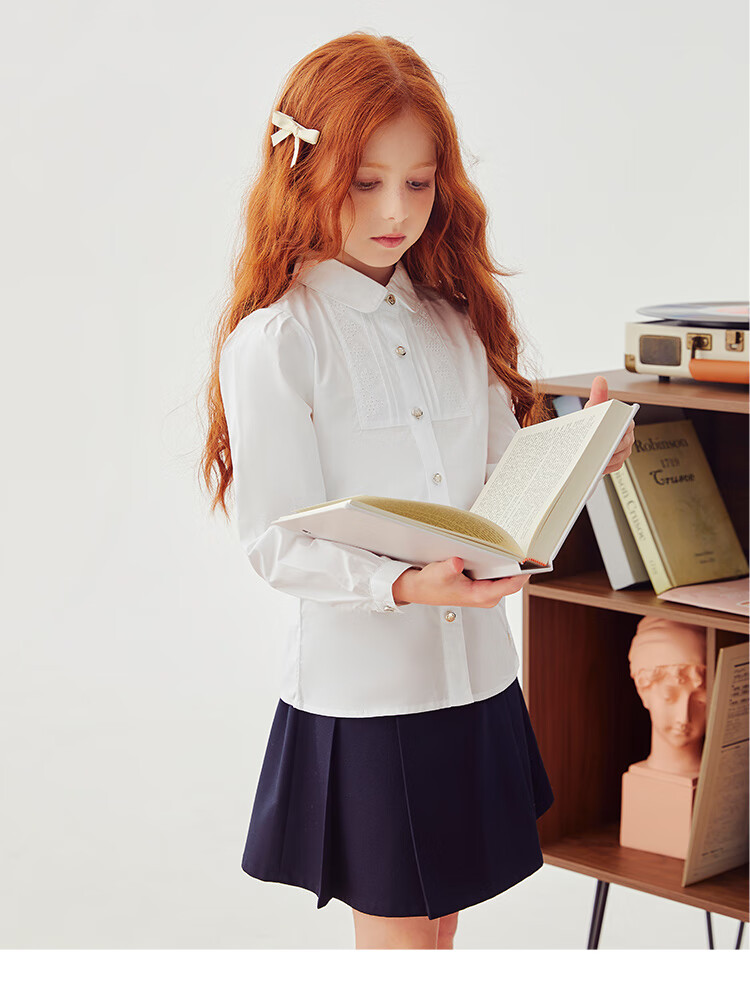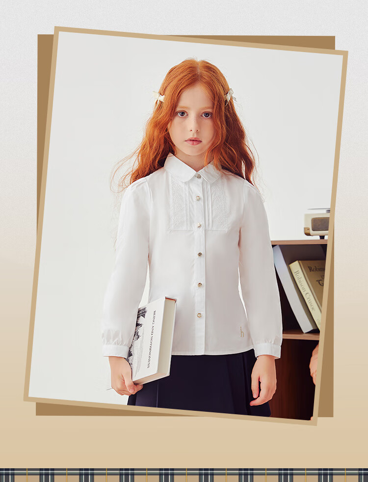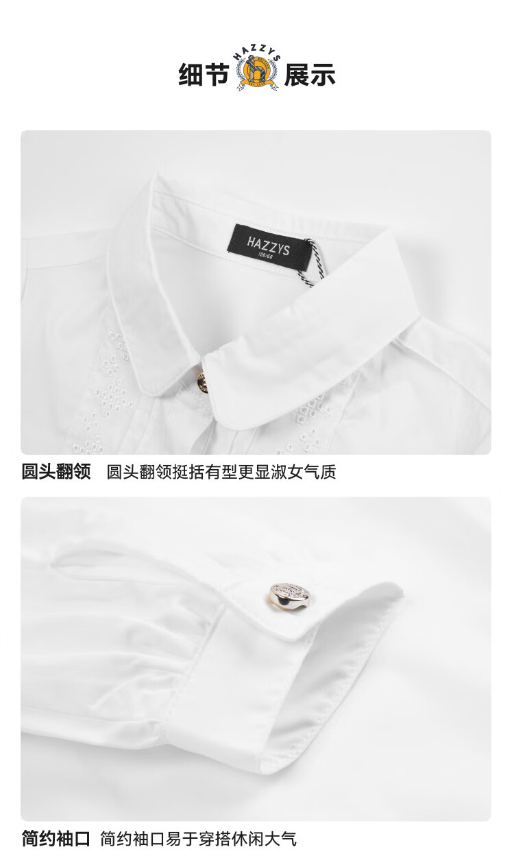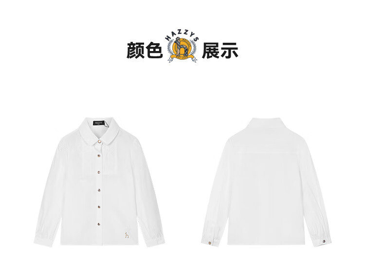 HAZZYS brand children's clothing girls' shirt autumn new style comfortable, soft and thin lapel simple casual long-sleeved shirt white 105cm