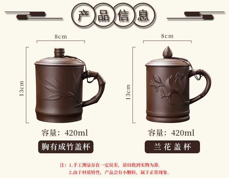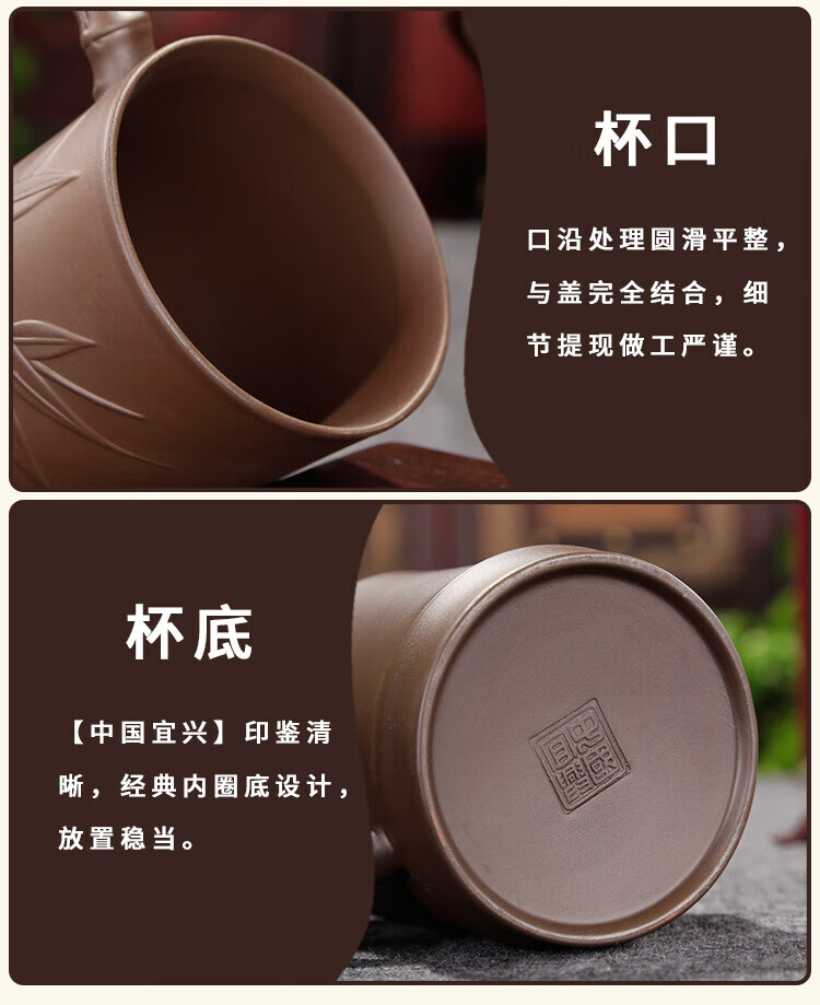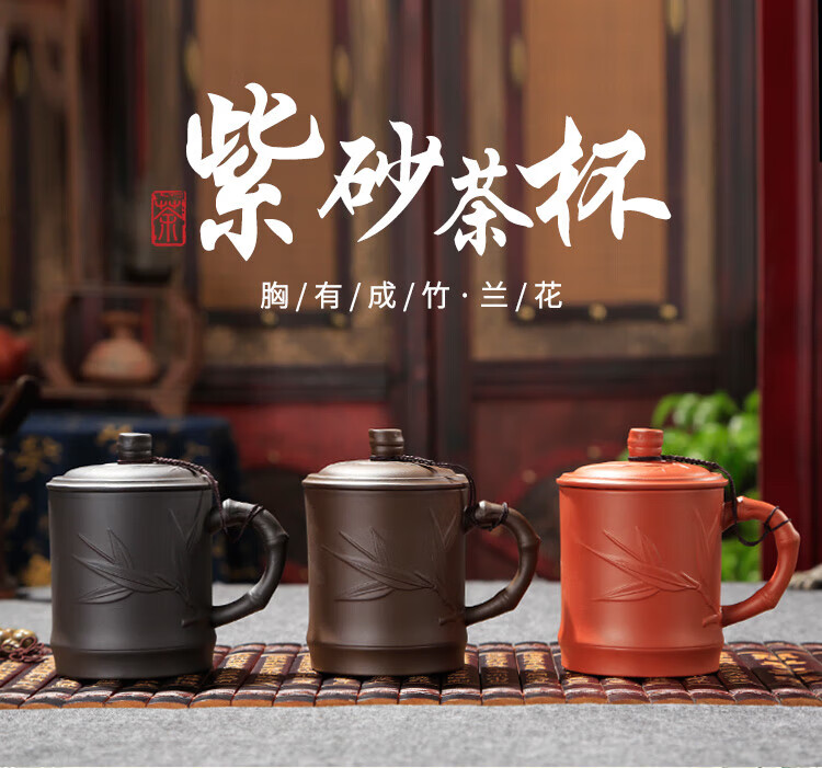 Baichunbao Yixing Zisha Cup Men's Tea Cup Master Cup Large Ceramic Cup with Lid Home Office Cup Single Drinking Cup Brown Chestful Bamboo Lid Cup 0 Howard Johnson 0