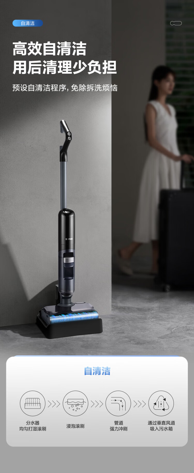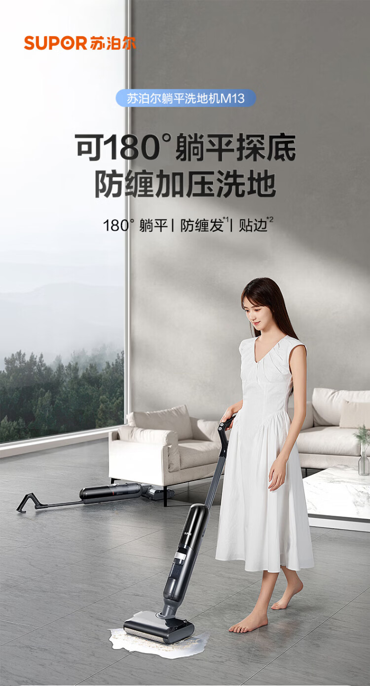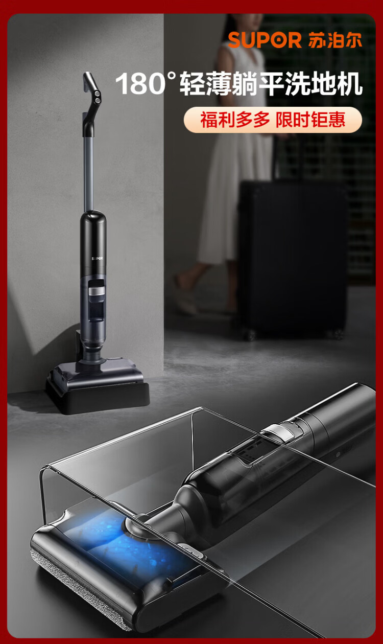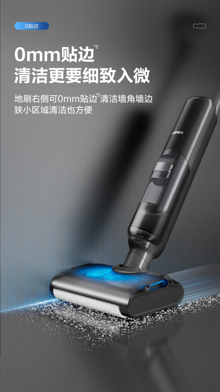 SUPOR floor washing machine household smart handheld wash-and-dry mop and sweep all-in-one welt automatic cleaning flat-laying anti-tangle electric mop wireless vacuum cleaner black