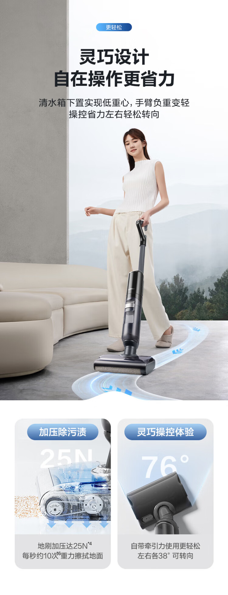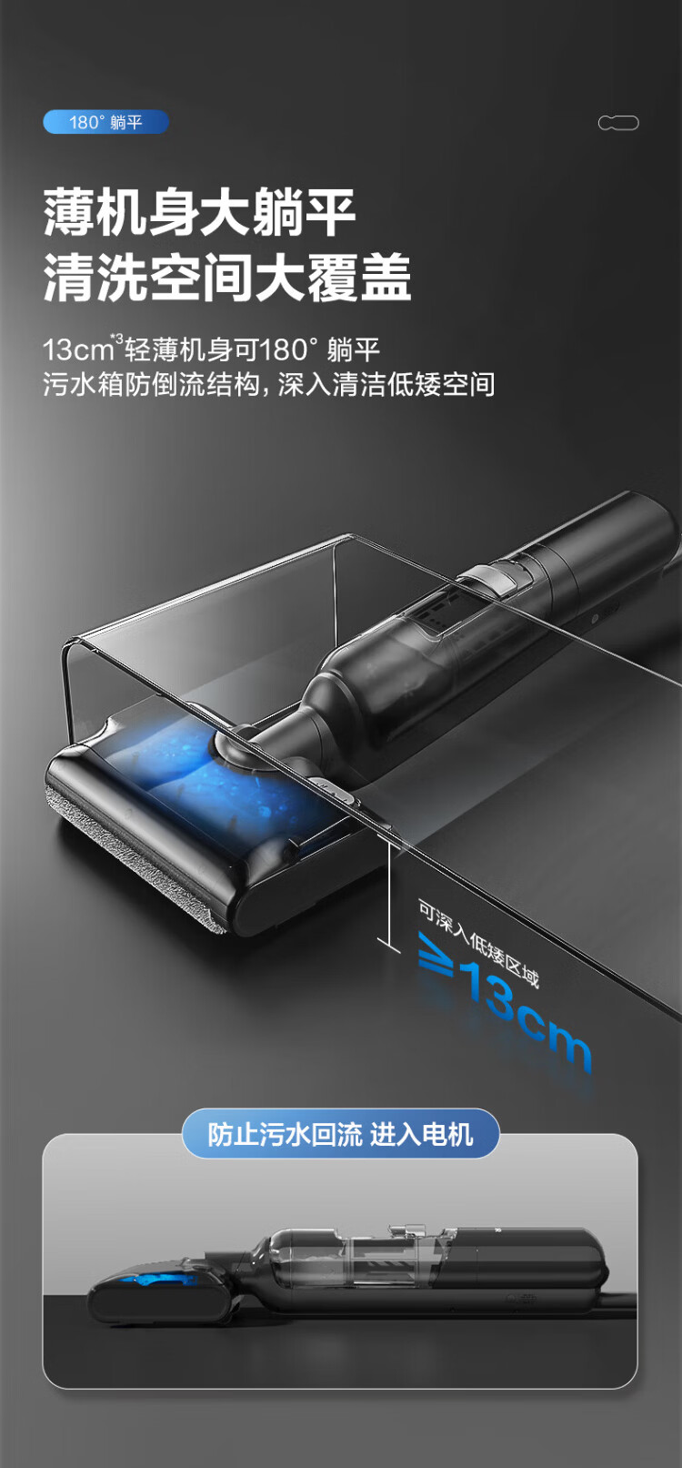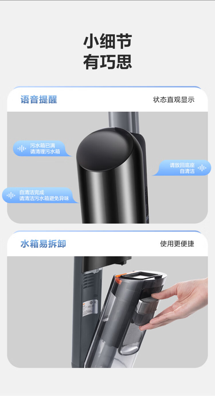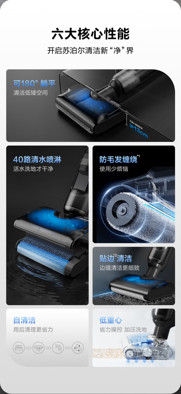 SUPOR floor washing machine household smart handheld wash-and-dry mop and sweep all-in-one welt automatic cleaning flat-laying anti-tangle electric mop wireless vacuum cleaner black
