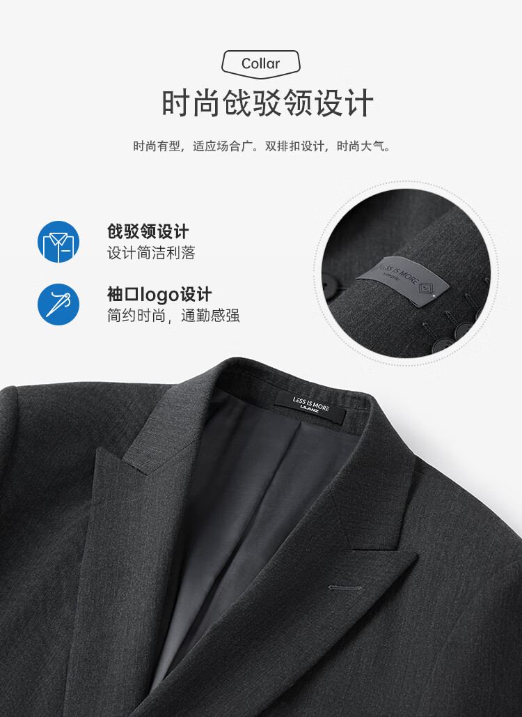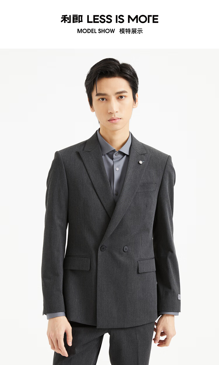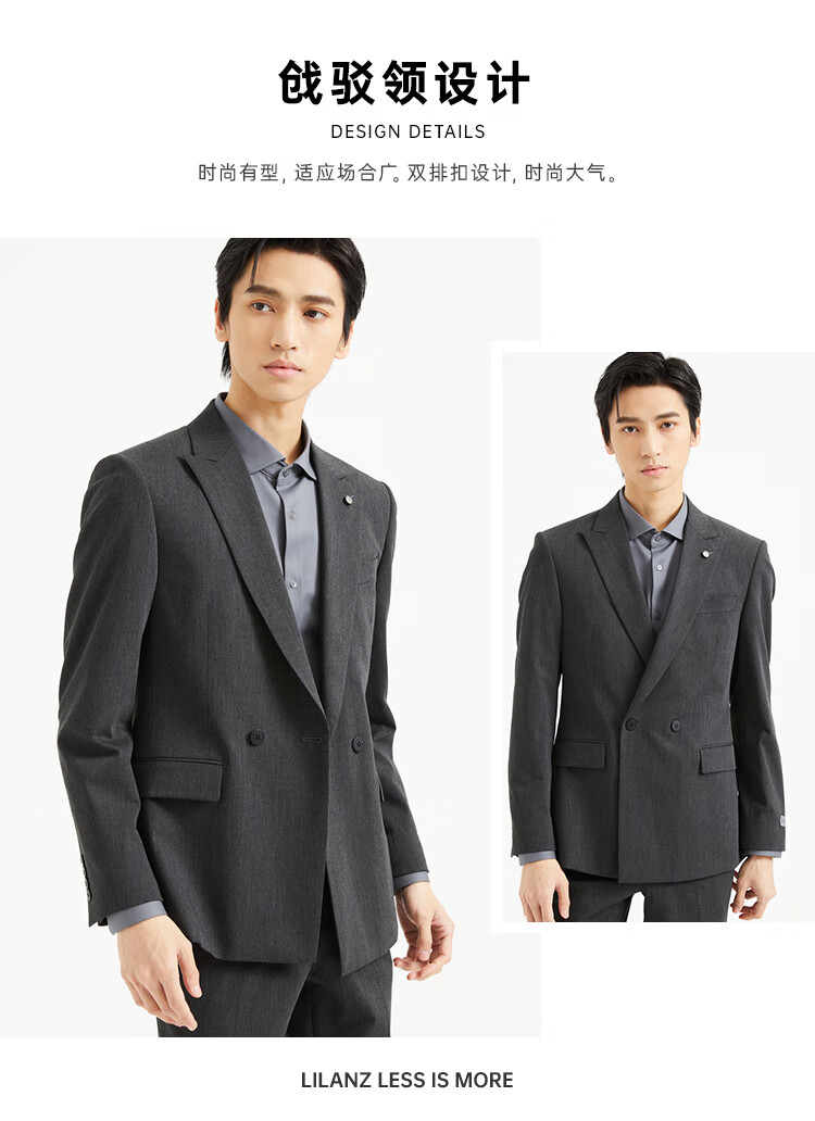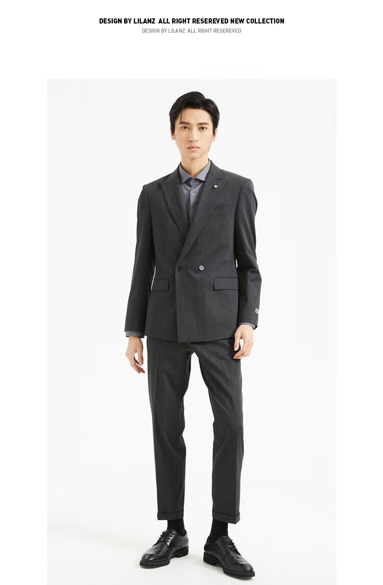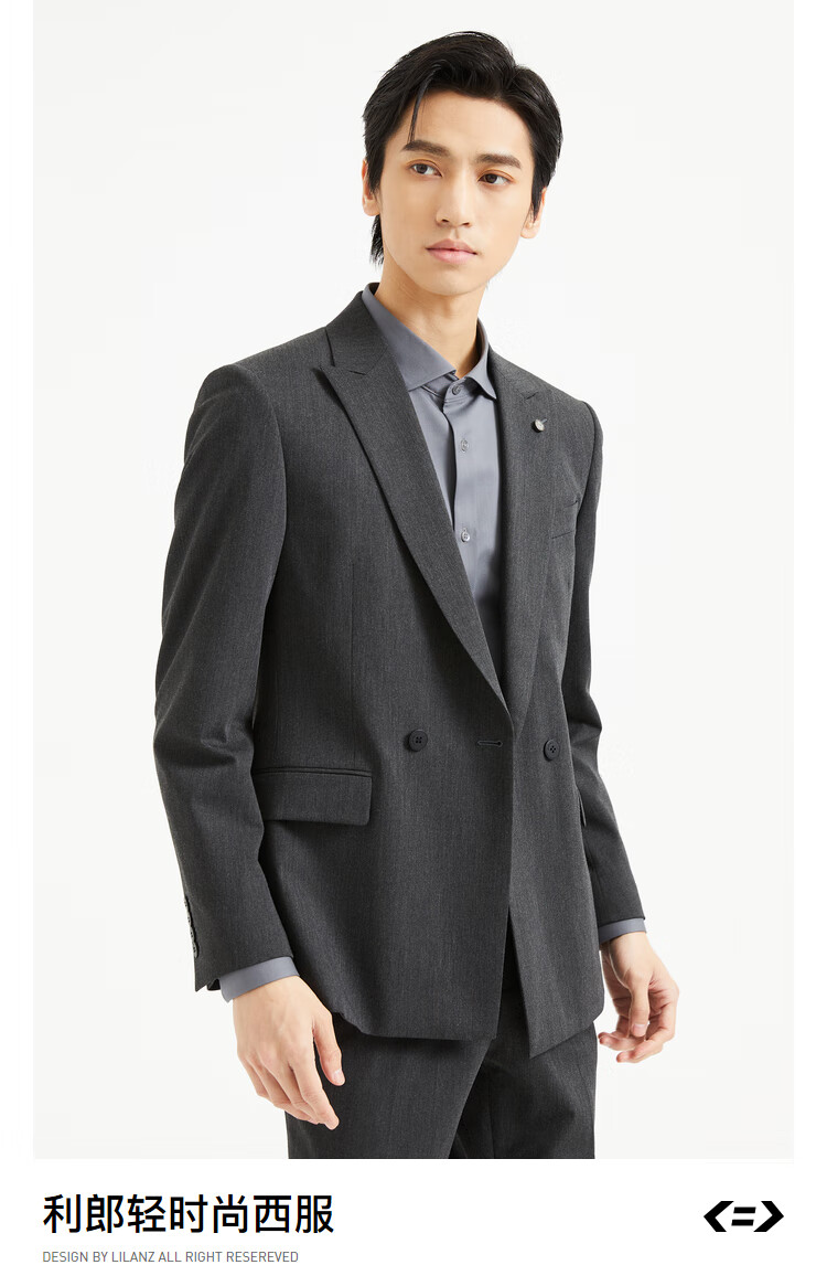 Lilang Youth Business Men's Wear Shopping Mall Suit Suit Men's Double-Breasted Suit Two-piece Set Q4QXF10 Medium Gray 170A