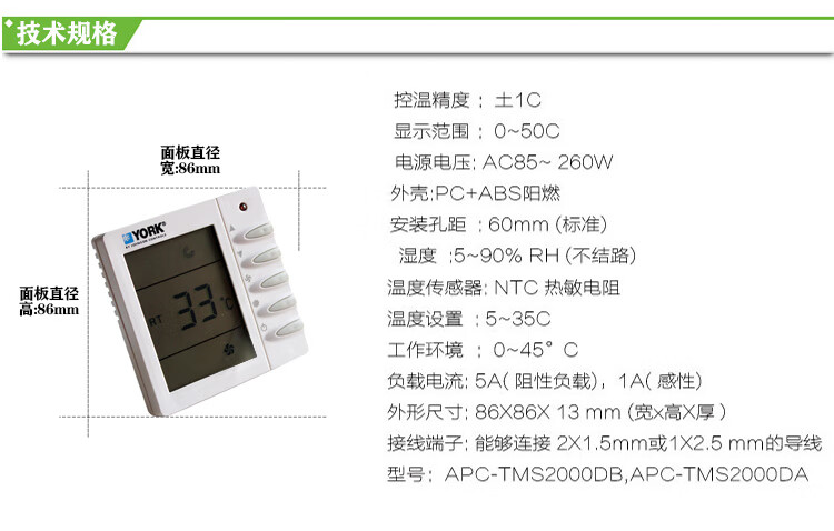 YORK York water central air conditioning thermostat LCD wire-controlled three-speed switch fan coil panel TMS-2000DB cooling and heating type