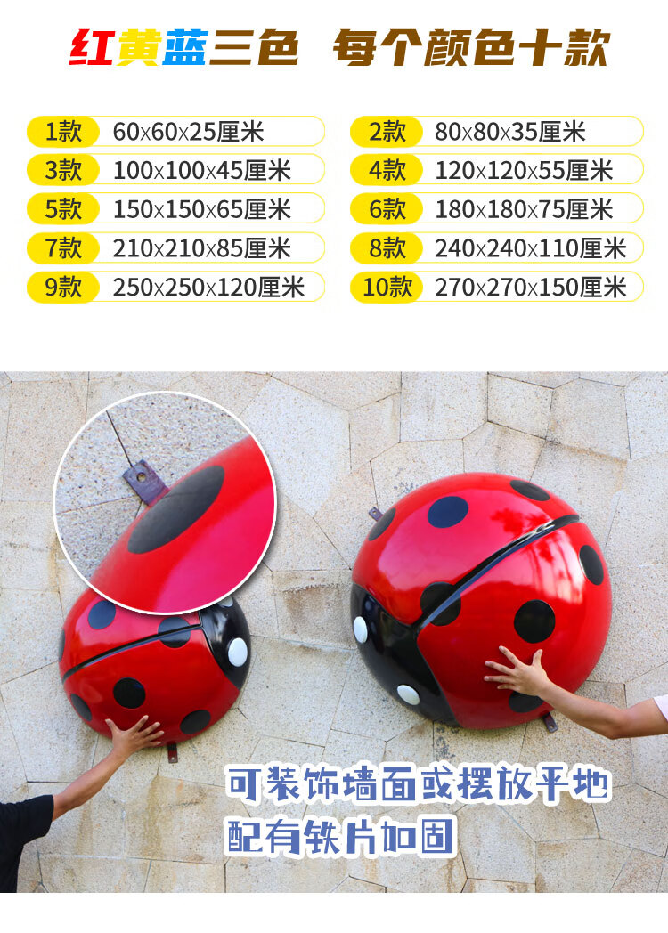 Fuya Art Simulation Seven-Star Ladybug Large Ornament Beetle Sculpture Outdoor Garden Landscape Sketch Park Garden Lawn Decoration 80cm Diameter Red