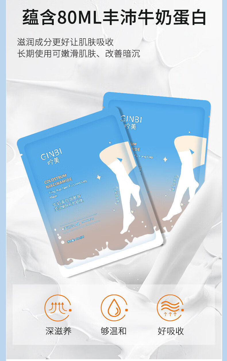 Yinmei Milk Protein Niacinamide Long Leg Mask Moisturizing, Anti-freeze and Cracked Exfoliating Long Foot Mask, 10 pairs are now available Milk Protein Niacinamide Long Leg Mask 80m