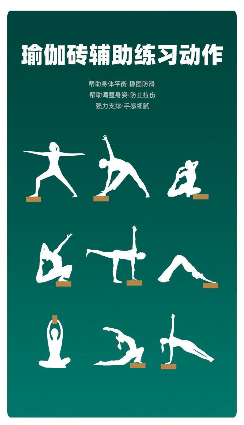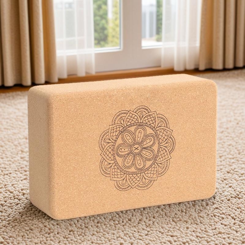 WEME high-density cork yoga bricks leg press auxiliary tools fitness yoga dance Pilates non-slip exercise bricks wood color 22.6*15*7.5cm (750g/Shore hardness 80)