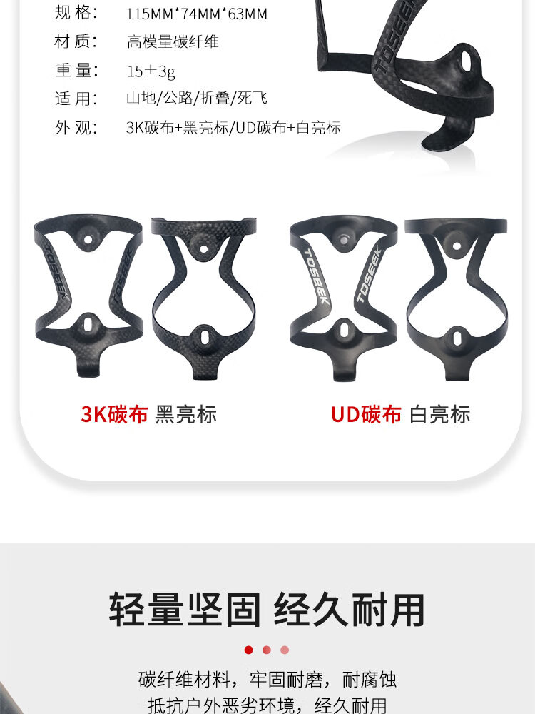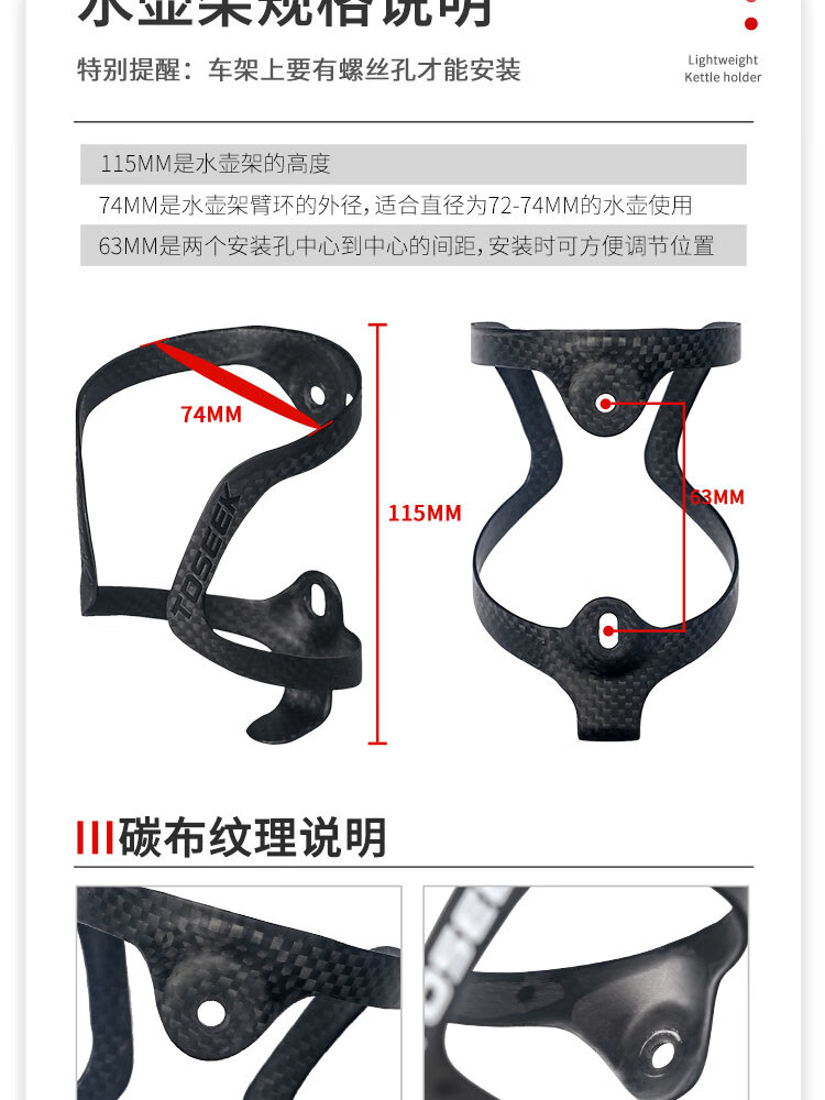 TKHE ultra-light bright mark carbon fiber road mountain bike folding bicycle rack water bottle rack water bottle seat frame UD matte + white bright mark (screws)