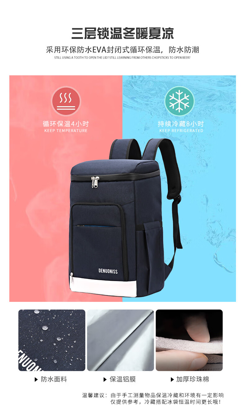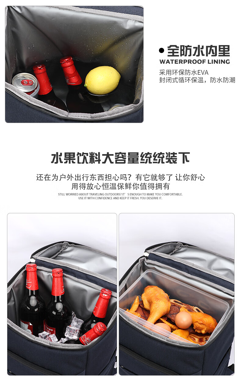 Gongma Backpack Outdoor Refrigerator Thickened Ice Pack Picnic Bag Large Waterproof Takeout Delivery Box Portable Insulated Bag 28L Large Black