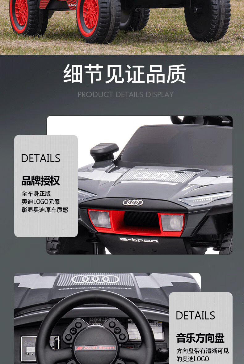 Ogulun remote control car can sit on Audi baby toys first birthday gift for children children's electric car four wheels dark gray + leather seat + foam wheels