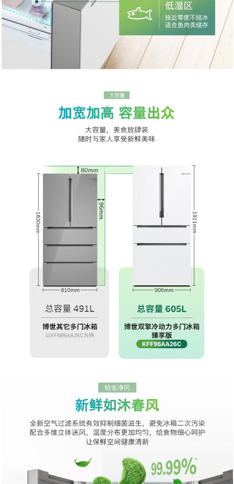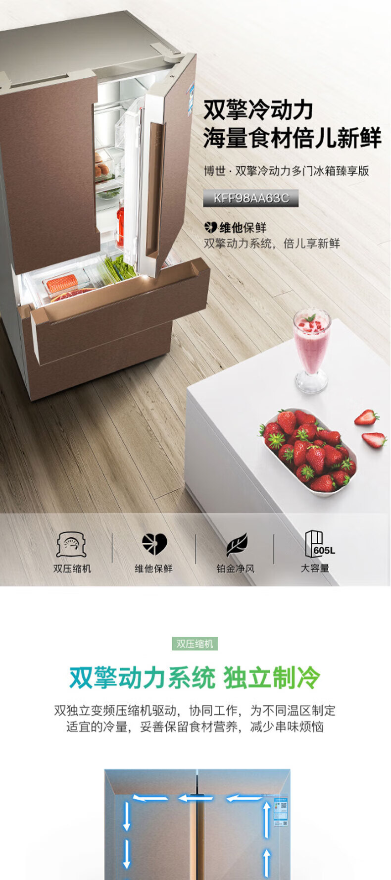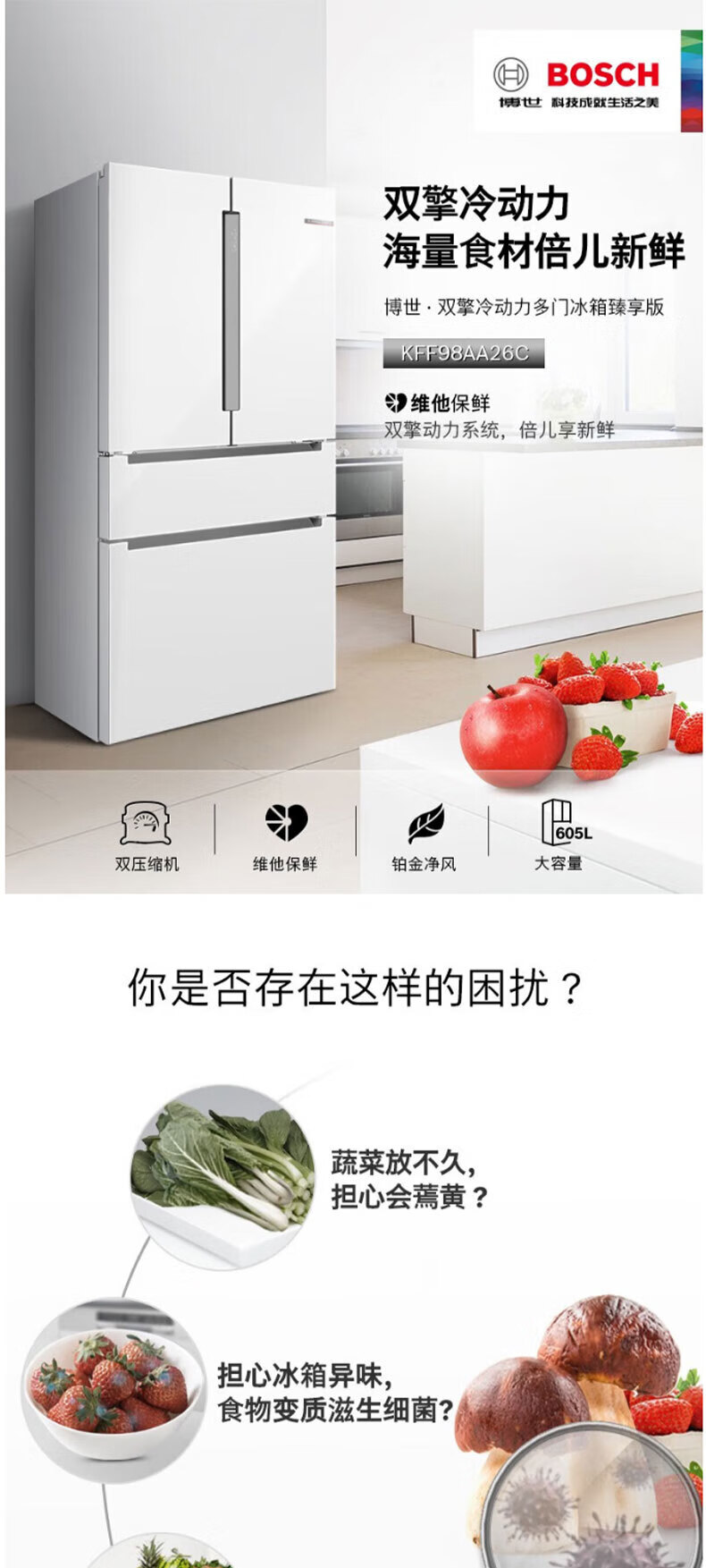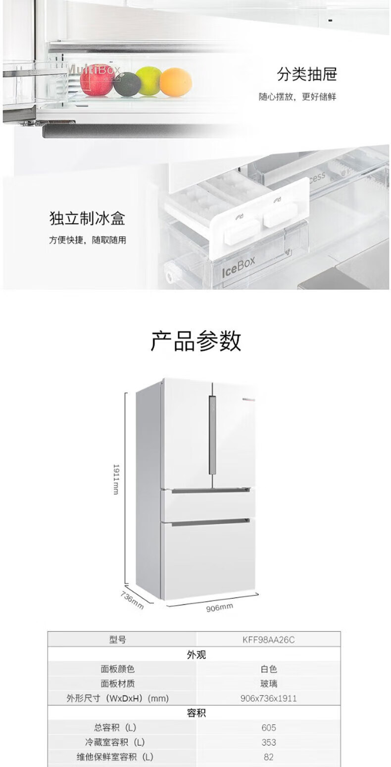 Bosch KFF98AA63C dual cycle frequency conversion home interconnection KFF98AA26C zero degree 605 liters white KFF98AA26C