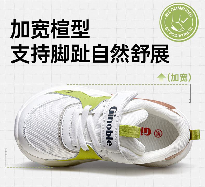 Genopu Baby Toddler Shoes Spring and Autumn Children's Fashionable Sports Functional Shoes Soft Sole Breathable Children's Shoes for Boys and Girls GY1628 White/Green/Brown/Gray 25.5 160mm Suitable for Foot Length 156-165mm