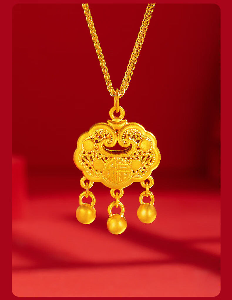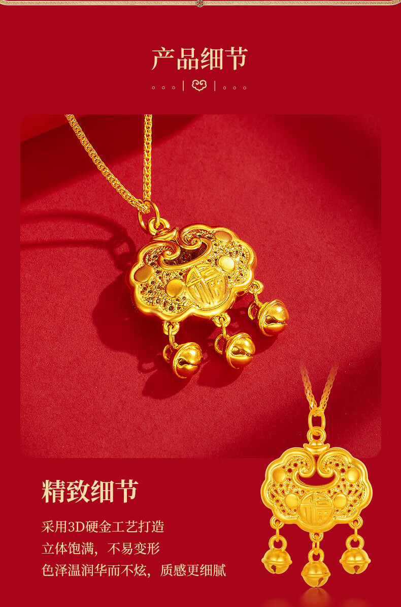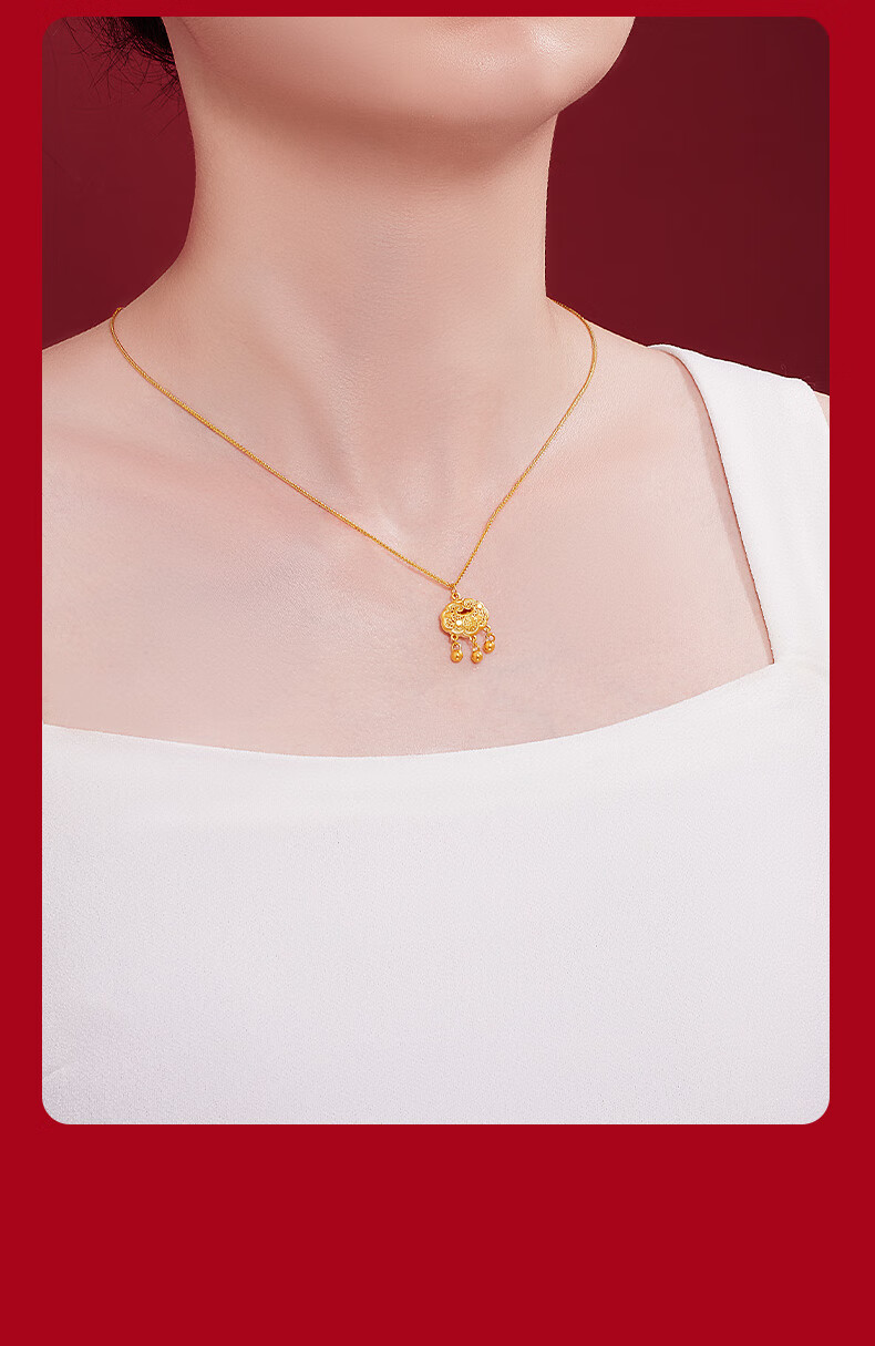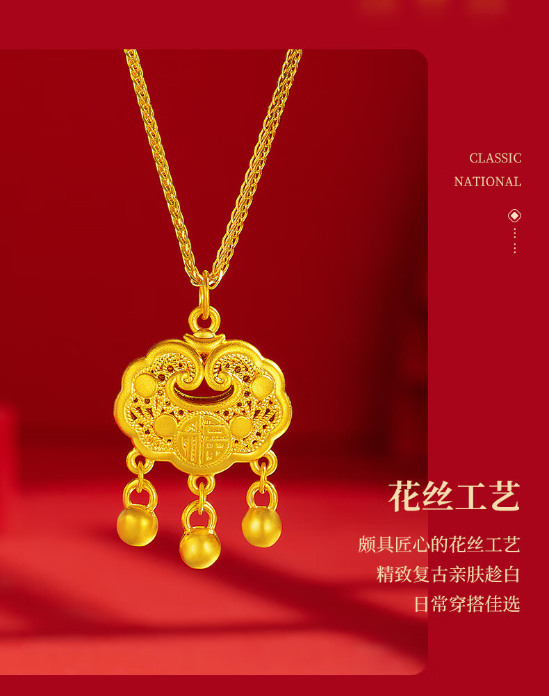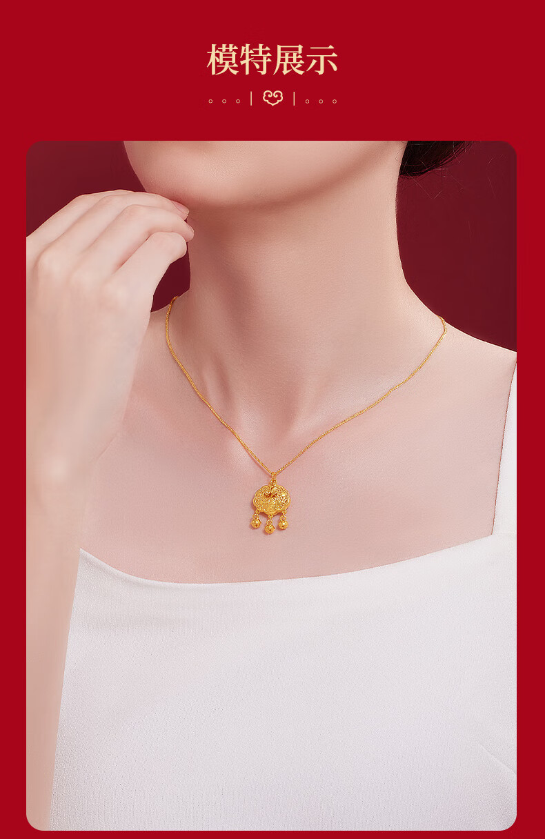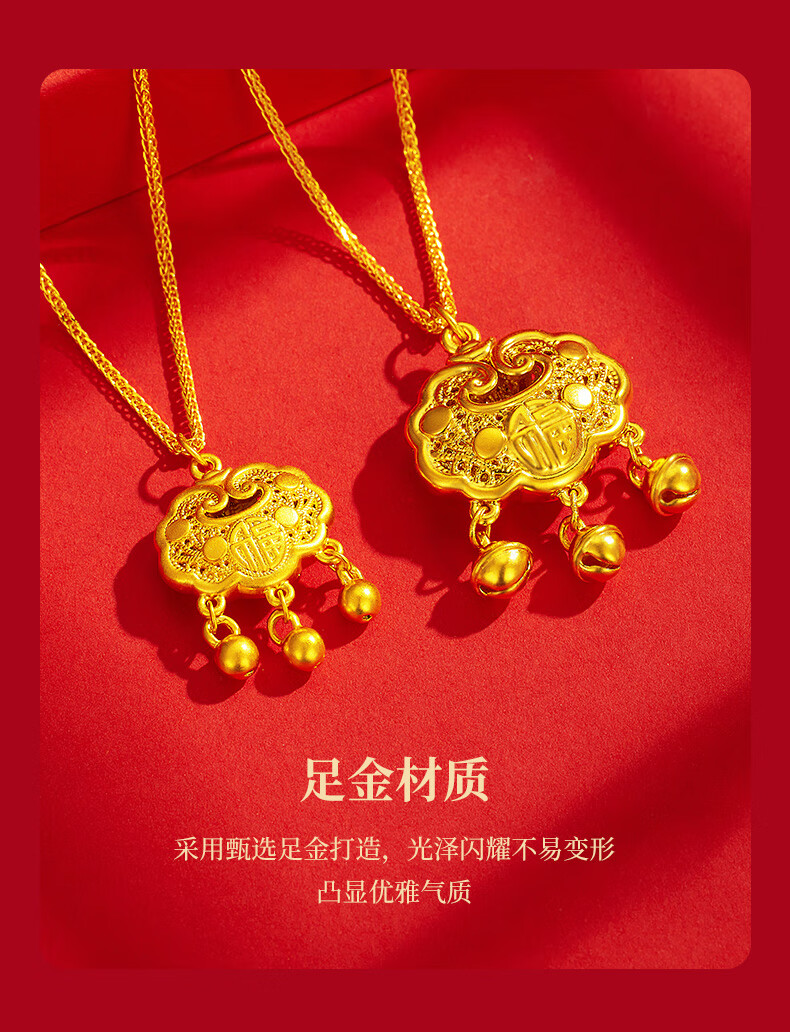 Chinese jewelry gold necklace pendant for women good luck lock longevity lock pure gold pendant for girlfriend and wife birthday gift gold lock package about 0.75 grams