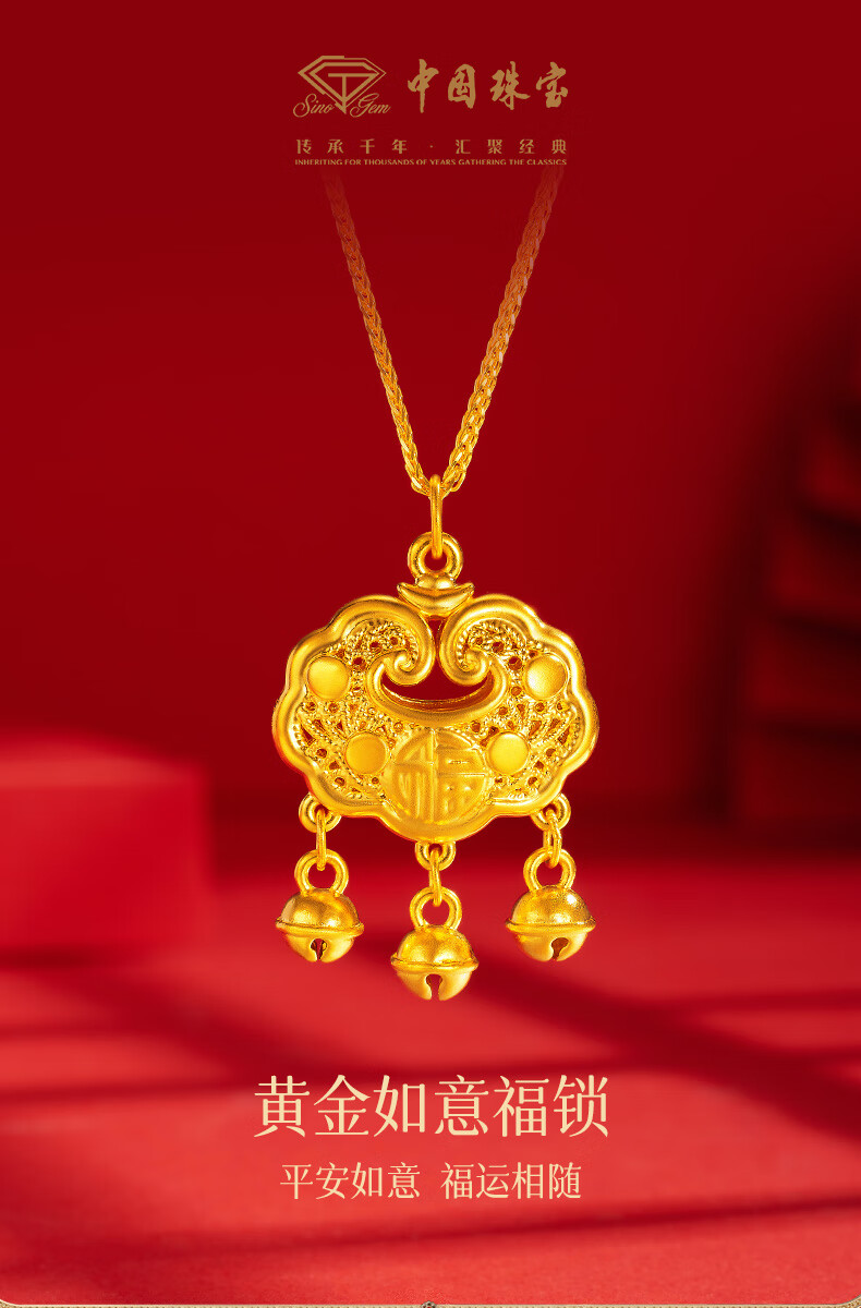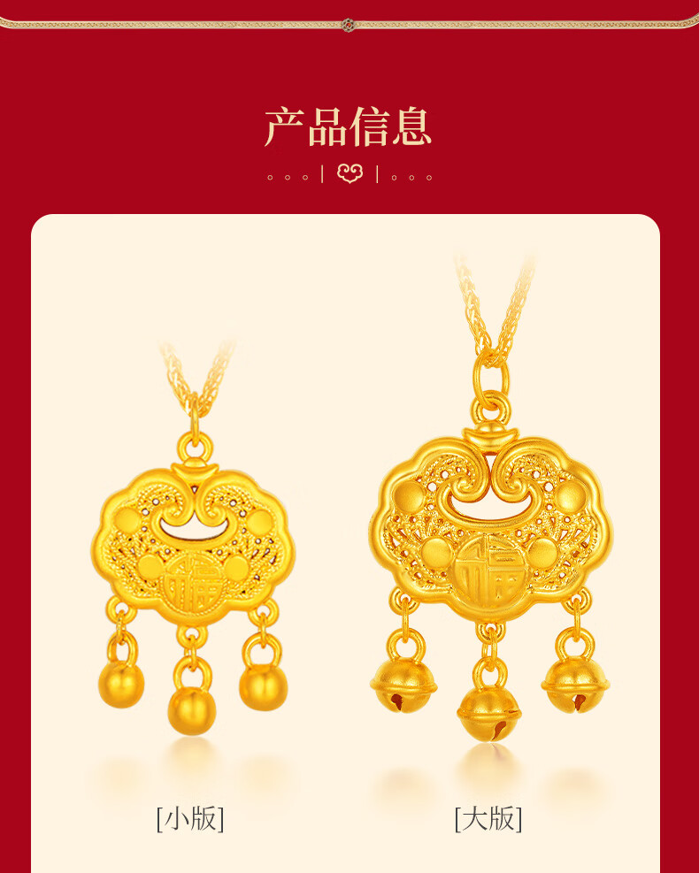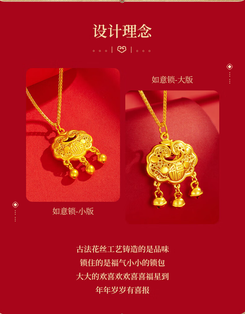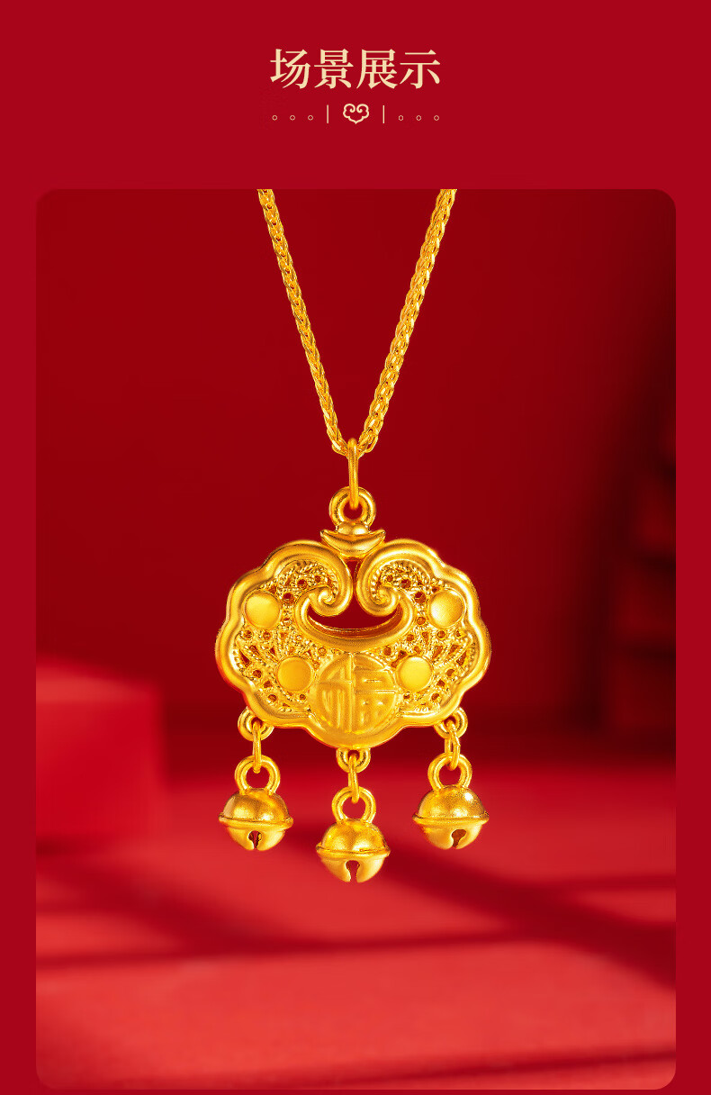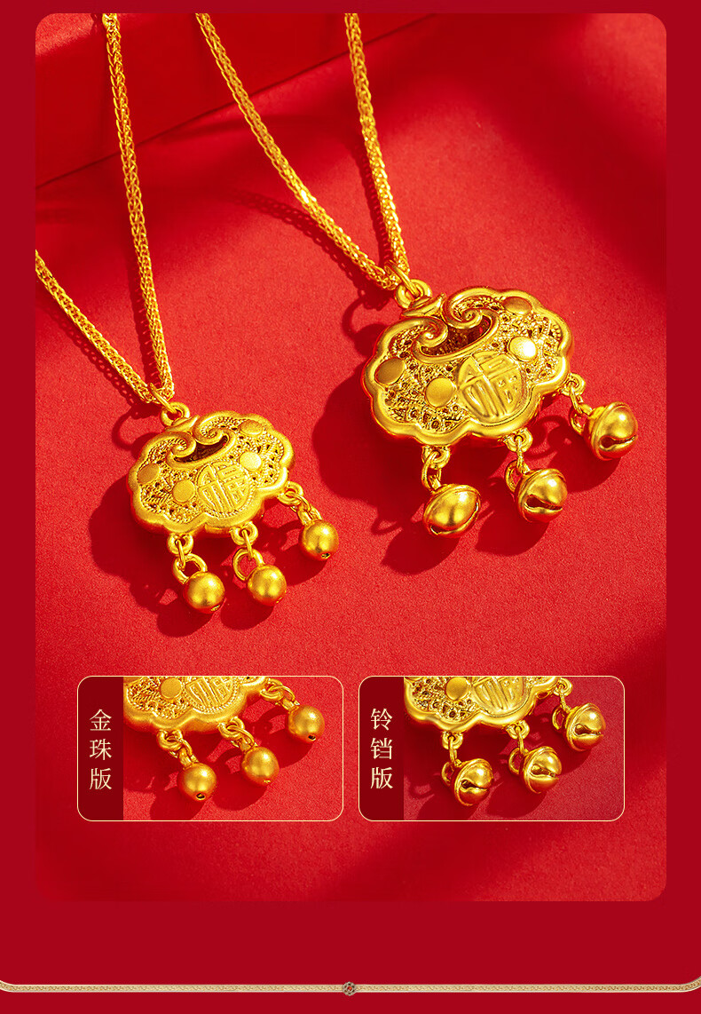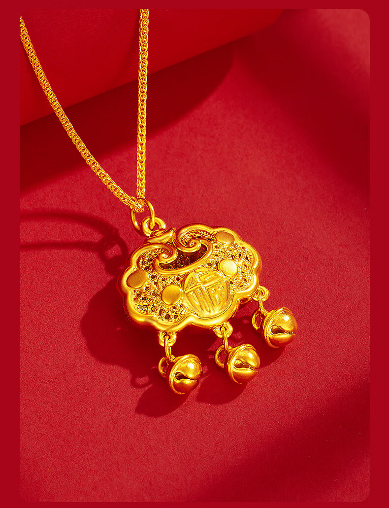 Chinese jewelry gold necklace pendant for women good luck lock longevity lock pure gold pendant for girlfriend and wife birthday gift gold lock package about 0.75 grams