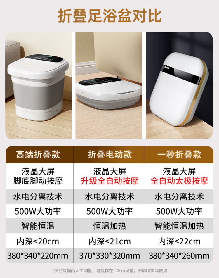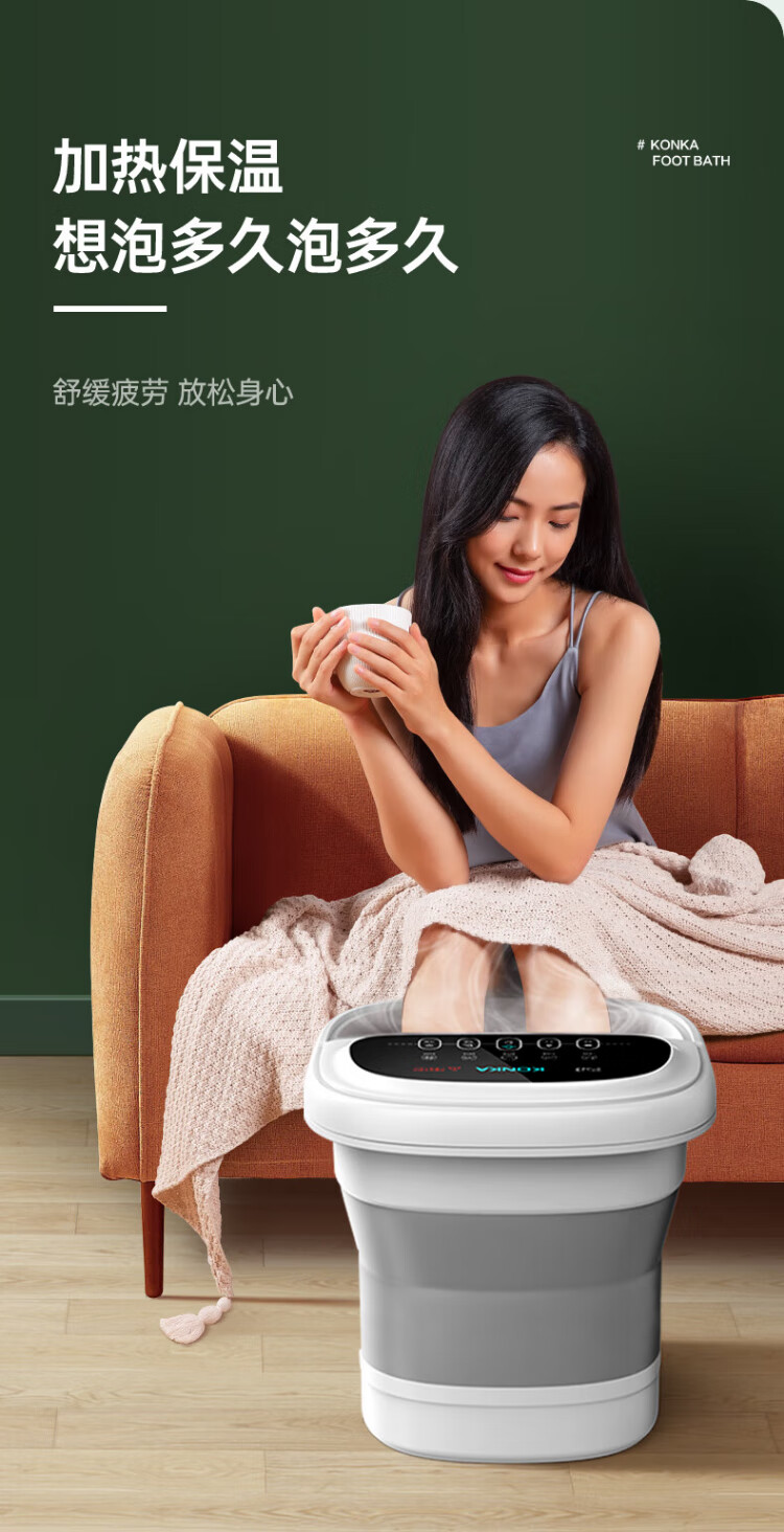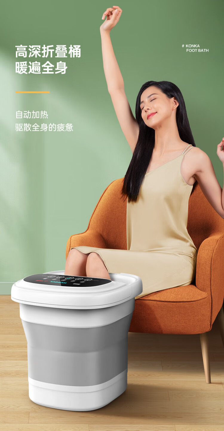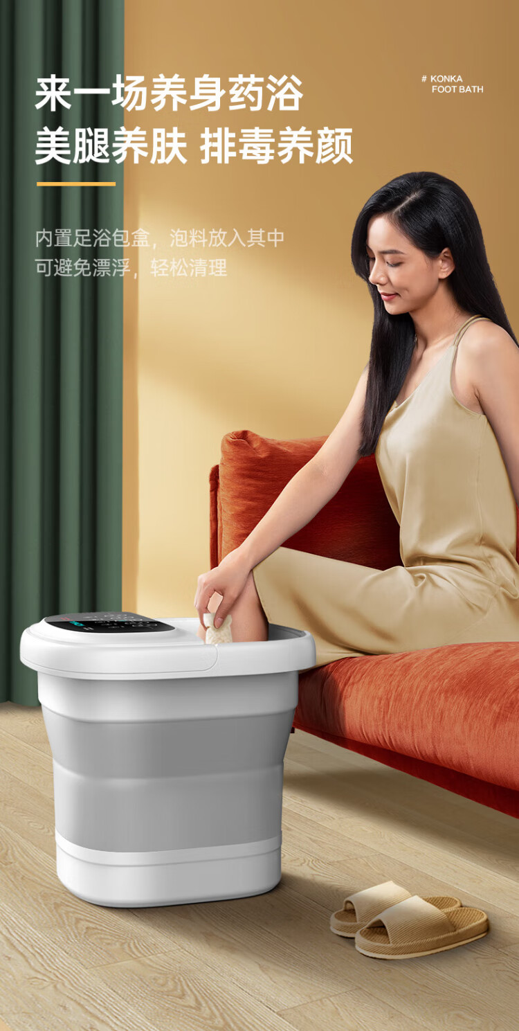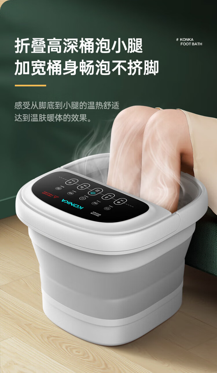 Konka Folding Foot Bath Bucket Automatic Constant Temperature Heating Foot Bath Bath Foot Bath Basin Foot Therapy Foot Bath Over Knee Soaking Calf Home High-end Birthday Gift for Mom and Dad High-end Folding Model Intelligent Heating + Deepening Bucket Soaking Calf + 30 Bags of Foot Bath Bags