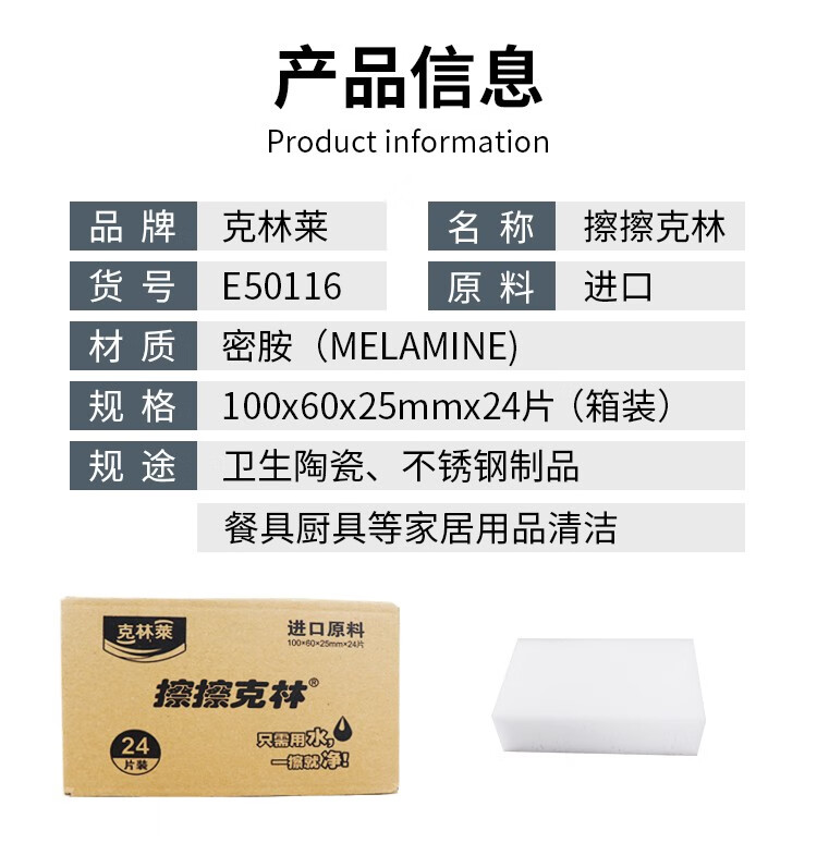 Klinlai wipe Klin nano sponge wipe density high strength decontamination cleaning magic cup wipe shoe cleaning 100*60*25mm*24 pieces E50116