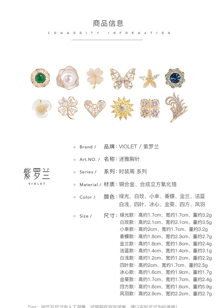 Violet Mya Brooch Exquisite and Compact Combination Corsage Anti-exposure Versatile Pin Fashion New Green Light 1
