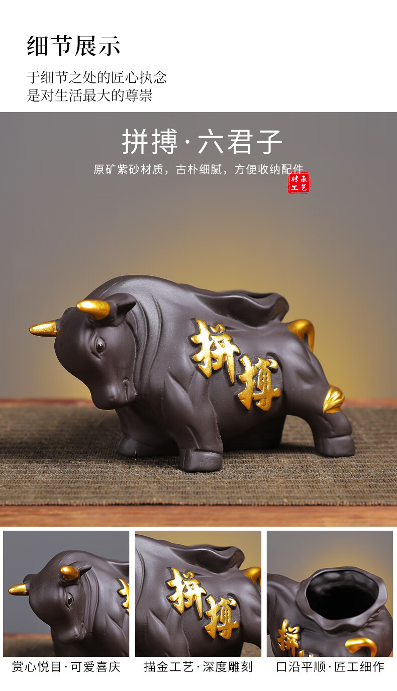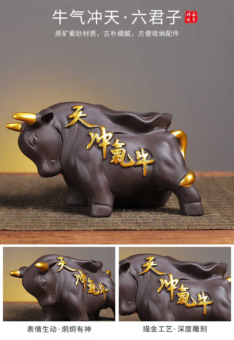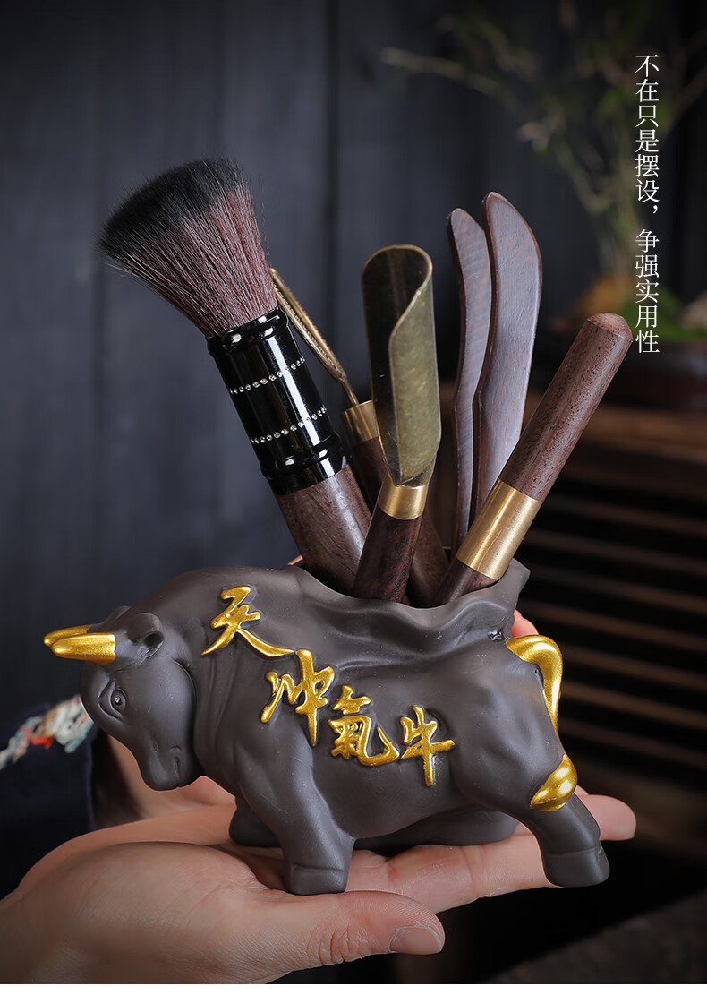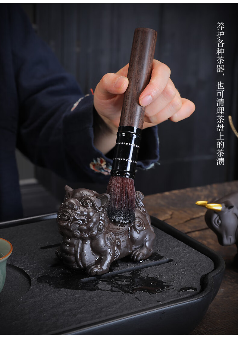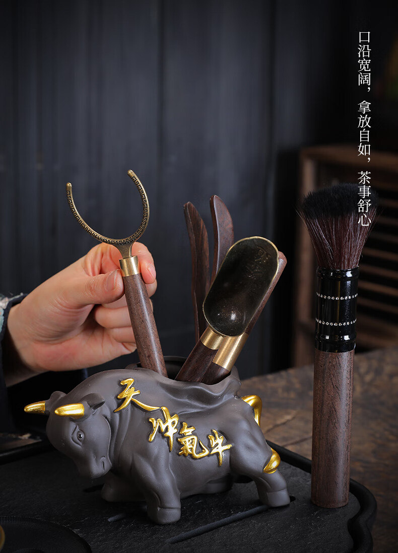 Yunhua Tea Ceremony Six Gentlemen Set Black Sandalwood Tea Needle Tea Spoon Tea Clip Kung Fu Tea Set Accessories 6-piece Set of Tea Making Tools Six Gentlemen of the Soaring Tea Ceremony + Pixiu Tea Pet