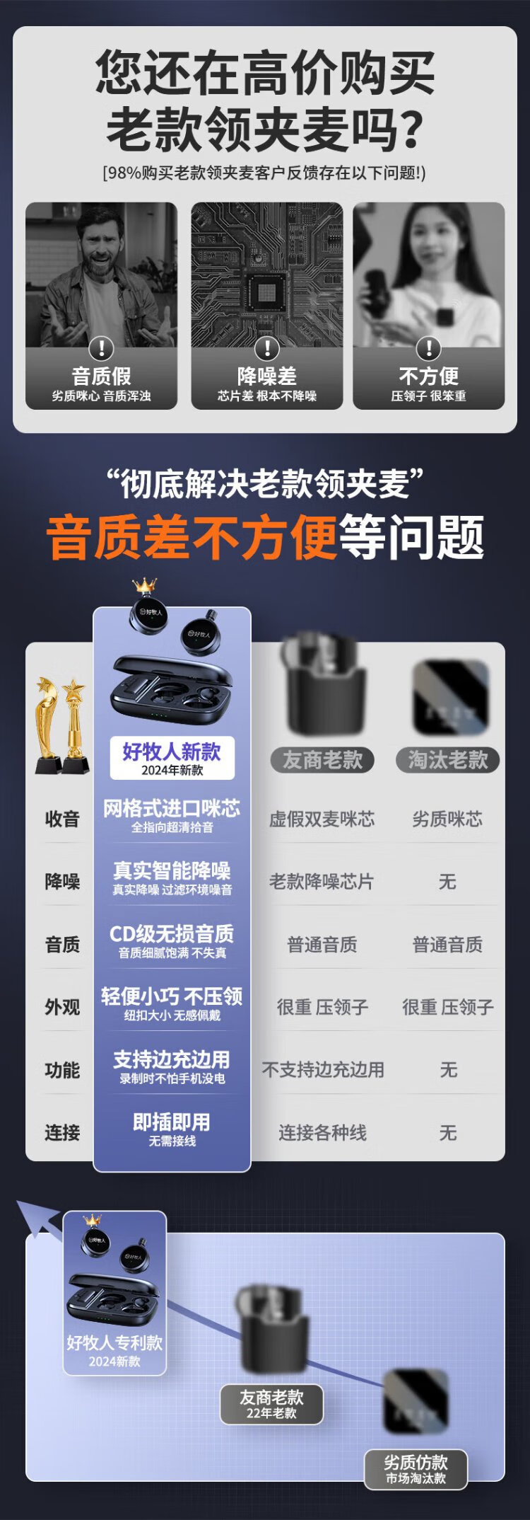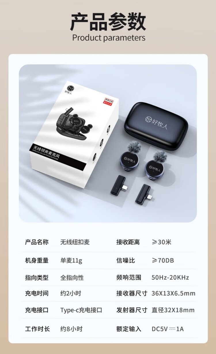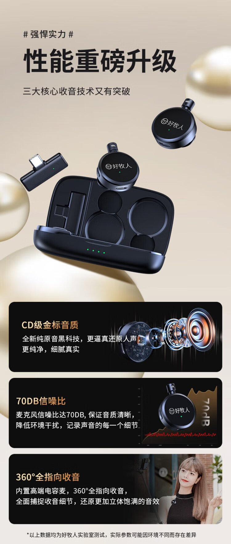 Good Shepherd Wireless Lavalier Microphone Anchor Live Douyin Short Video Recording Equipment for Mobile Phones Special Outdoor Noise Reduction K-Song Recording Radio Microphone Button Microphone Little Bee One for Two Button Microphone One for One丨Free Storage Bag Android Version + Apple 15