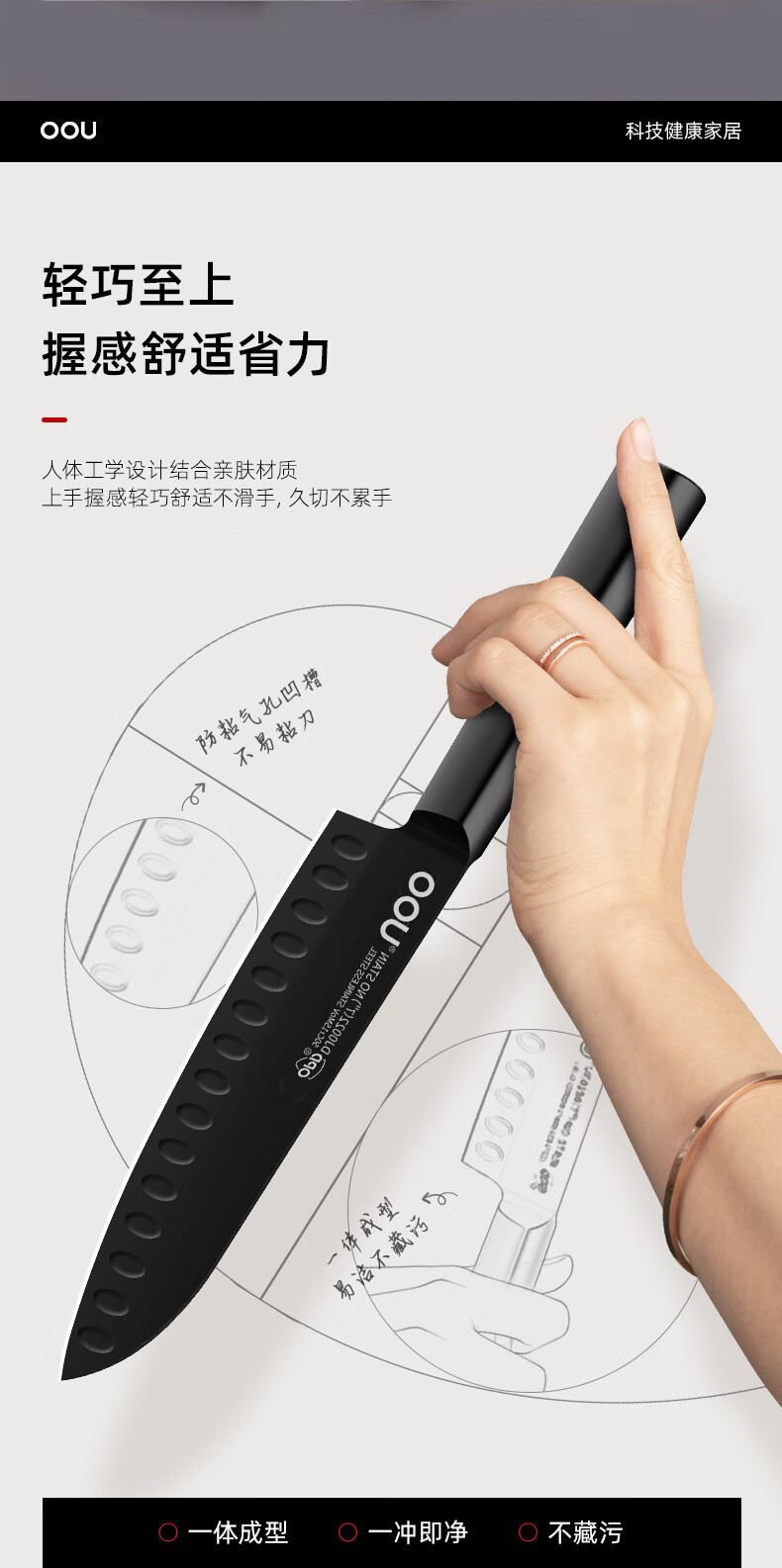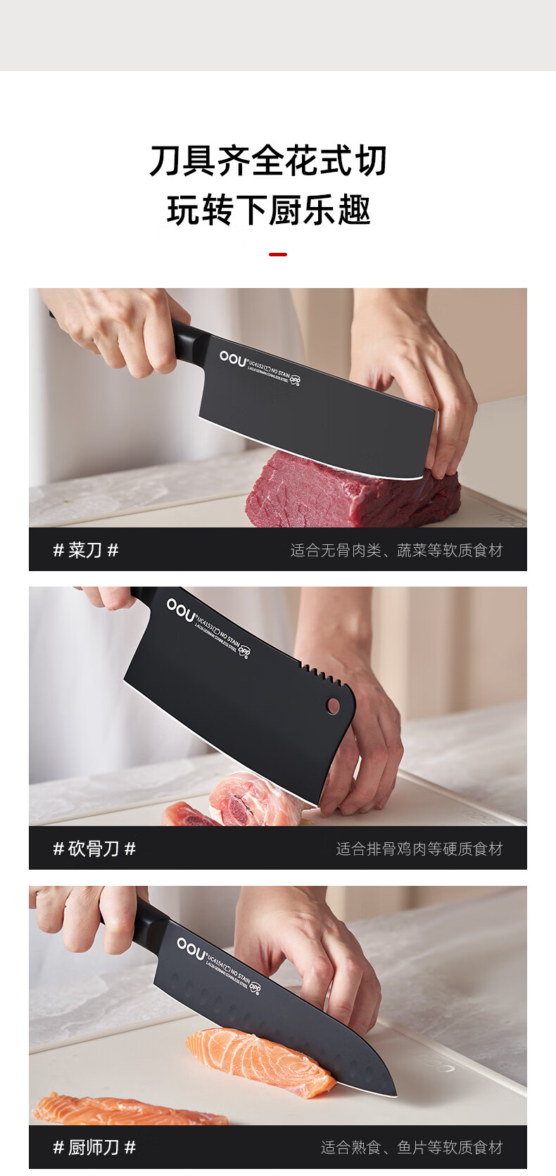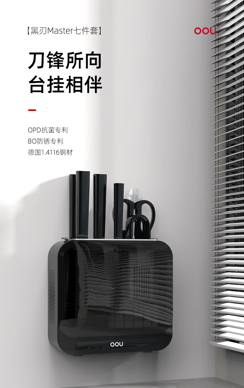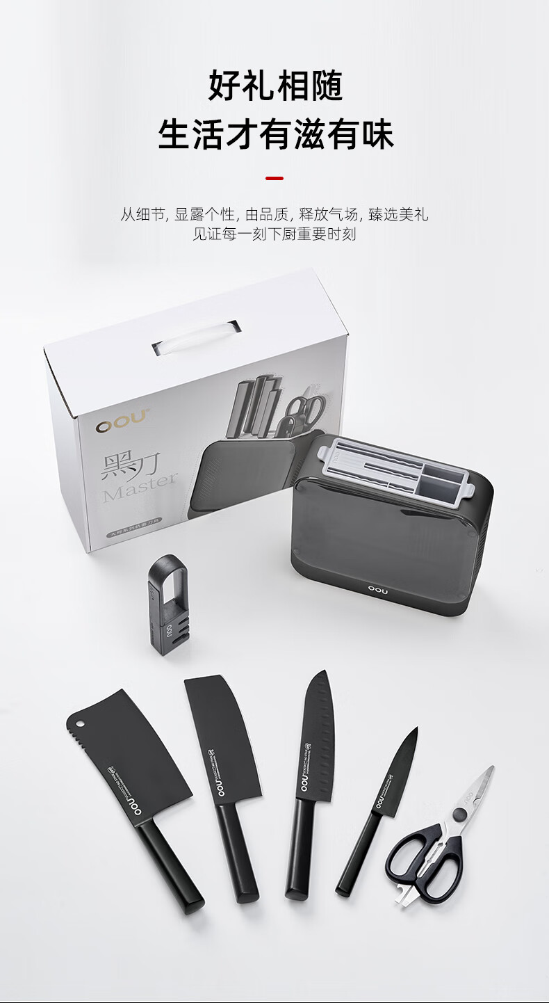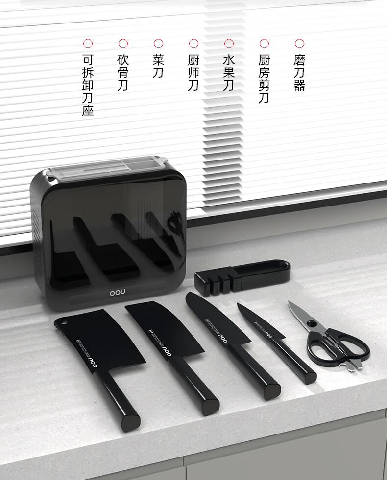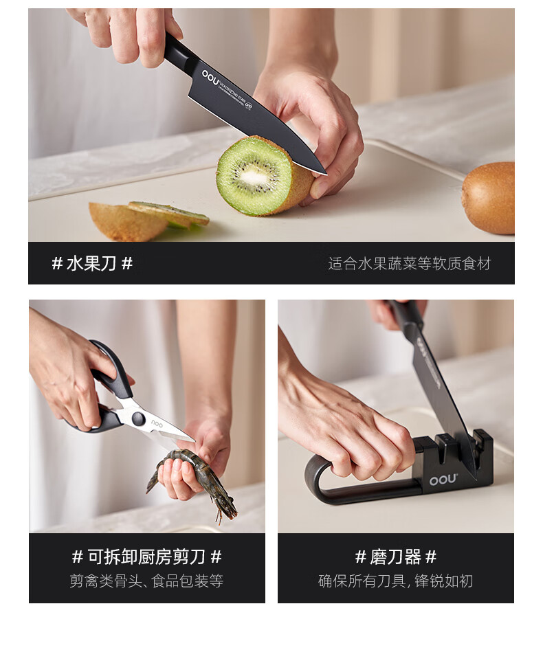 OOU kitchen complete set of German steel household kitchen utensils vegetable cutter scissors fruit knife set black blade fourth generation 7-piece set black antibacterial + anti-rust German steel 7 pieces
