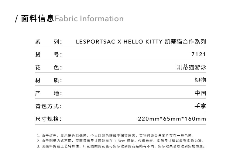 LeSportsac HELLOKITTY Cooperation Series Bags Women's Bags Clutches Cosmetic Bags New Year's Gift Hello Kitty Swimming
