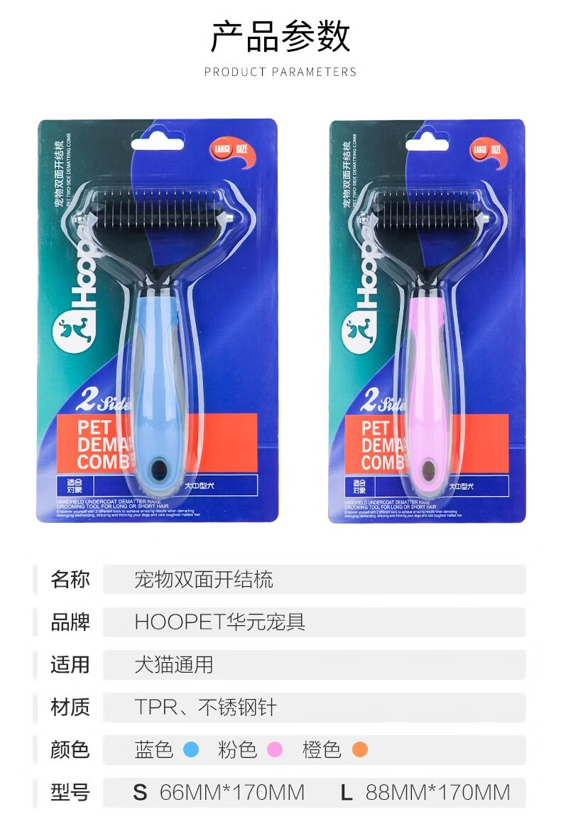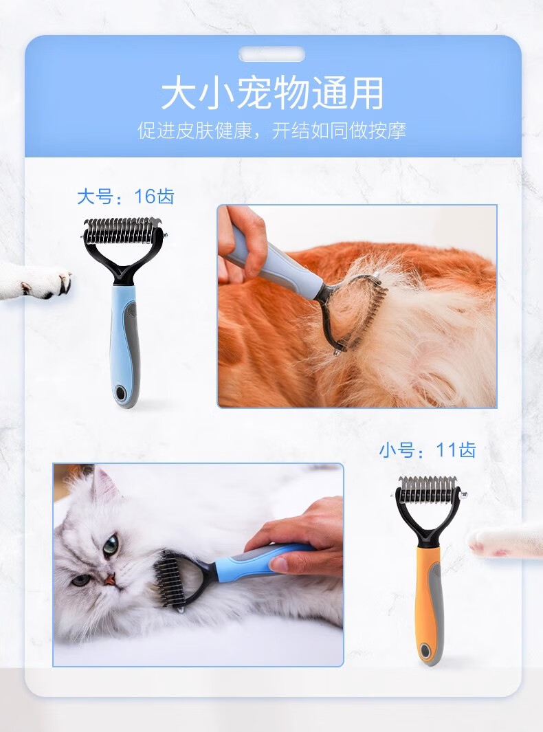 Pet double-sided knot comb cat comb universal dog large row comb steel comb to remove floating hair comb dog hair cleaning pink knot comb pink large size 16 teeth