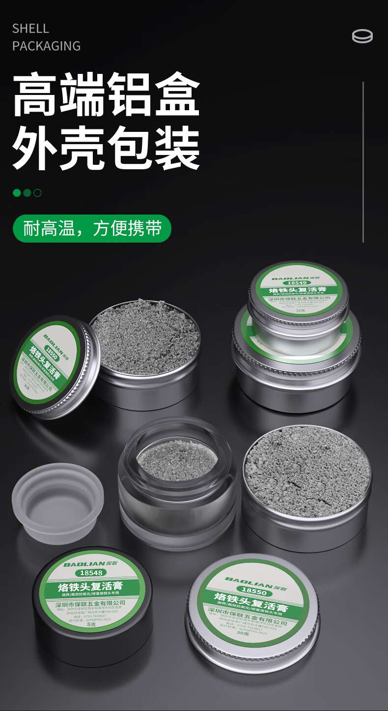 Soldering iron tip repair paste removes oxidation and blackening, does not apply tin, does not stick to tin, cleans soldering iron tip repair and renovation paste, repair paste 16g aluminum box