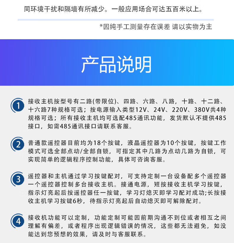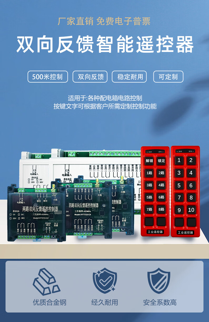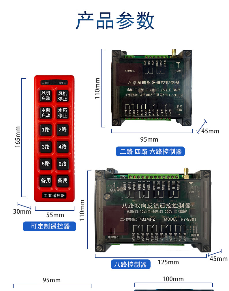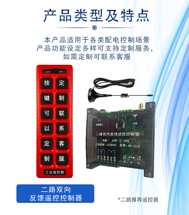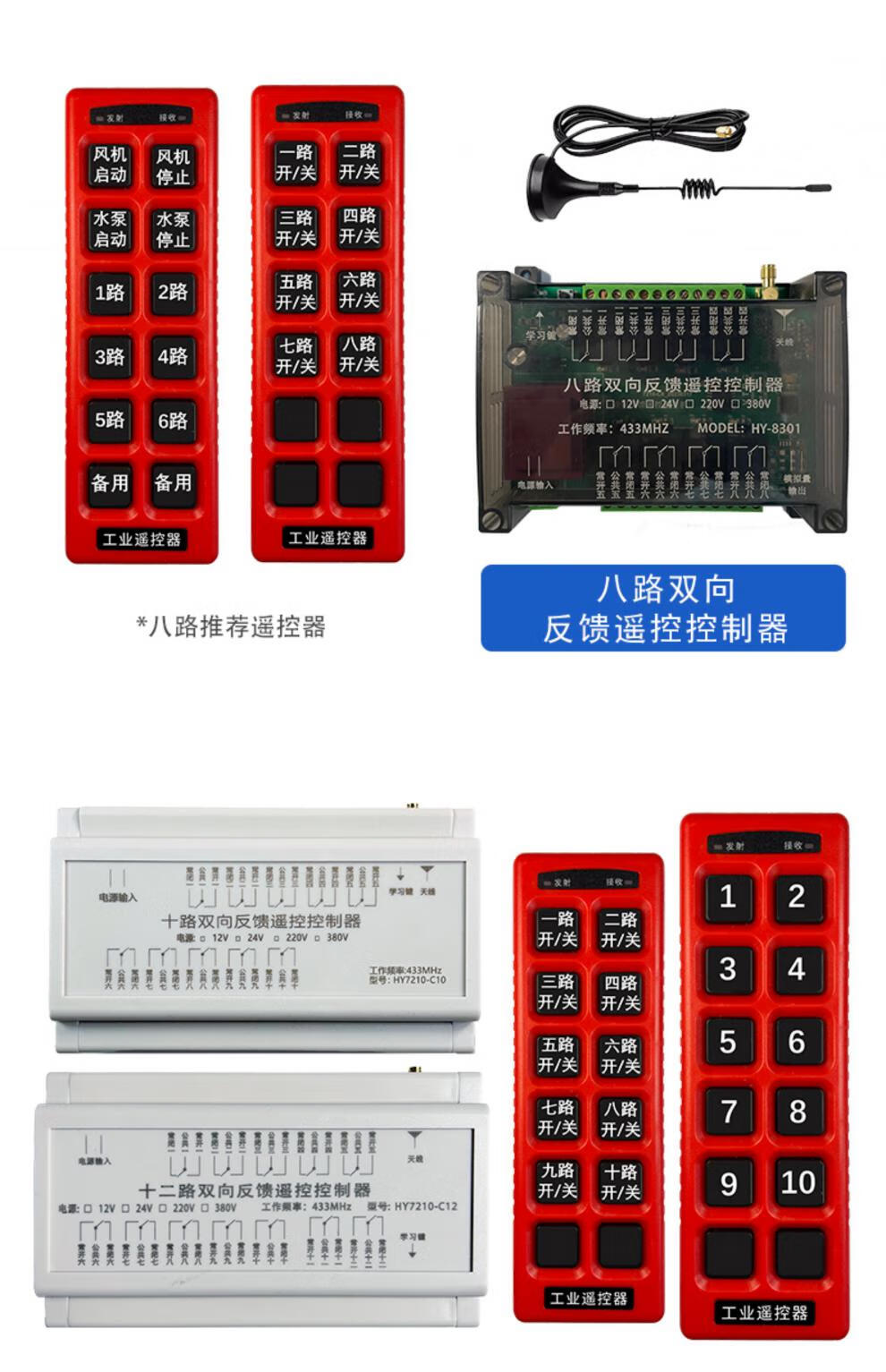 Customizable industrial wireless remote control multi-channel remote intelligent switch 220/380V universal two-way feedback signal 220V 2-way remote control