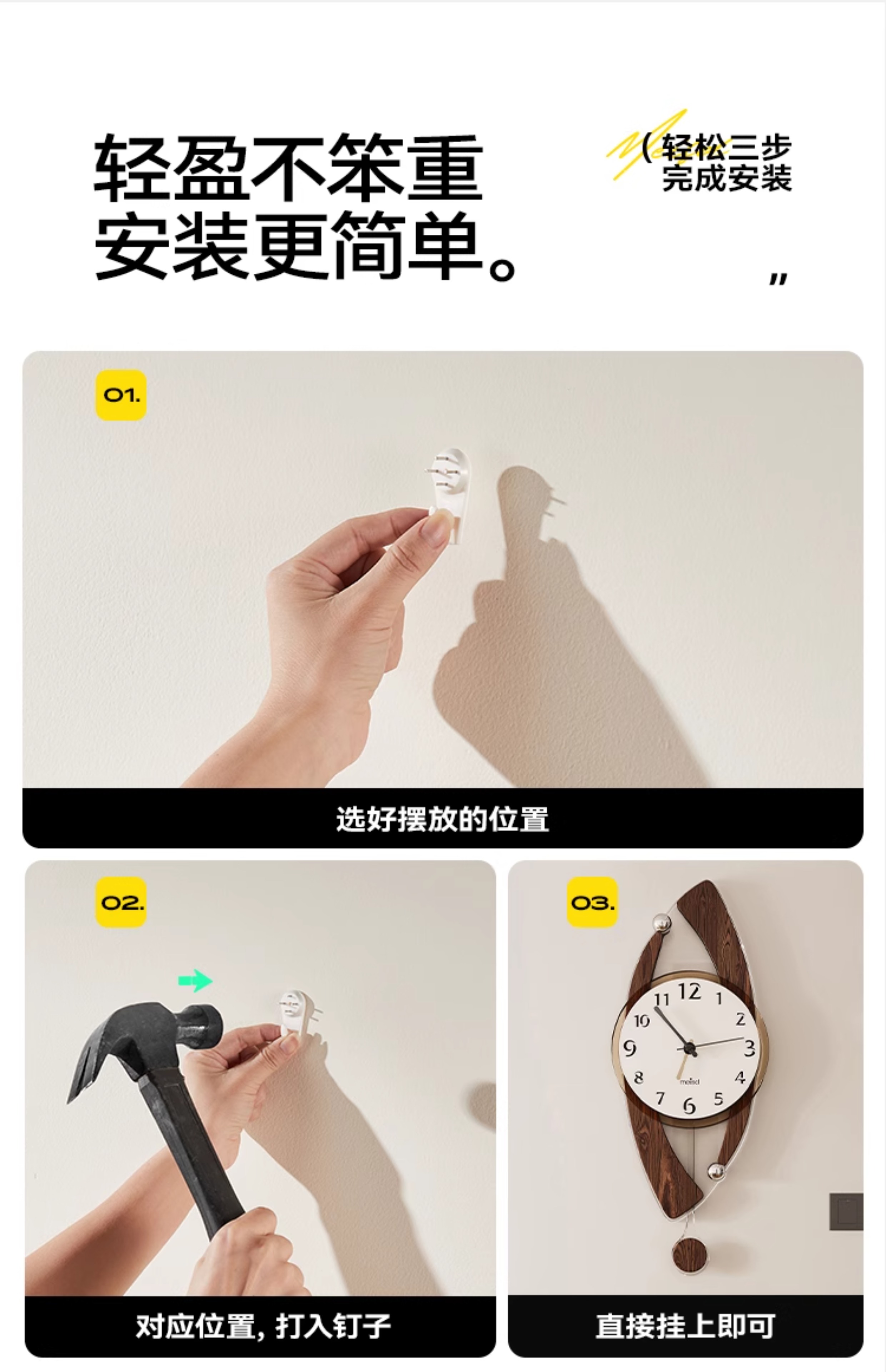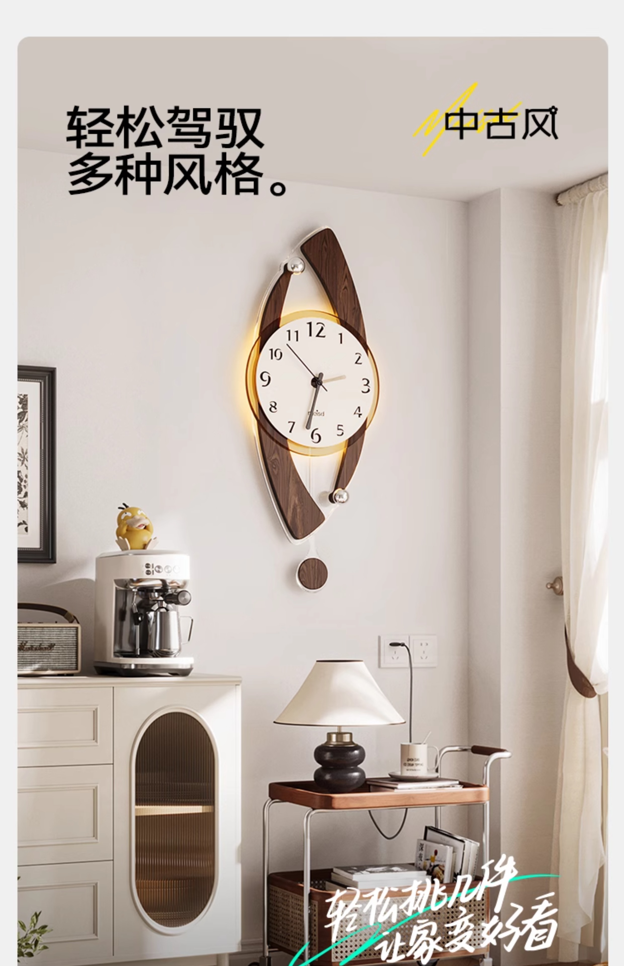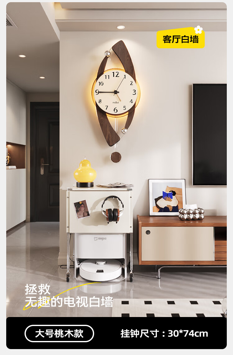 MEISD clock wall clock living room 2025 new modern retro clock wall hanging high-end cream art quartz wall clock 70% of customers choose peach wood grain large size 30*75.5cm