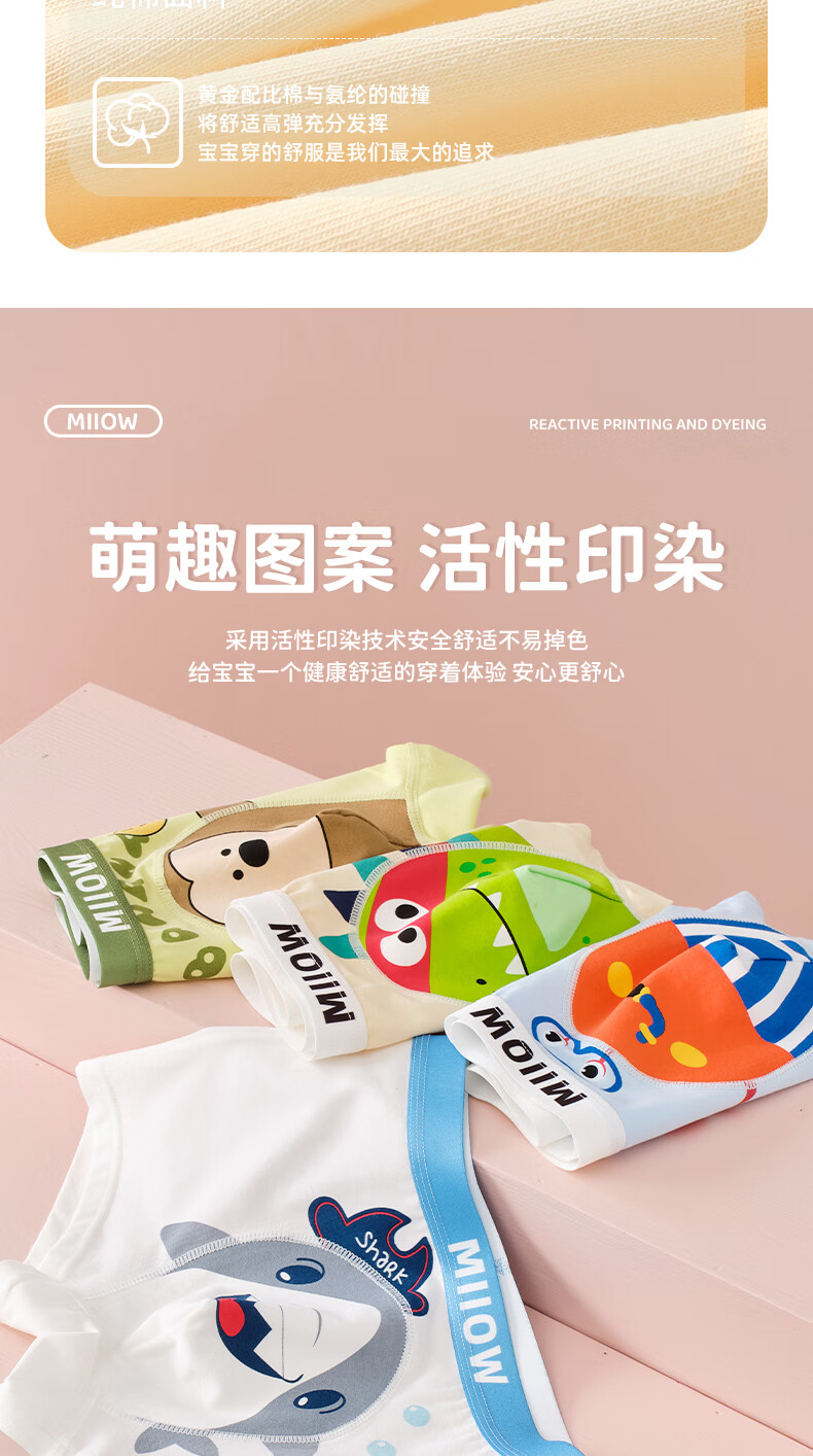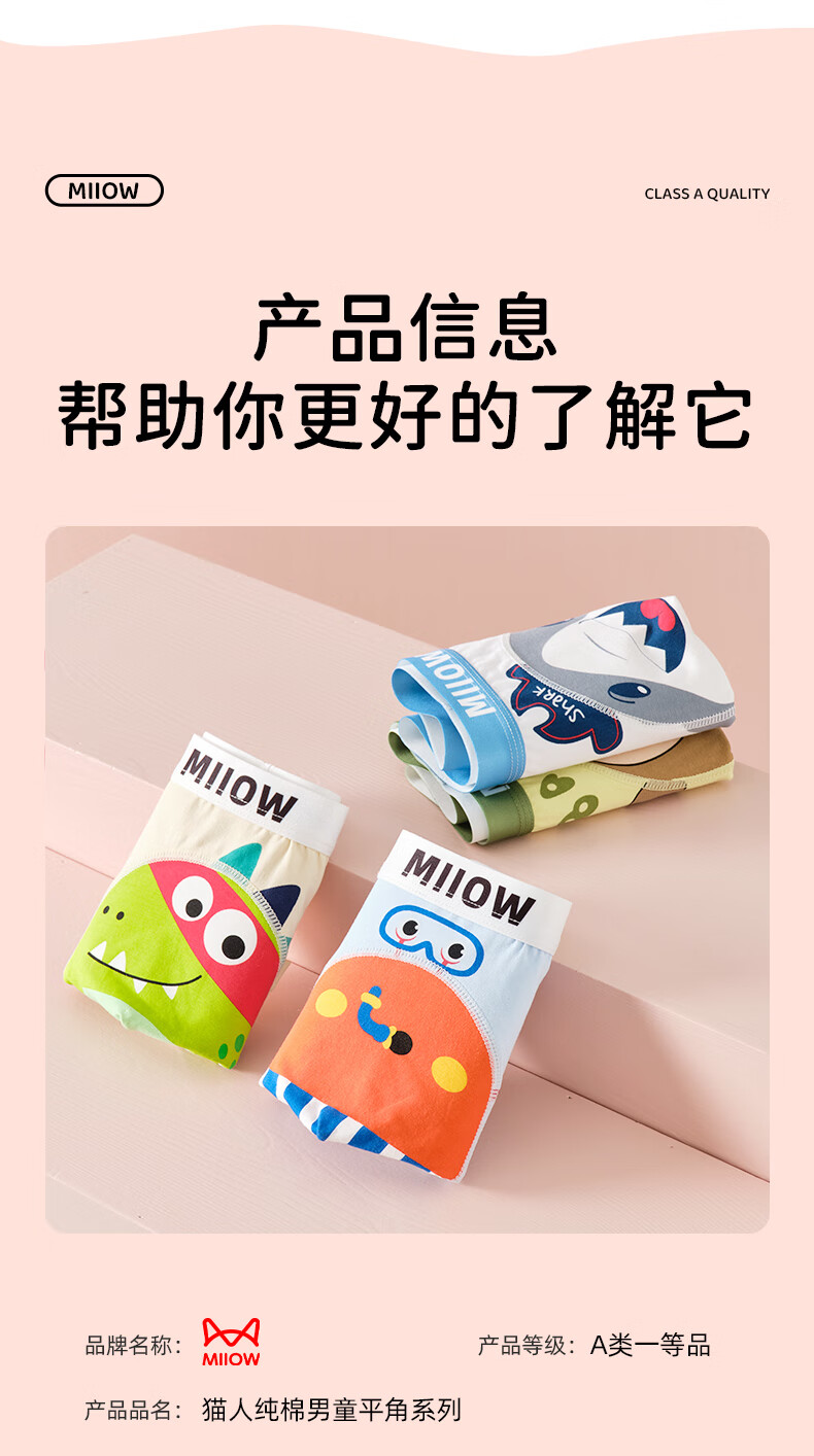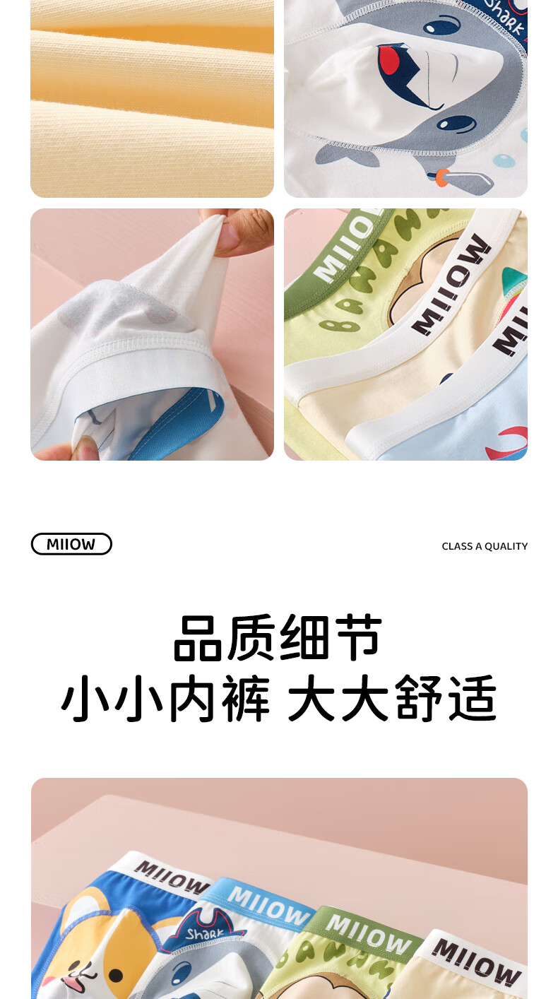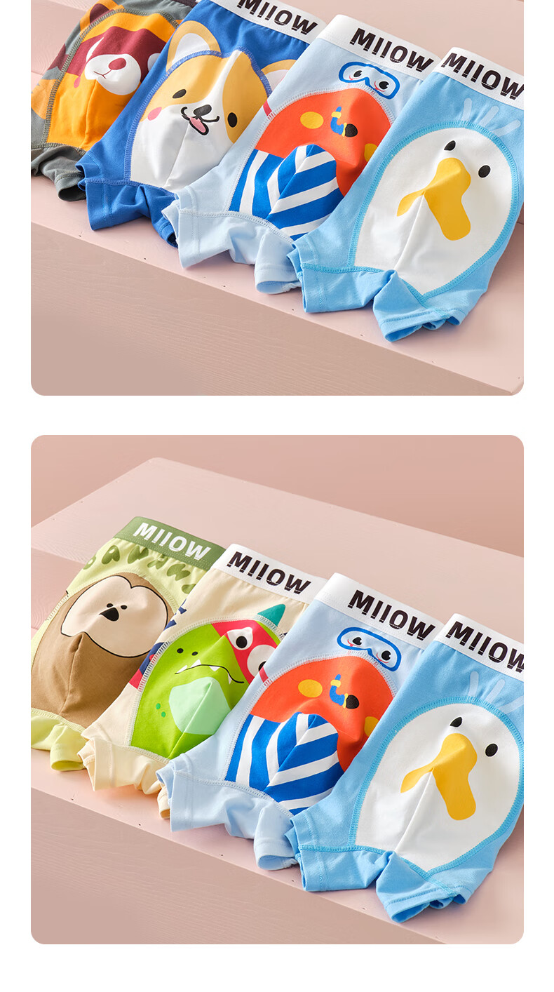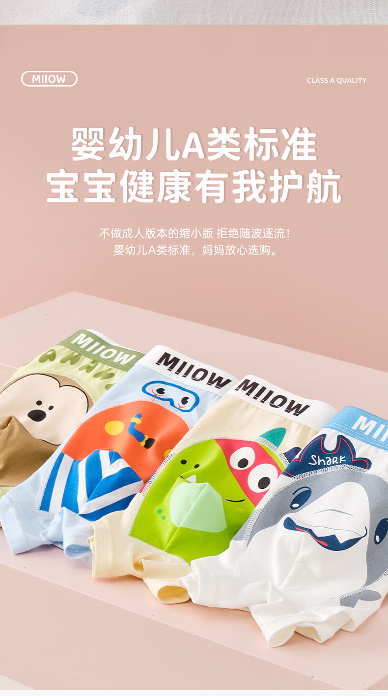 Catman 4-piece boys' underwear, children's pure cotton boxer briefs, boxer briefs for boys, development period, all-cotton shorts for baby boys, crab + raccoon + corgi + shark, type A pure cotton 5XL recommended height 155-170cm 80-110Jin Jin equals 0.5 kg