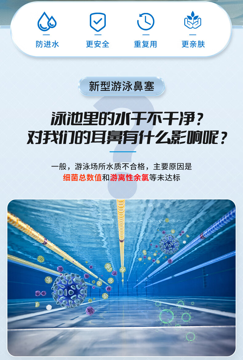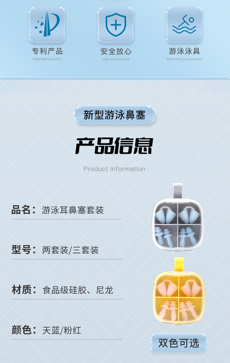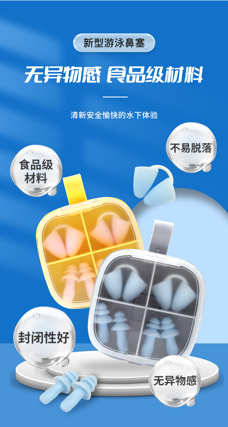LISM swimming nose clip waterproof earplugs silicone nose plug diving equipment unisex suit water park anti-choking special blue M code (diameter 7-14 mm) 2 sets