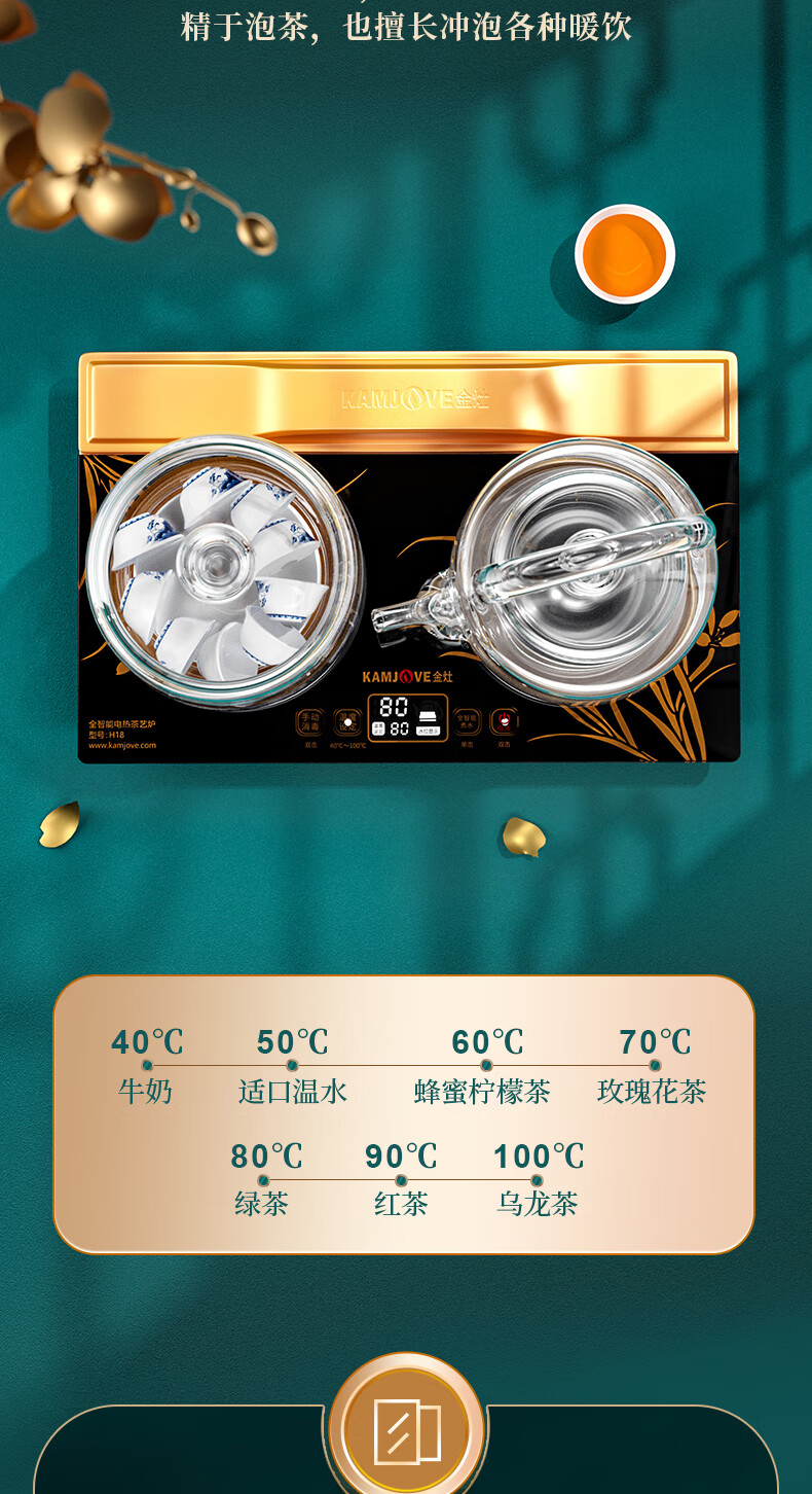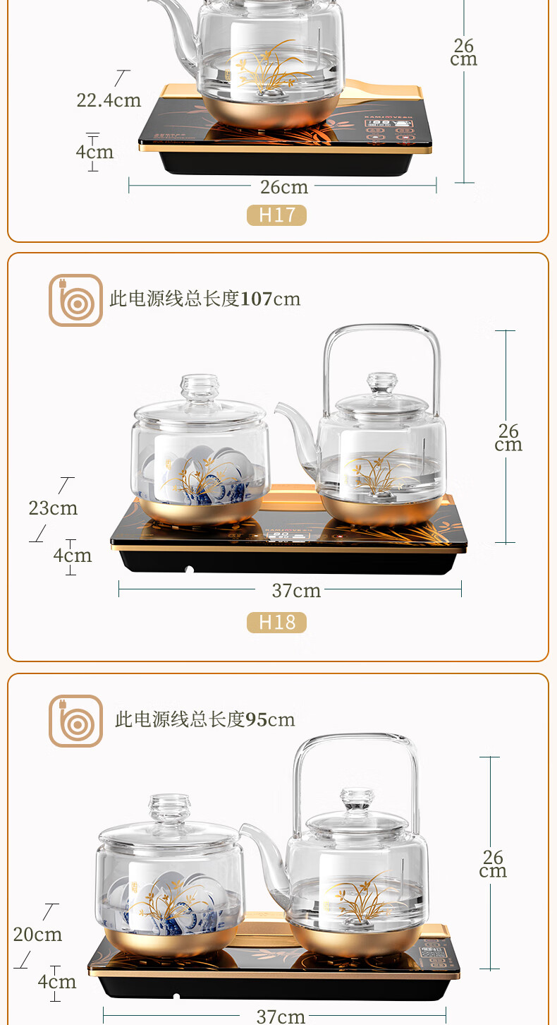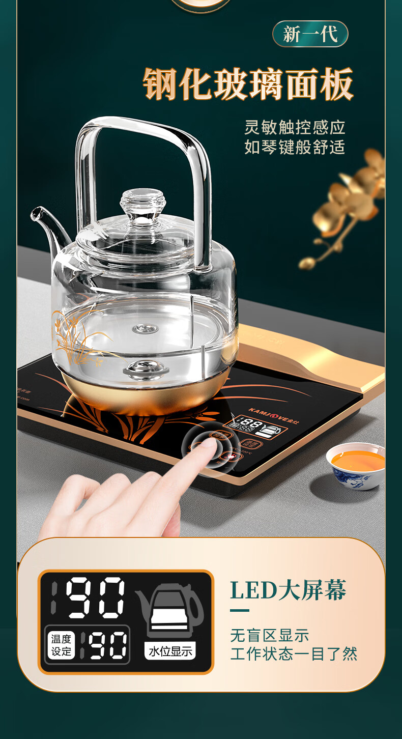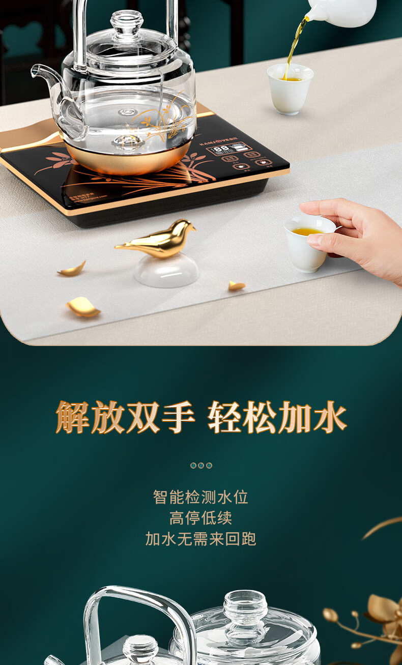 KAMJOVE spring-type fully automatic water-filling electric kettle, glass kettle, smart electric tea stove, thermal insulation, complete tea set H19 H17 upgraded lifting beam 0.8 liter