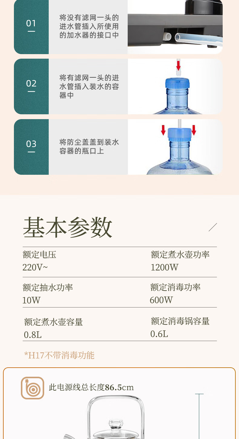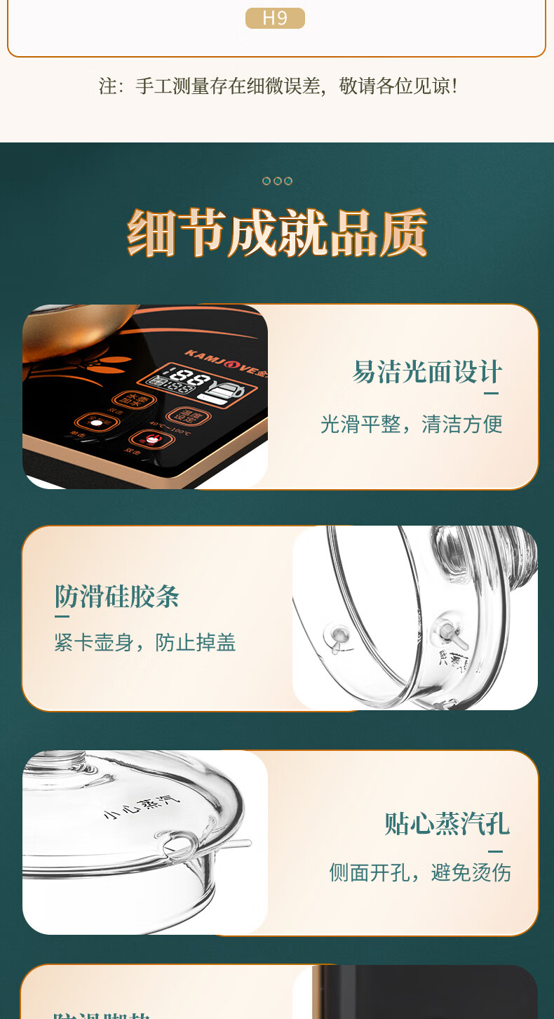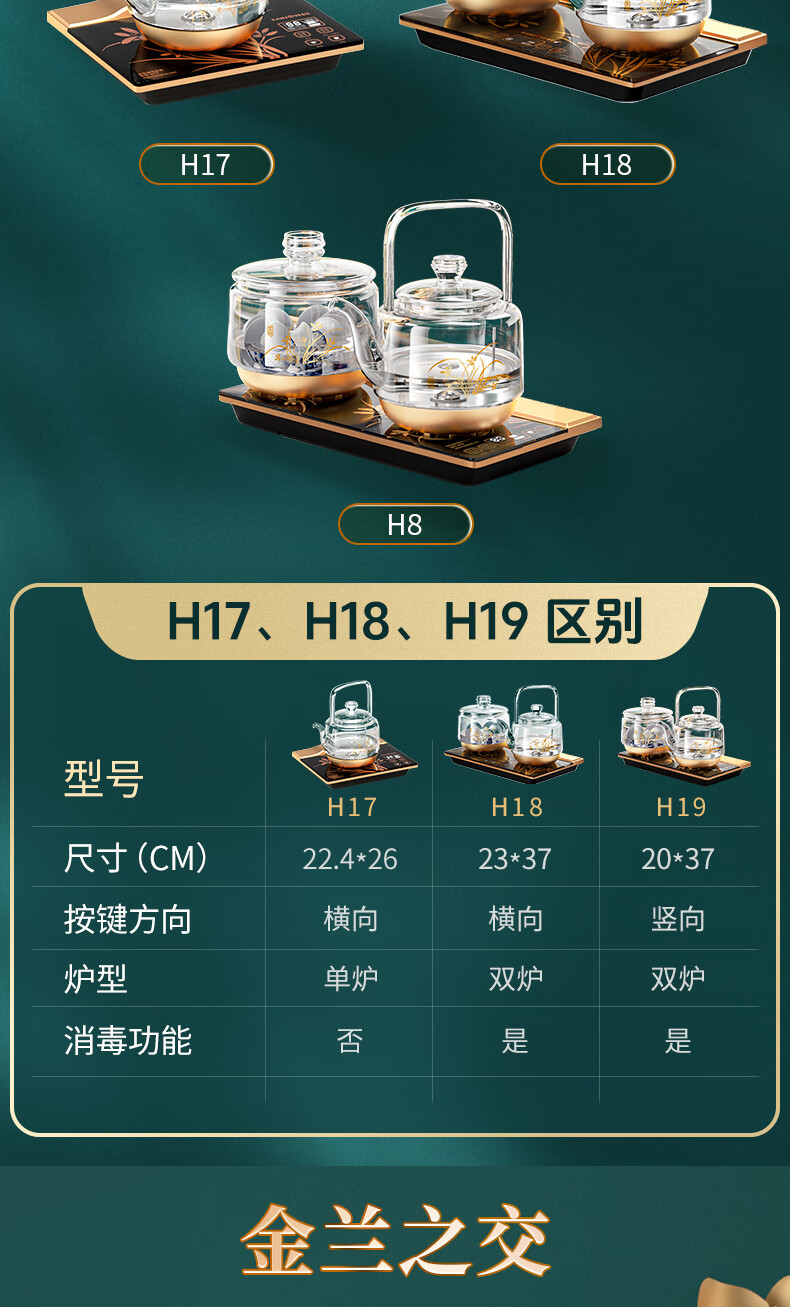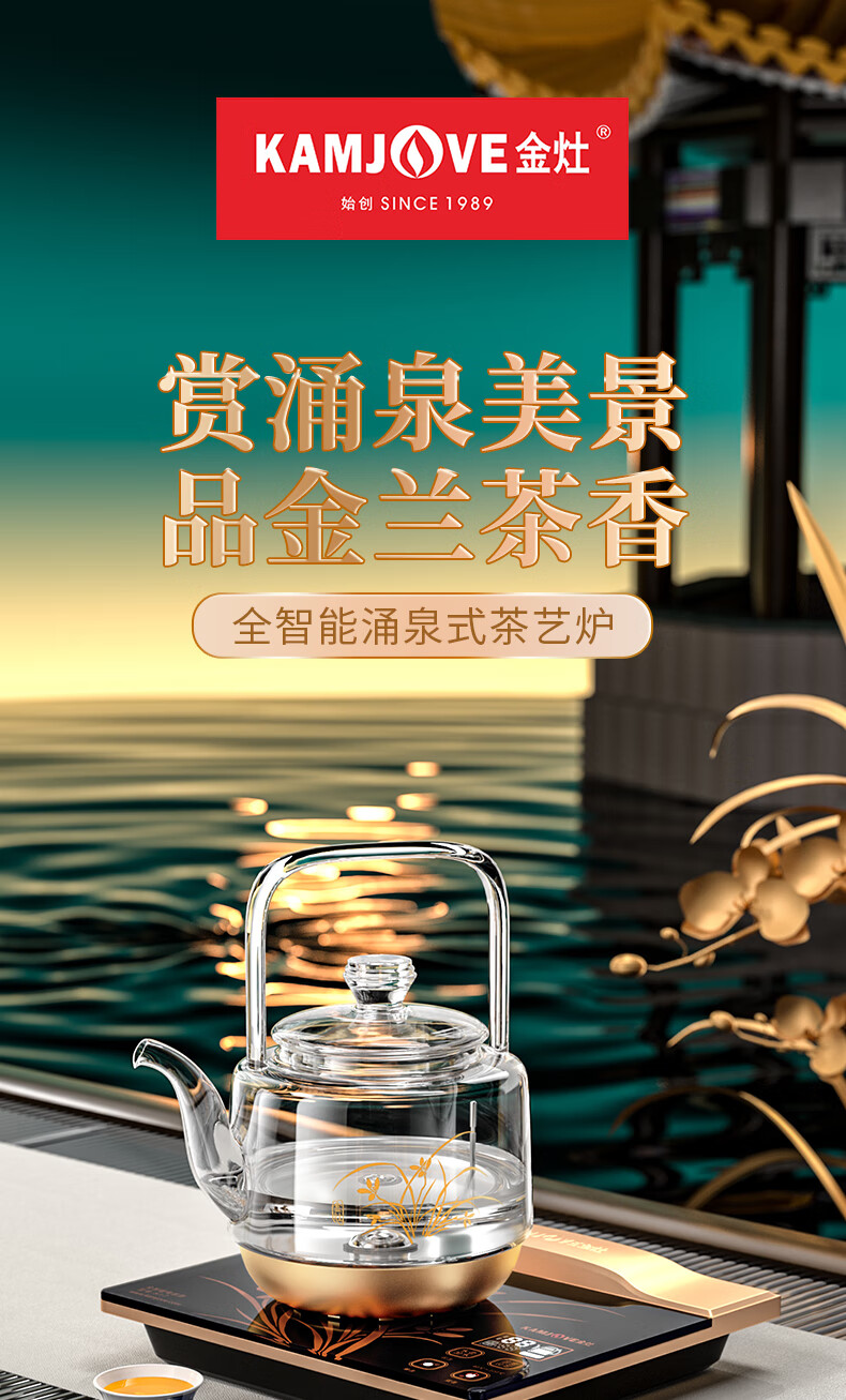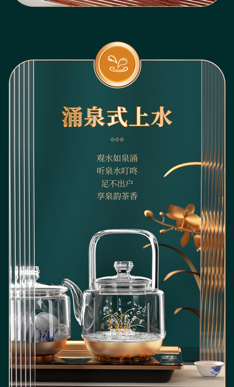 KAMJOVE spring-type fully automatic water-filling electric kettle, glass kettle, smart electric tea stove, thermal insulation, complete tea set H19 H17 upgraded lifting beam 0.8 liter