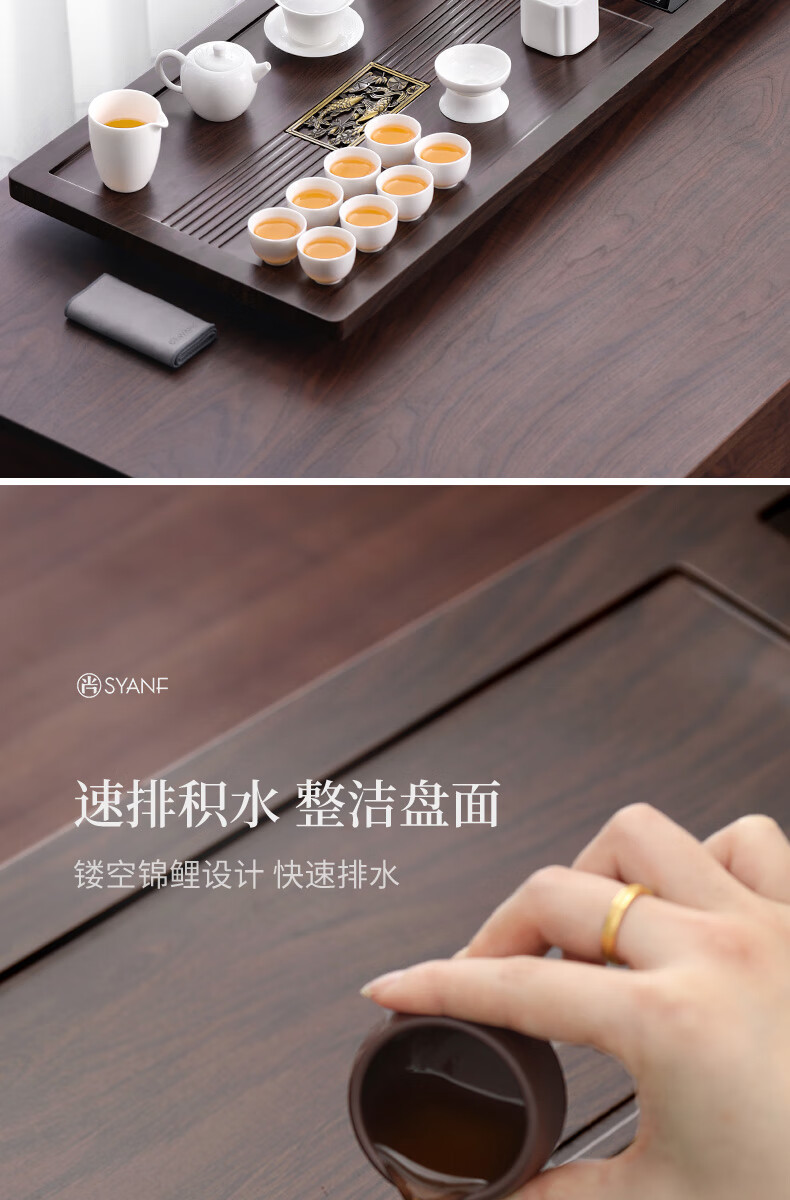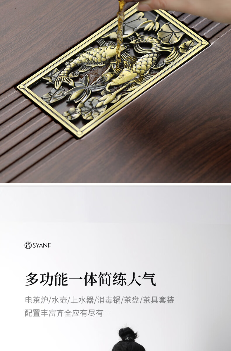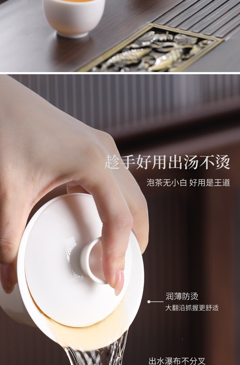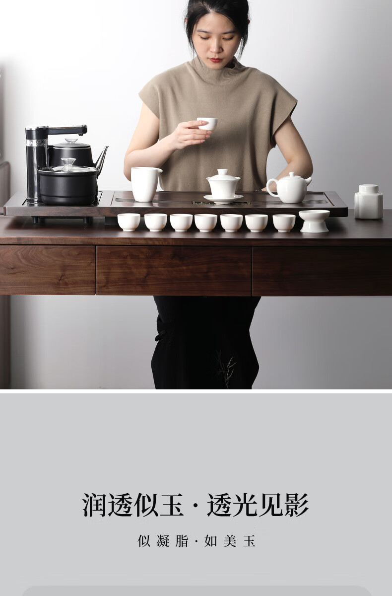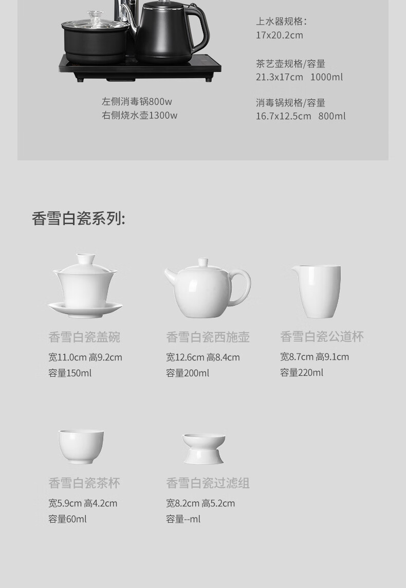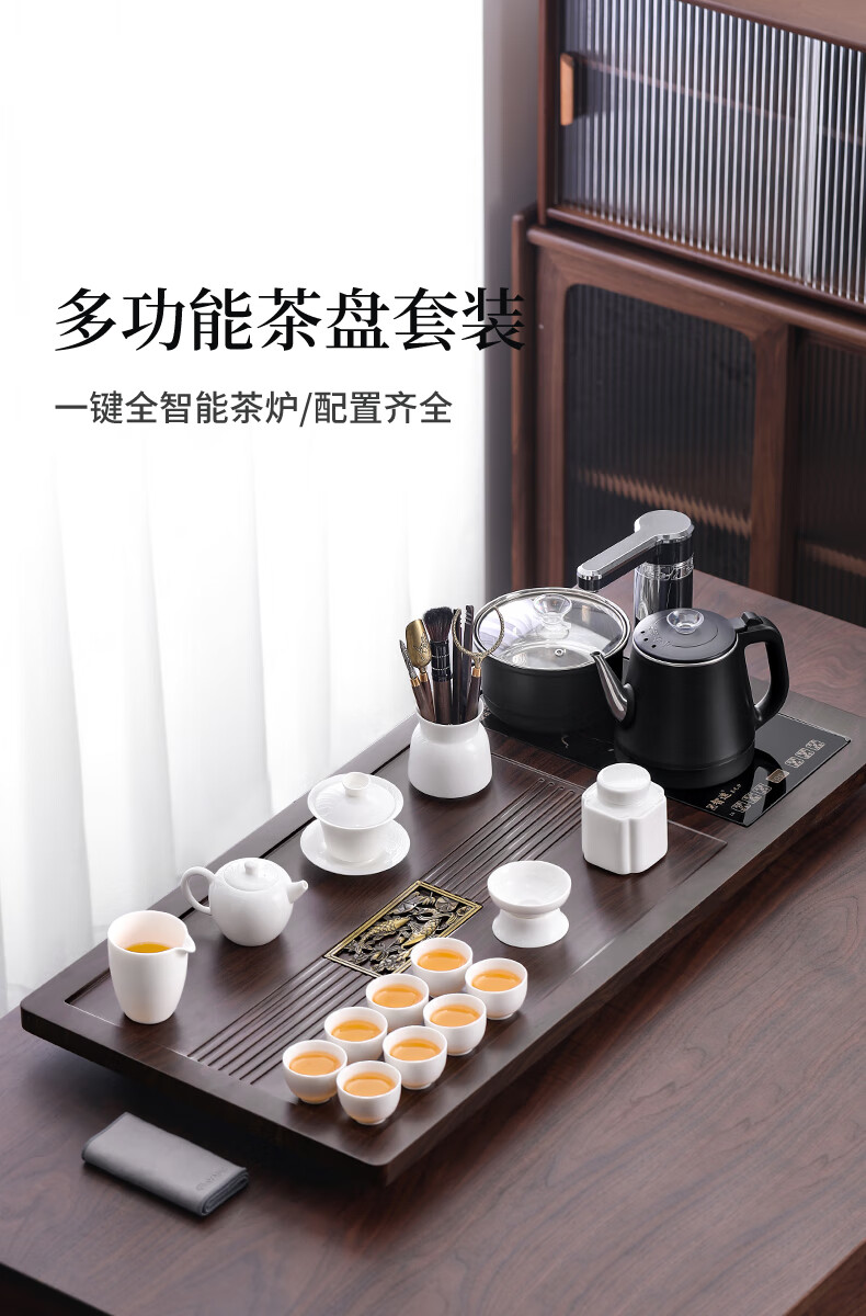 Not clumsy tea set set household complete tea set kettle integrated fully automatic tea tray integrated kung fu tea set 1-white porcelain fragrant snow ebony color koi tea tray set