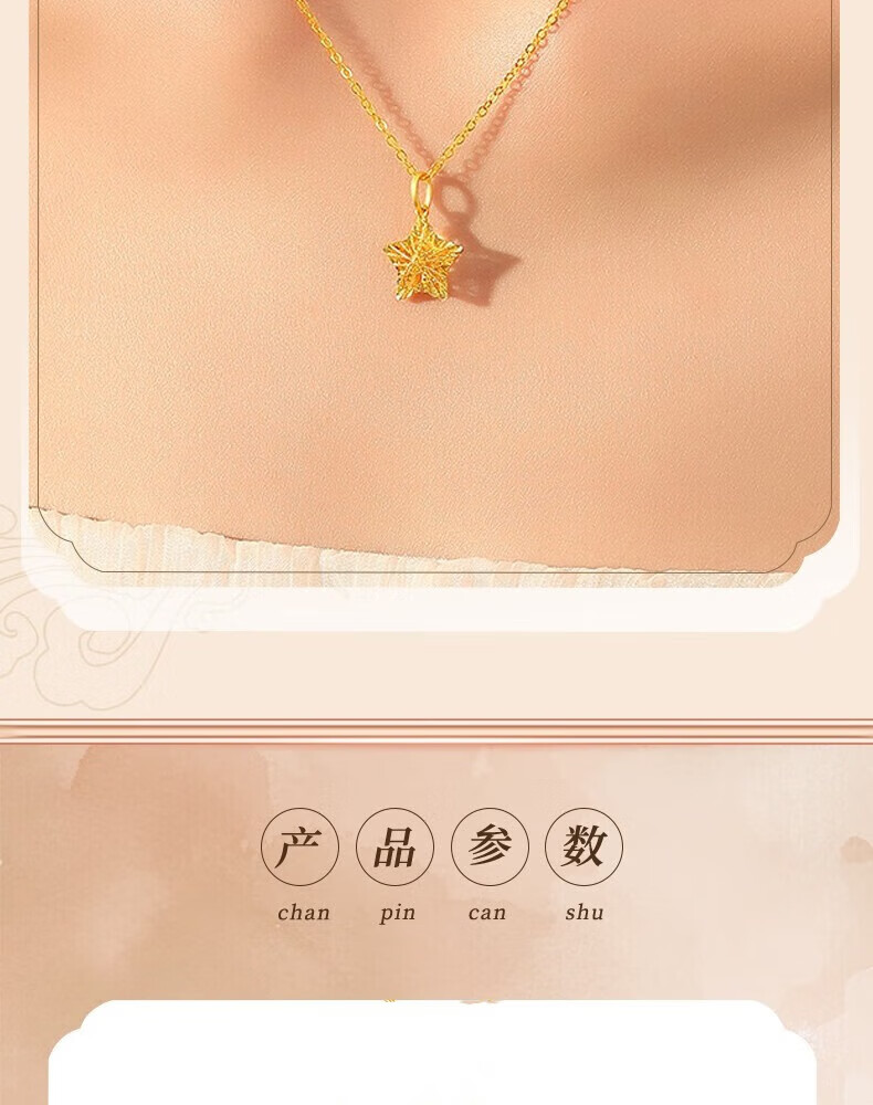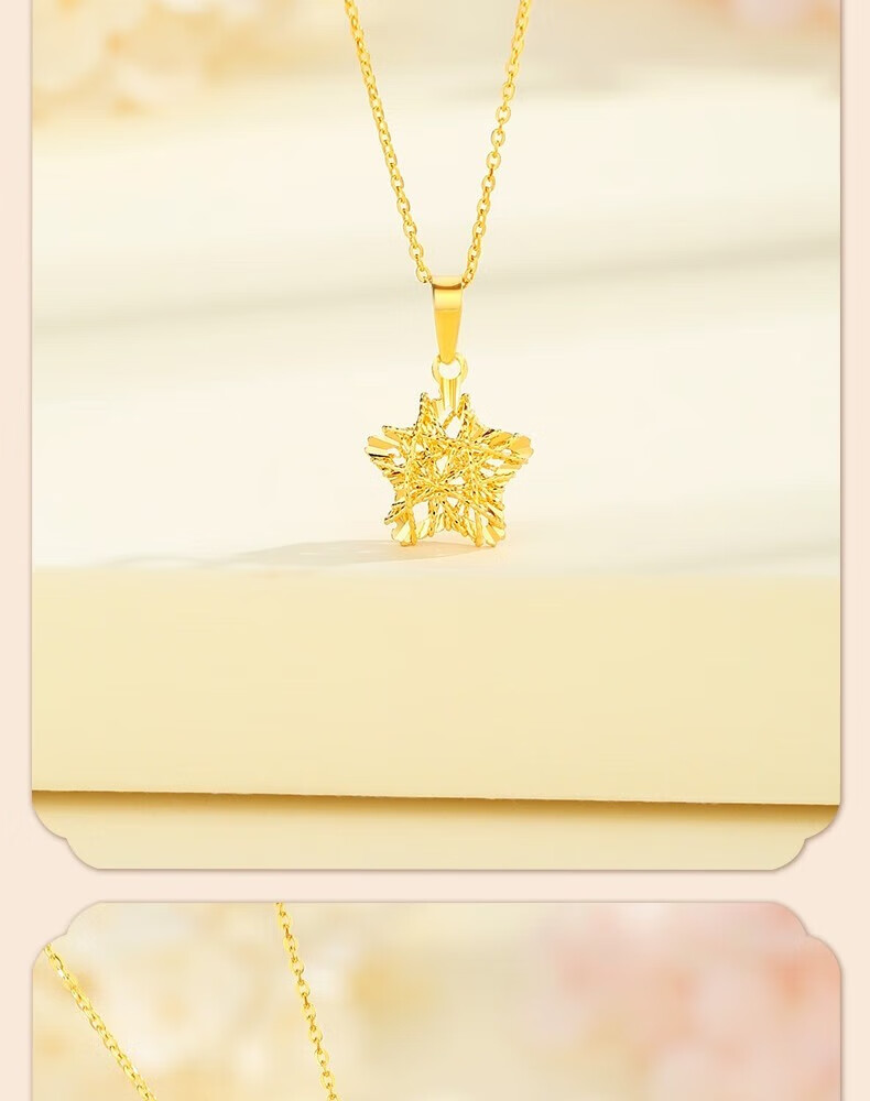 CHINA GOLD Gold Necklace Women's 999 Pure Gold Hollow Star Pendant Christmas Birthday Gift for Girlfriend and Wife Jingsuda Pendant About 0.7g*Round Buckle*With Silver Chain