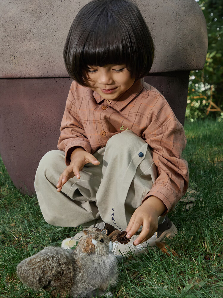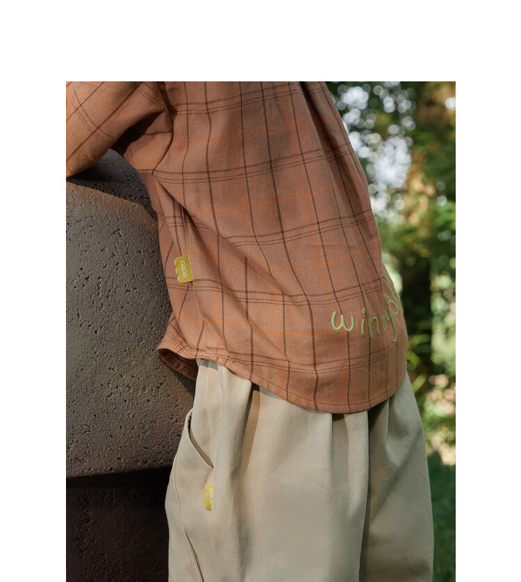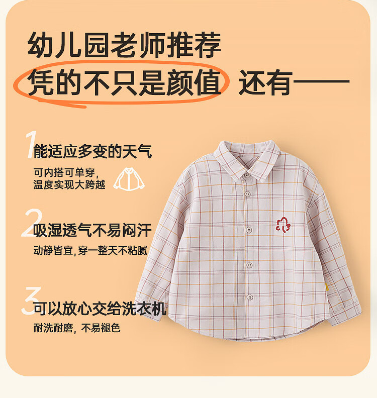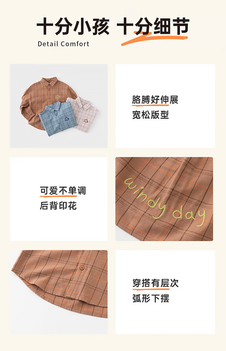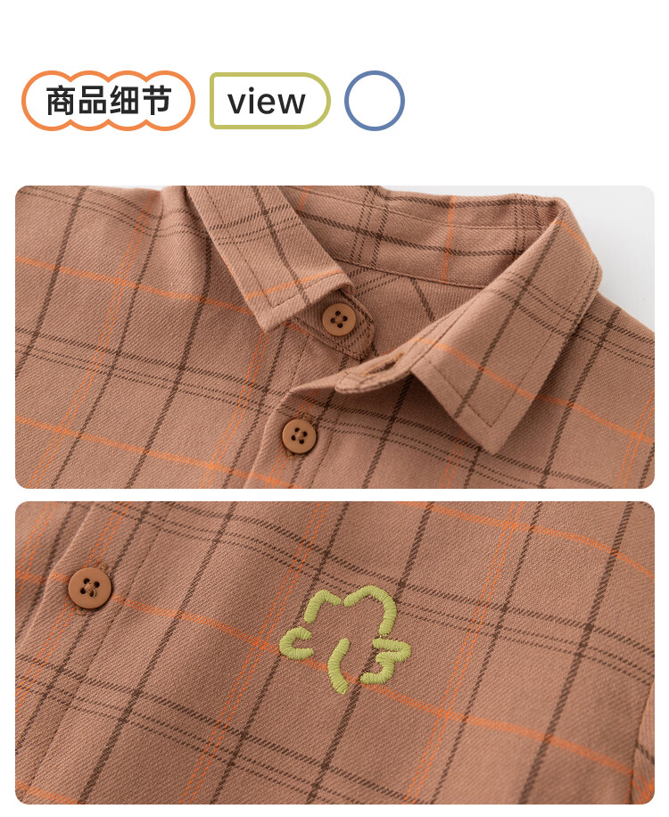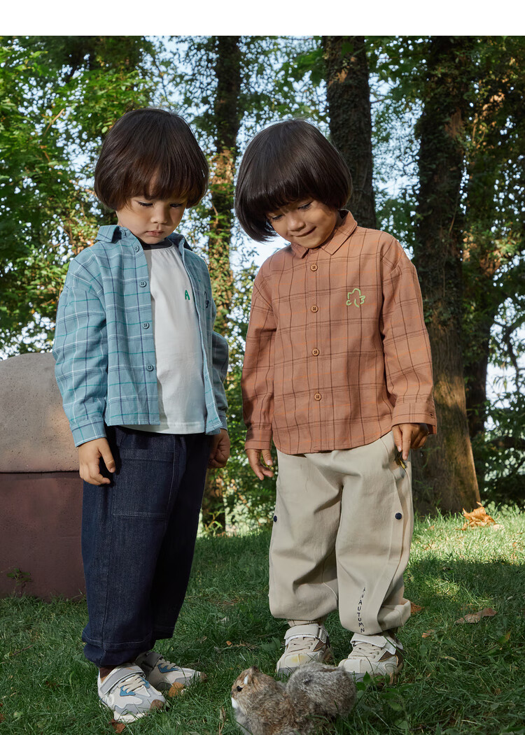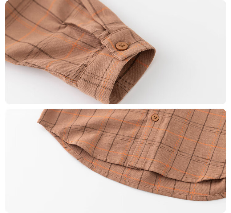 Papa climbing spring children's shirt boys and girls shirt brushed plaid shirt pure cotton long-sleeved top versatile for going out brown 100